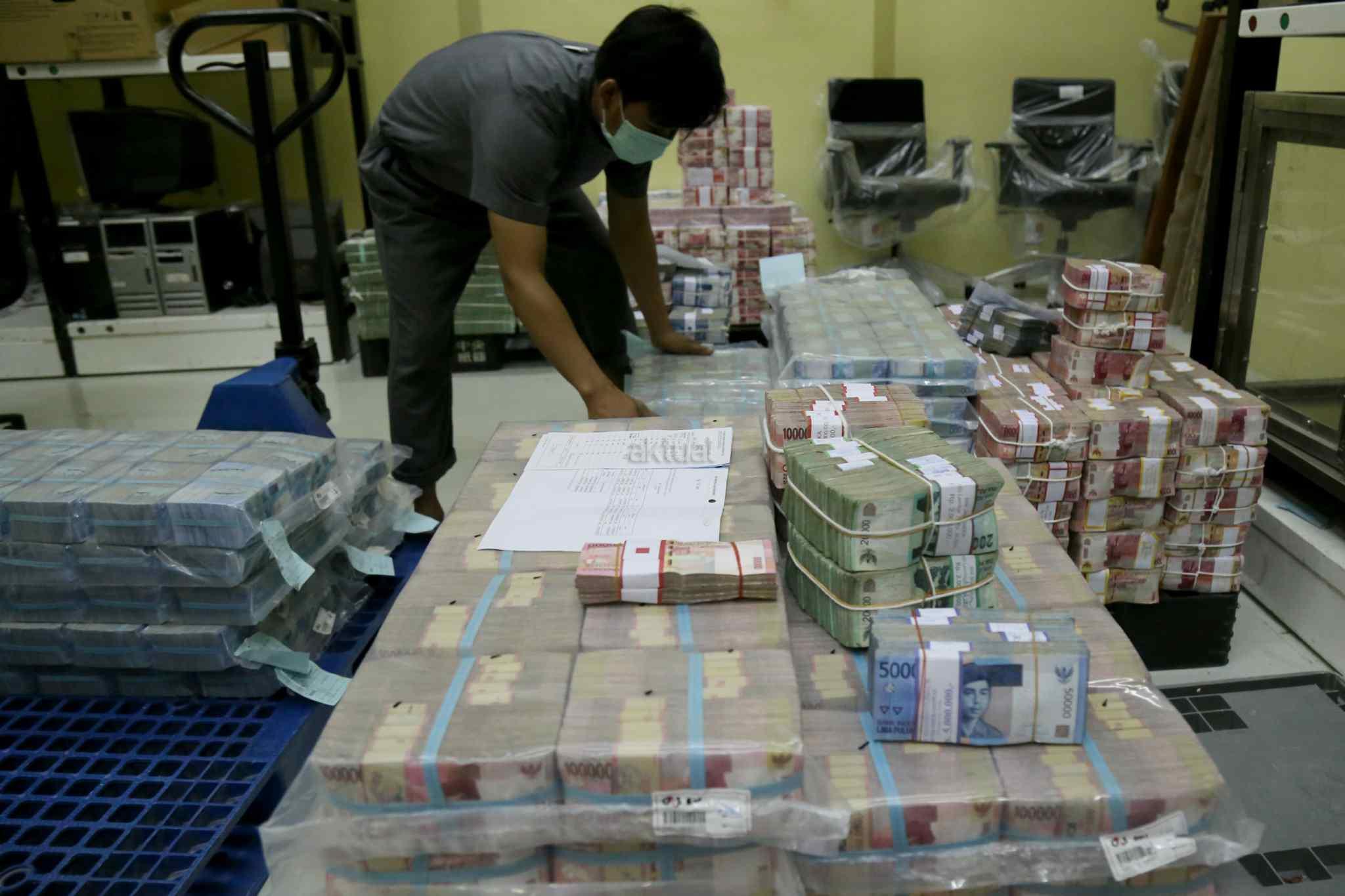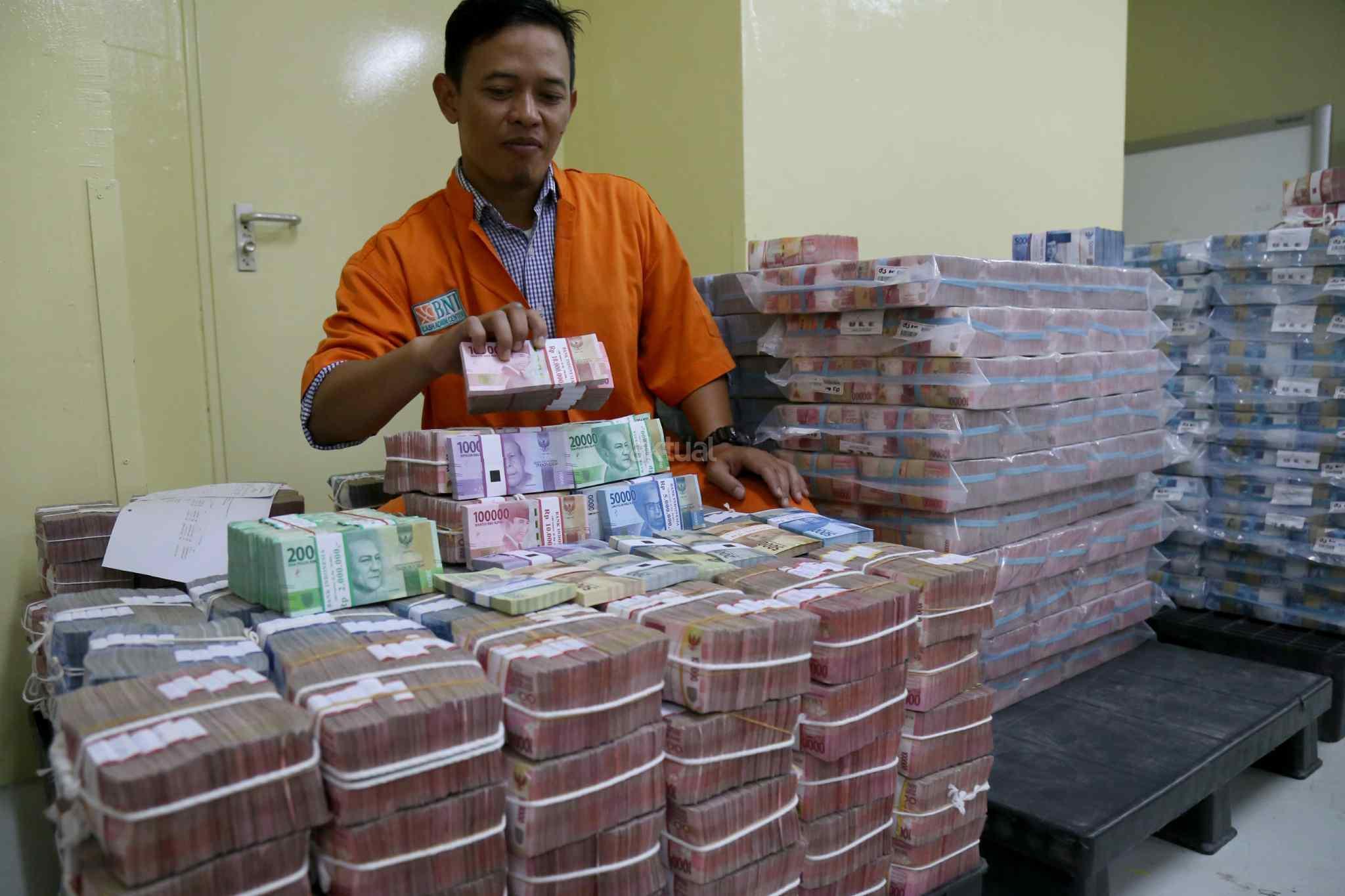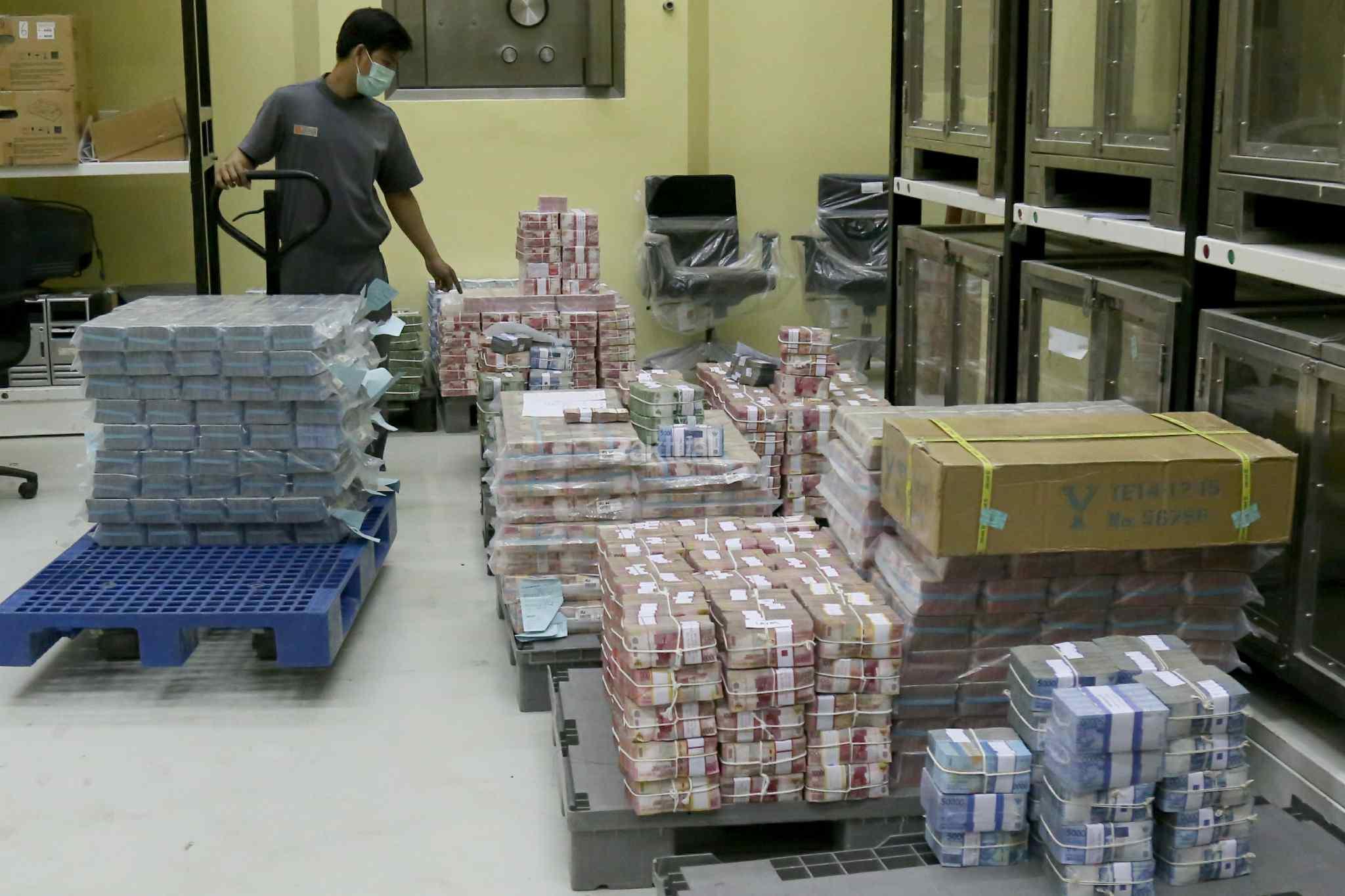 Petugas menata uang kertas di ruang penyimpanan uang "cash center" di kantor pusat, Bank Negara Indonesia, Jakarta, Kamis (29/12/2016). PT Bank Negara Indonesia (Persero) Tbk atau BNI telah menyiapkan uang tunai sebanyak Rp 11 triliun untuk kebutuhan Hari Natal dan Tahun Baru 2017. Dalam rangka memenuhi kebutuhan libur panjang tersebut, BNI juga telah mendistribusikan uang rupiah terbitan emisi 2016. AKTUAL/Tino Oktaviano