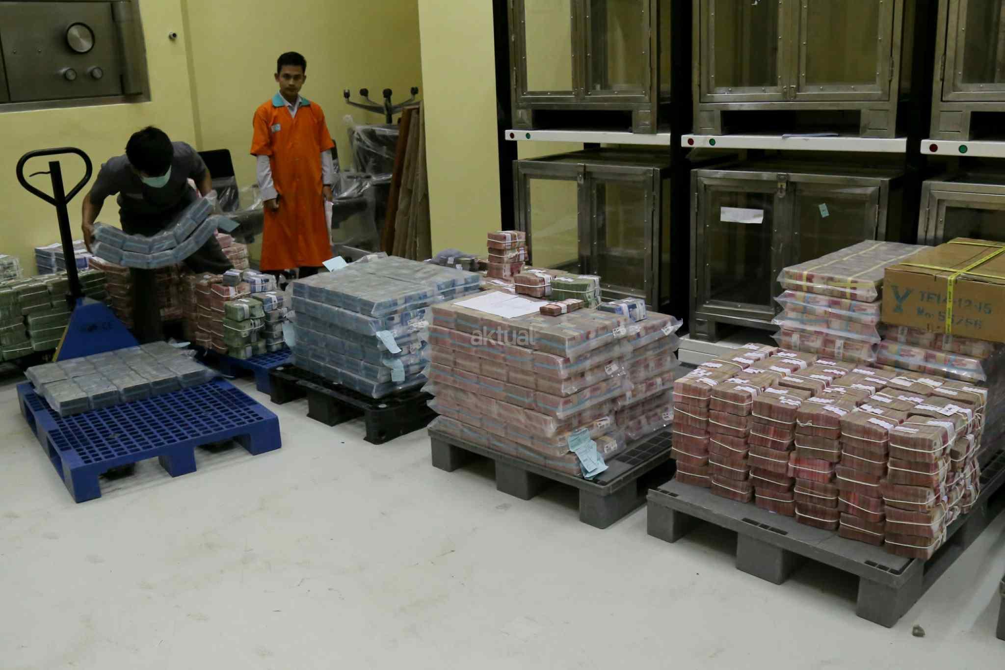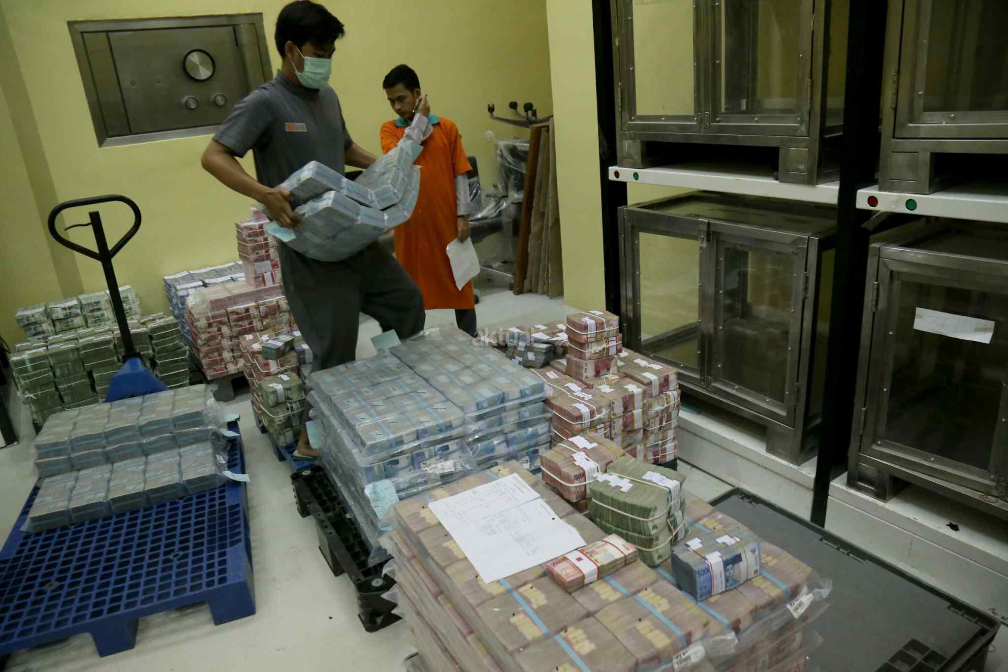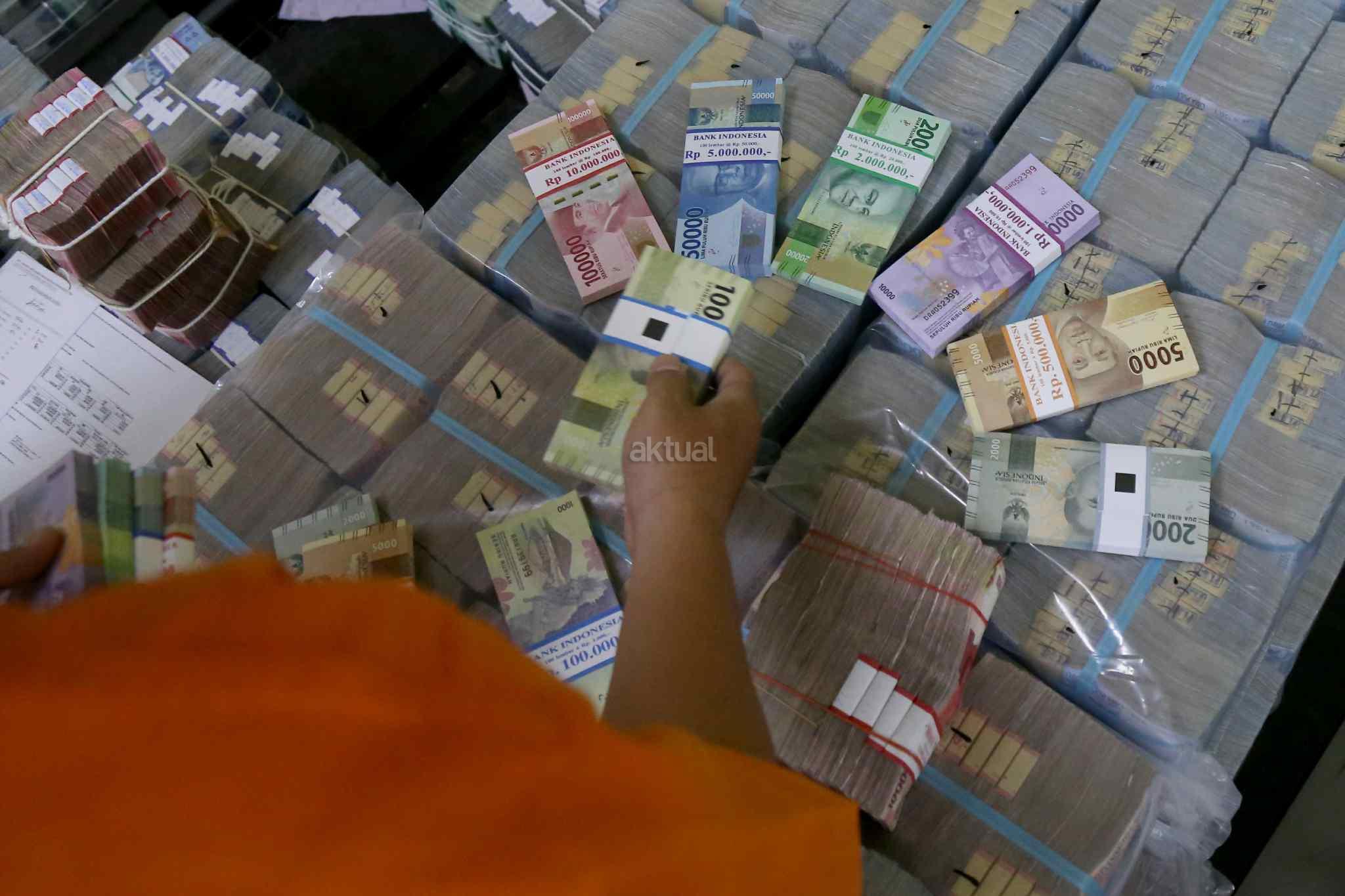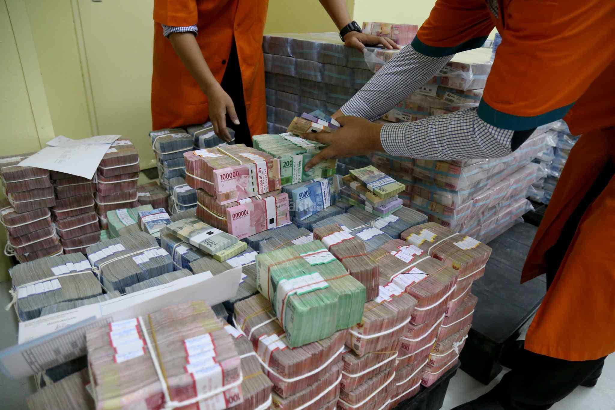 Petugas menata uang kertas di ruang penyimpanan uang "cash center" di kantor pusat, Bank Negara Indonesia, Jakarta, Kamis (29/12/2016). PT Bank Negara Indonesia (Persero) Tbk atau BNI telah menyiapkan uang tunai sebanyak Rp 11 triliun untuk kebutuhan Hari Natal dan Tahun Baru 2017. Dalam rangka memenuhi kebutuhan libur panjang tersebut, BNI juga telah mendistribusikan uang rupiah terbitan emisi 2016. AKTUAL/Tino Oktaviano