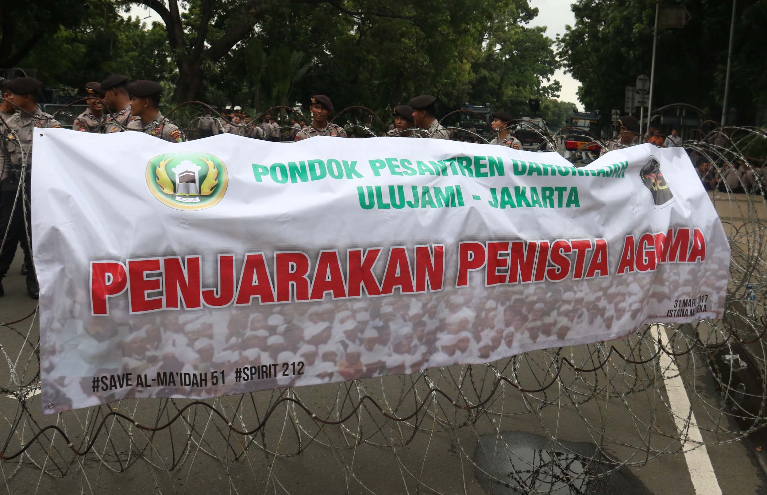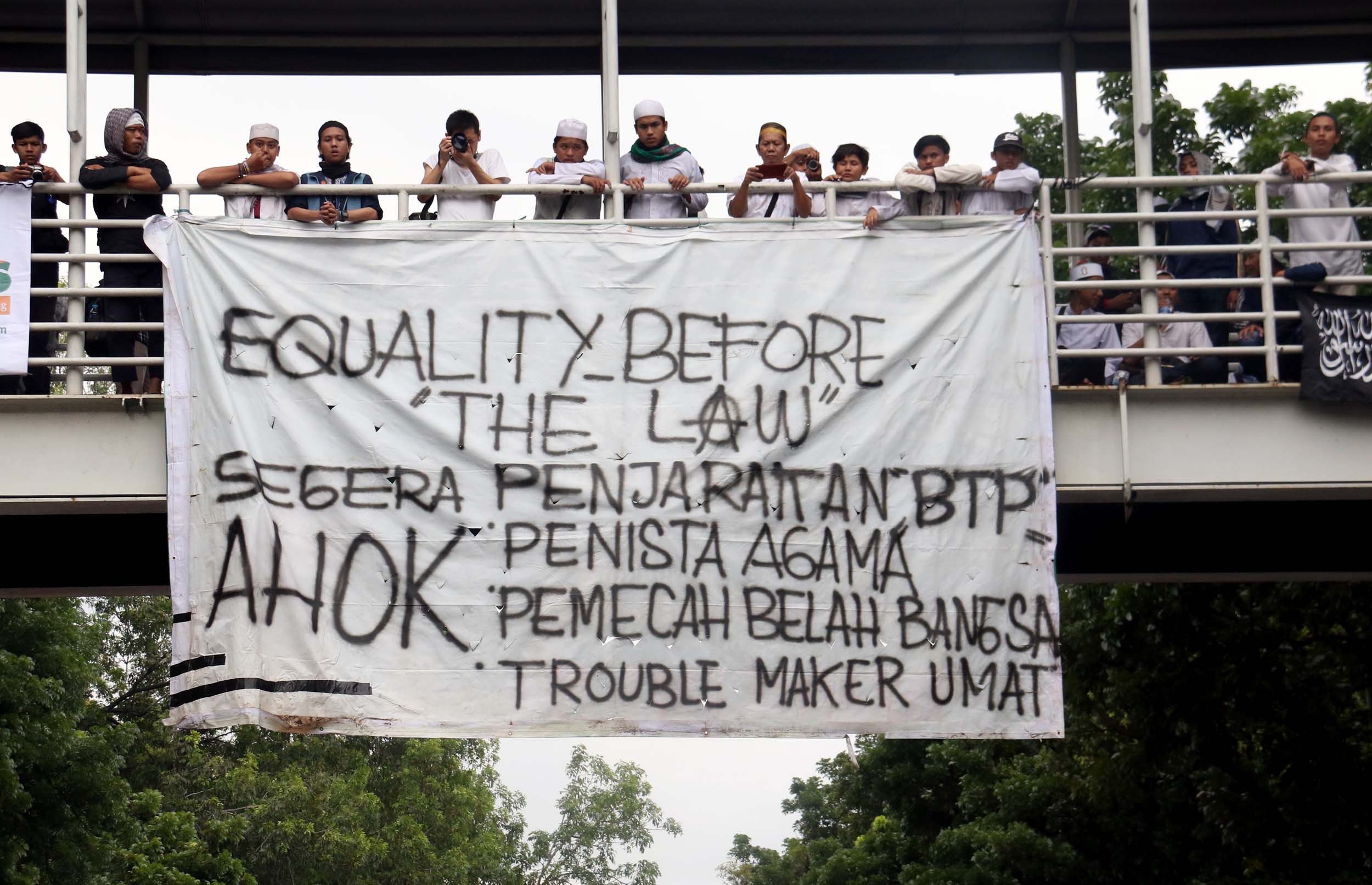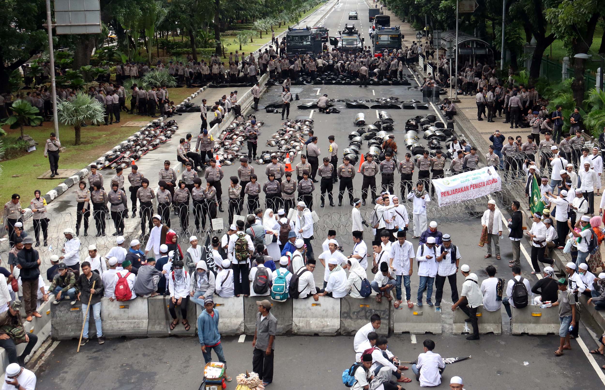 Mereka mendesak pemerintah mencopot Basuki T. Purnama dari jabatan gubernur DKI Jakarta karena sudah menjadi terdakwa kasus penistaan agama. AKTUAL/Munzir