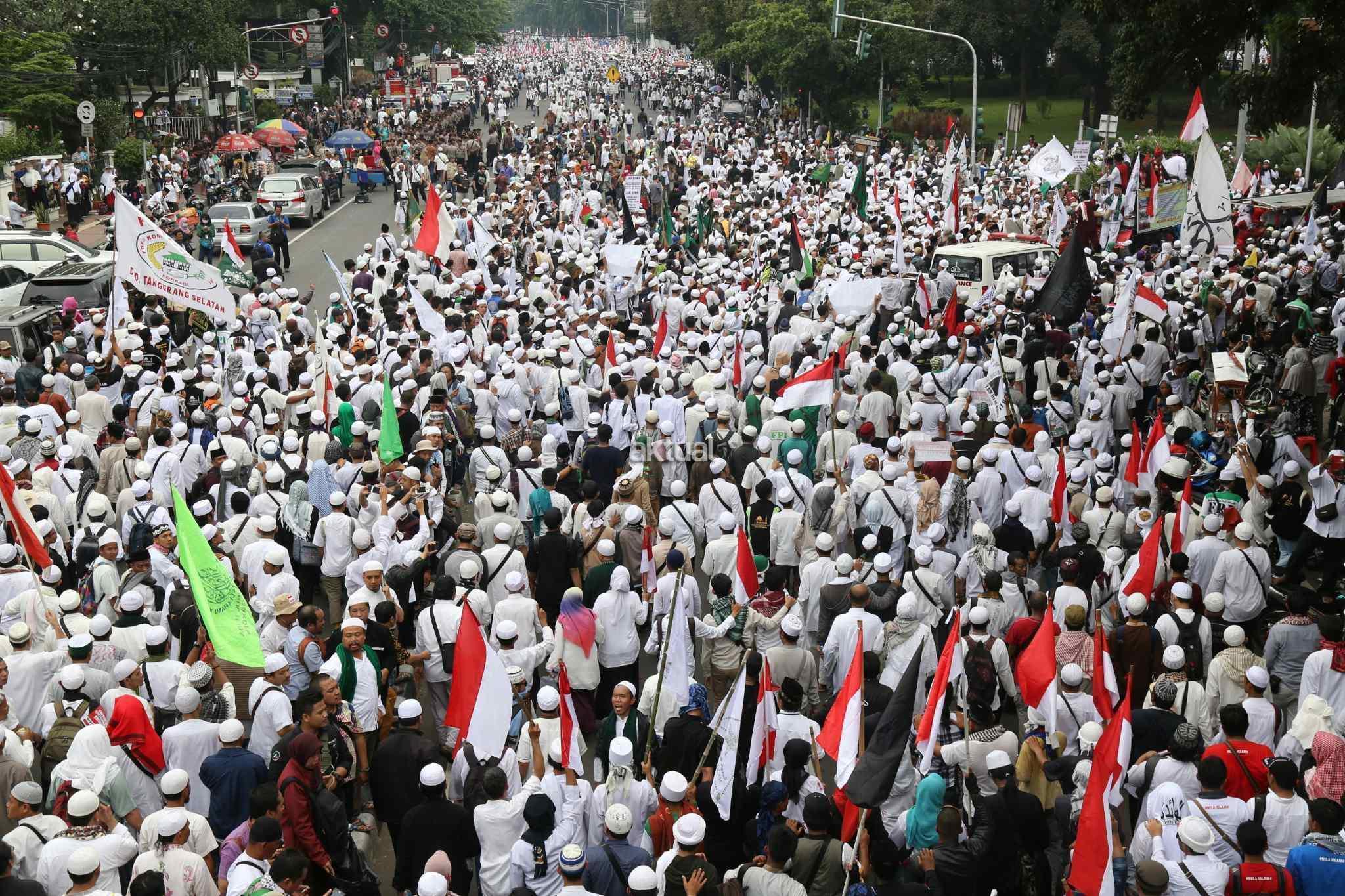 Ratusan ribu umat muslim Indonesia long march menuju depan Istana Merdeka, Jakarta , Jumat (4/11/2016). Dalam aksi damai ratusan ribu umat muslim Indonesia mendesak Jokowi untuk segera menyelesaikan proses hukum dari Gubernur DKI Jakarta Basuki Tjahaja PurnamaRatusan ribu umat muslim Indonesia long march menuju depan Istana Merdeka, Jakarta , Jumat (4/11/2016). Dalam aksi damai ratusan ribu umat muslim Indonesia mendesak Jokowi untuk segera menyelesaikan proses hukum dari Gubernur DKI Jakarta Basuki Tjahaja Purnama (Ahok). AKTUAL/Munzir (Ahok). AKTUAL/Munzir