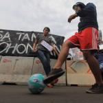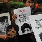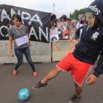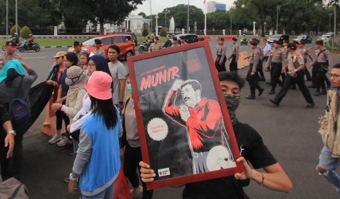 Aliansi Muda Untuk Munir melakukan aksi teaterikal bermain bola di depan Istana Merdeka, Jakarta, Rabu (2/11/16). Mereka mendesak pemerintah untuk segera umumkan laporan Tim Pencari Fakta (TPF) kepada masyarakat. AKTUAL/Tino Oktaviano