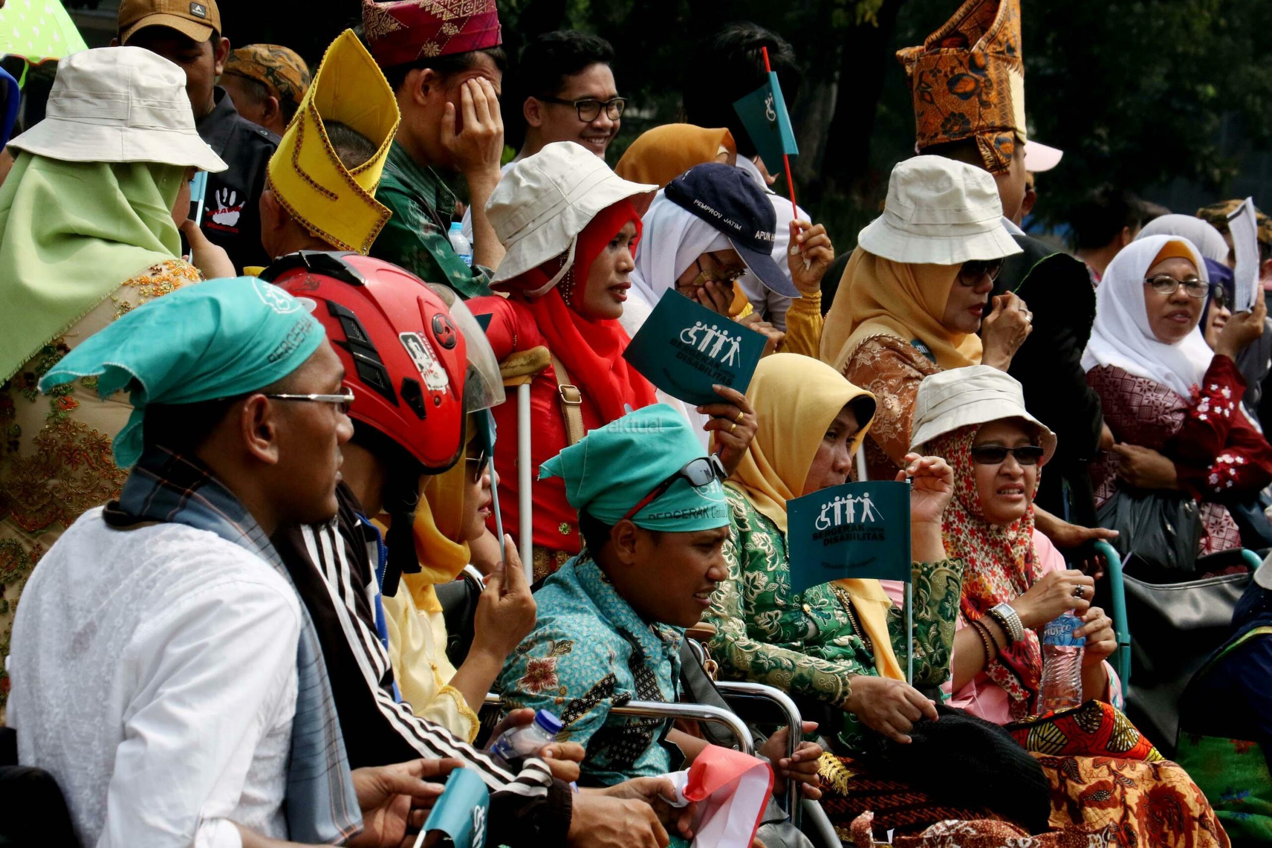 Aksi para penyadang disabiltas dengan berpakaian adat dari berbagai daerah Nusantara menuntut kepada pemerintah Jokowi – JK untuk segera membentuk Komisi Nasional Disabilitas agar tidak ada lagi diskriminasi. AKTUAL/Munzir