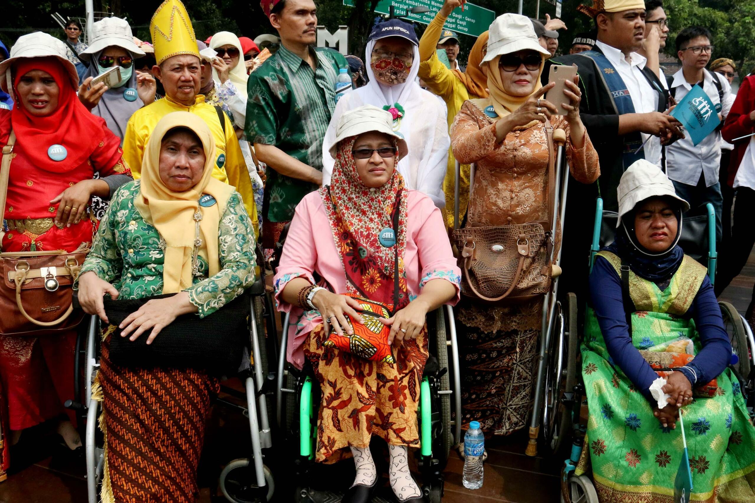 Aksi para penyadang disabiltas dengan berpakaian adat dari berbagai daerah Nusantara menuntut kepada pemerintah Jokowi - JK untuk segera membentuk Komisi Nasional Disabilitas agar tidak ada lagi diskriminasi. AKTUAL/Munzir