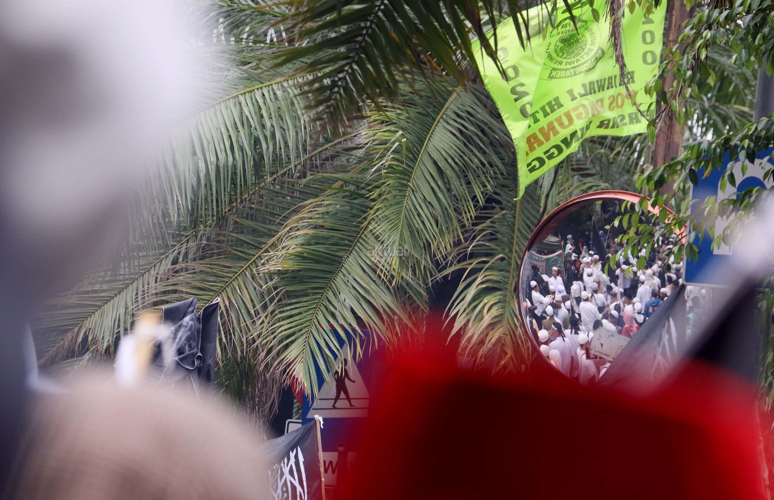 Ribuan umat Islam dari berbagai daerah melakukan aksi kawal sidang Gubernur Penista Agama Basuki Tjahaja Purnama (Ahok) di depan kantor Kementan, Jakarta, Selasa (9/5/2017). Hakim Pengadilan Negeri Jakarta Utara memutuskan menjatuhi hukuman Ahok selama dua tahun penjara karena terbukti melanggar Pasal 156 KUHP tentang penodaan agama. AKTUAL/Munzir