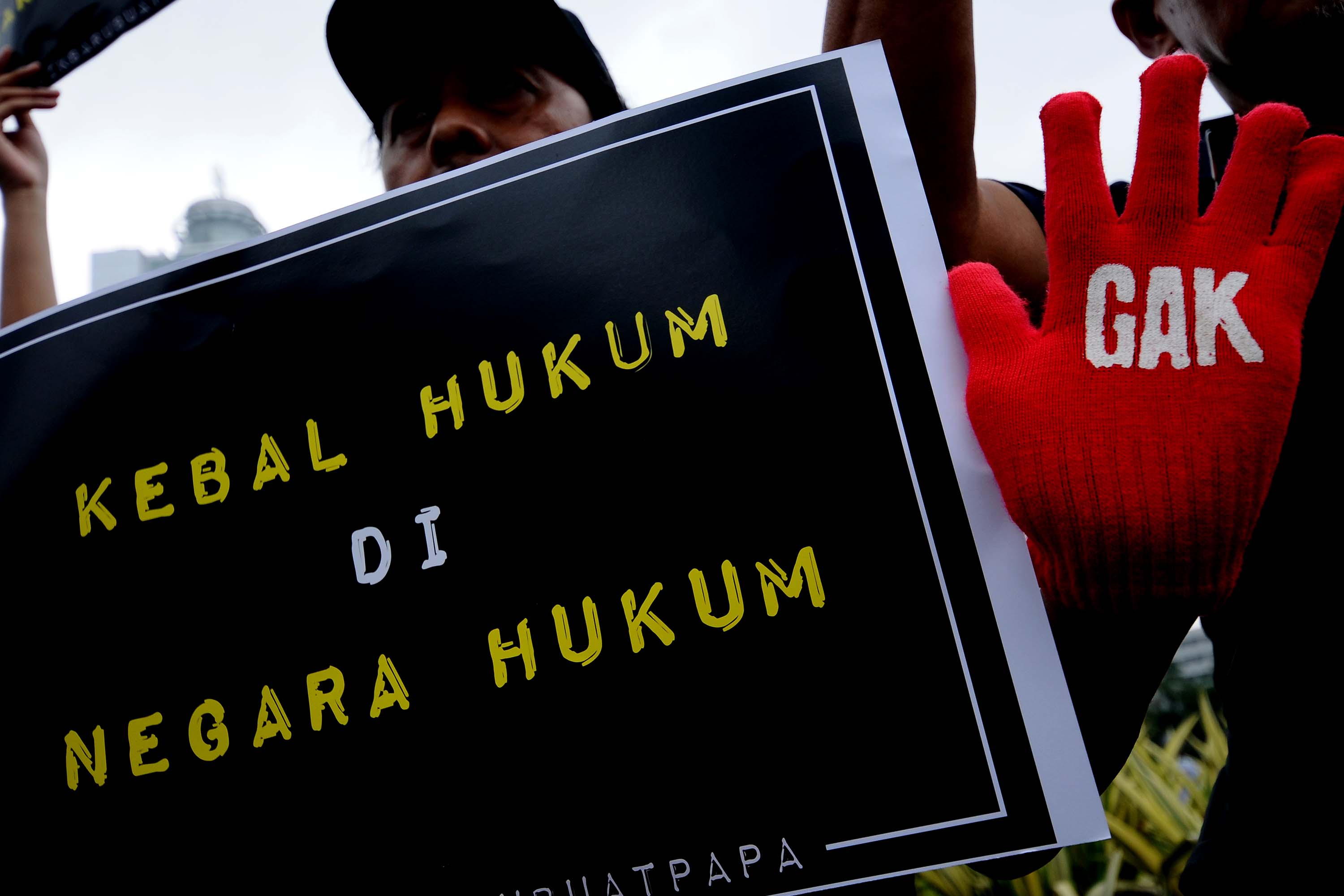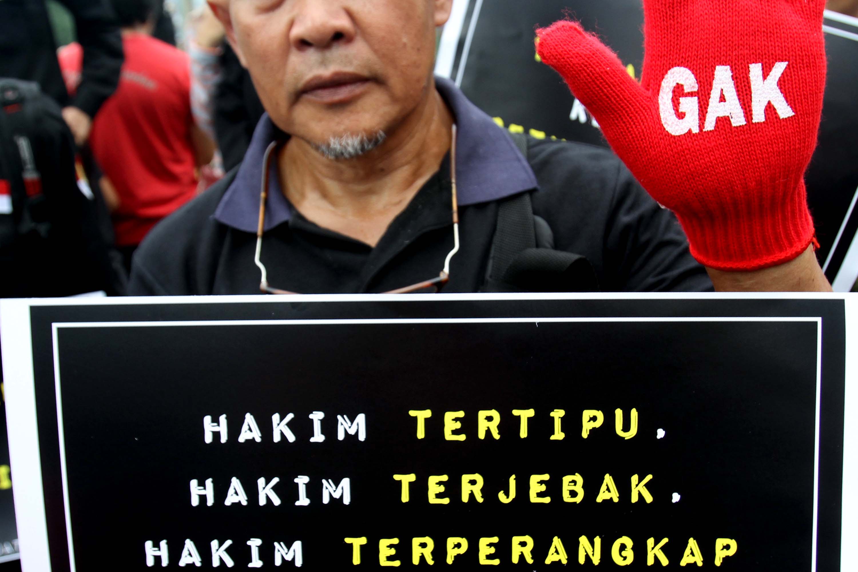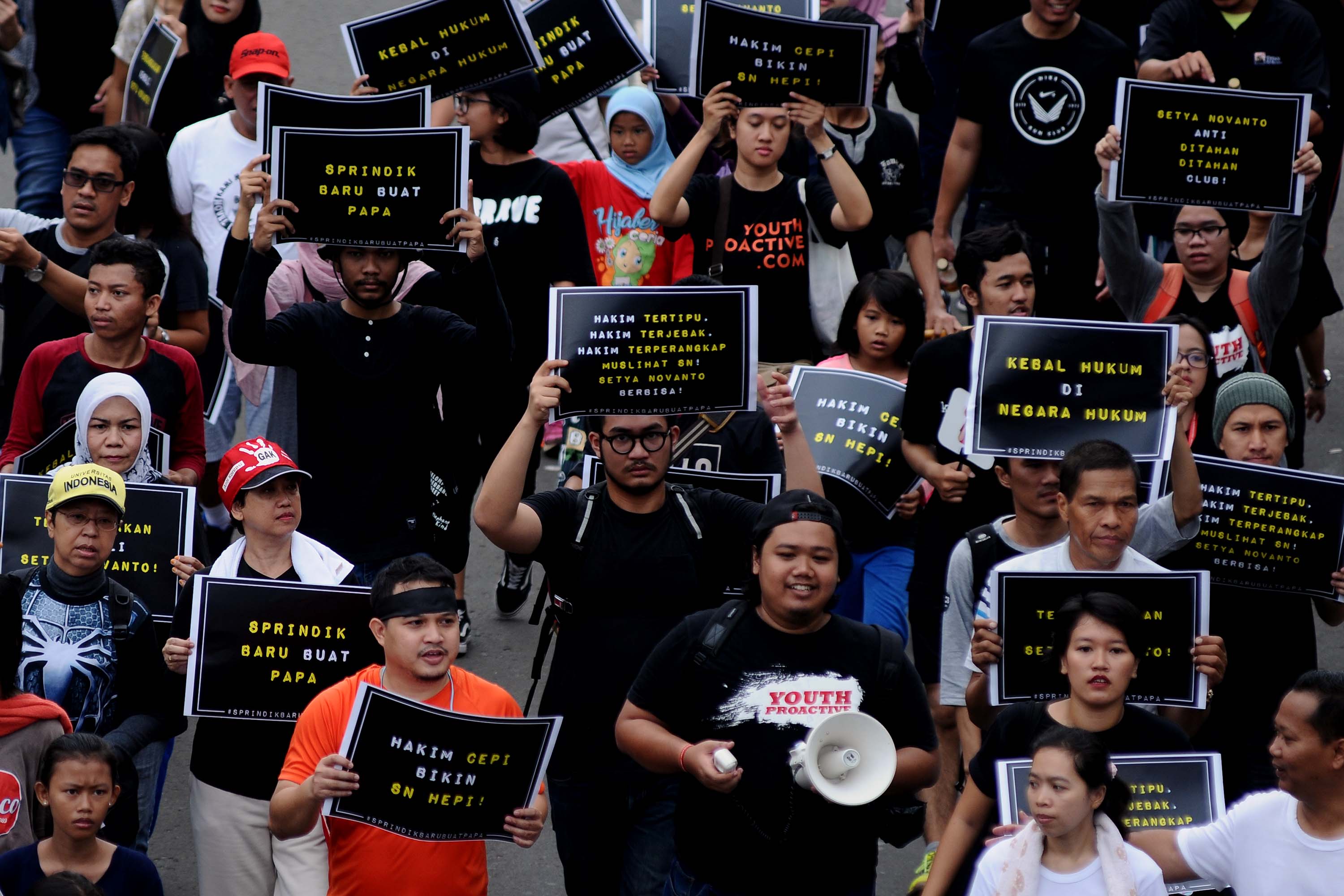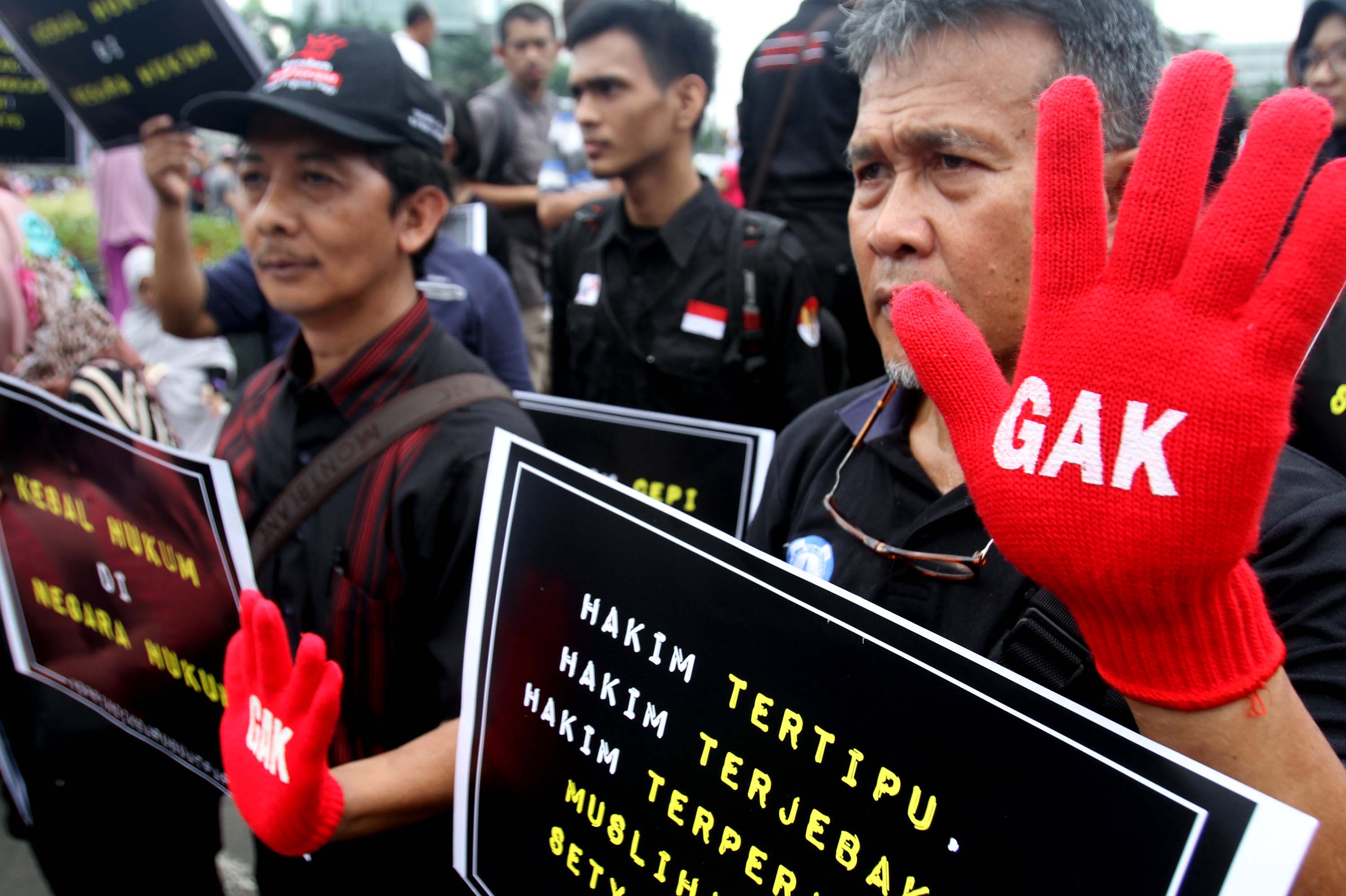 Koalisi Masyarakat Sipil, saat menggelar aksi didepan Bundaran Hotel Indonesia, Jakarta, Minggu (1/10/2017). Mereka mengekspresikan kekecewaan atas menangnya gugatan praperadilan Ketua Umum Partai Golkar Setya Novanto. AKTUAL/Munzir