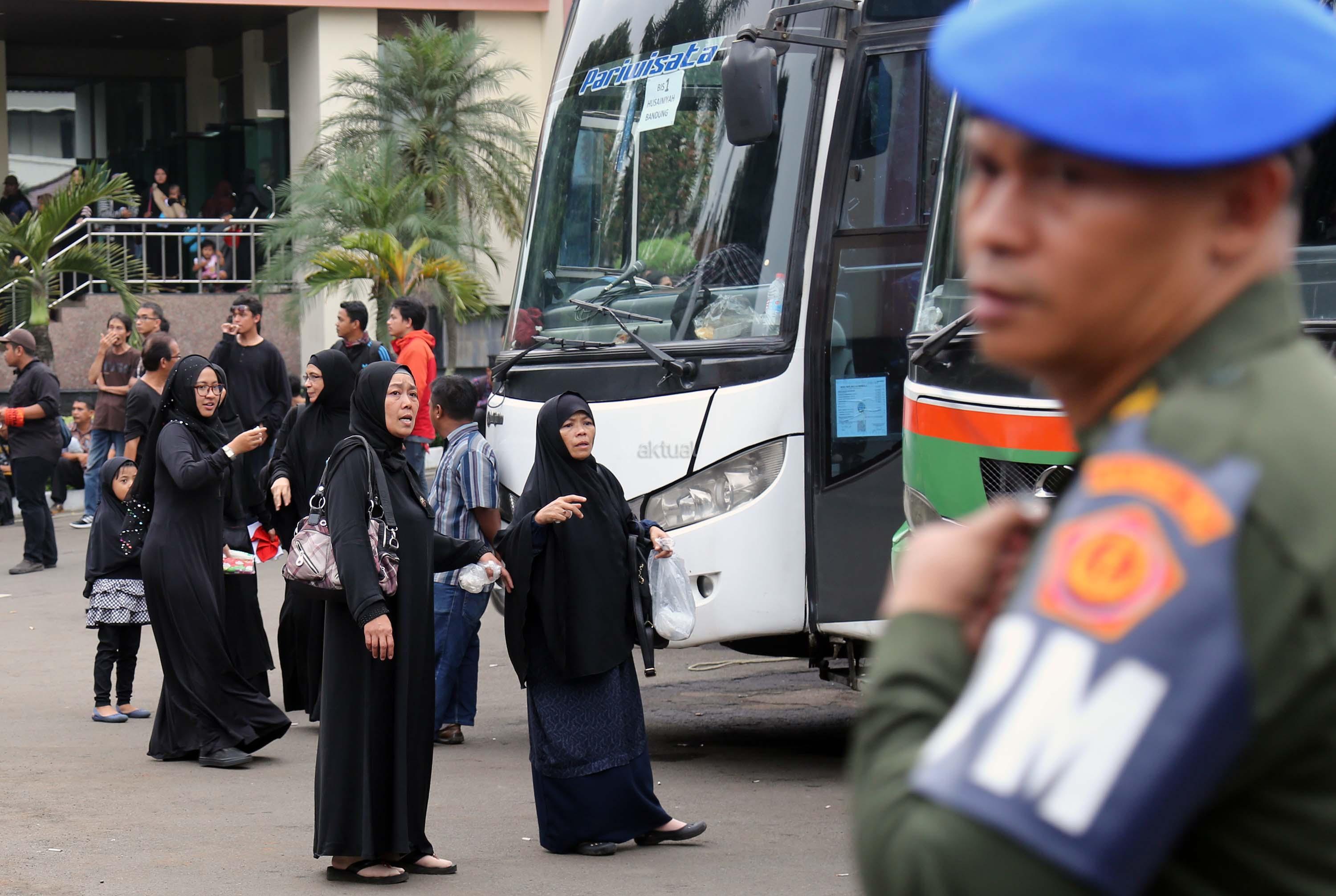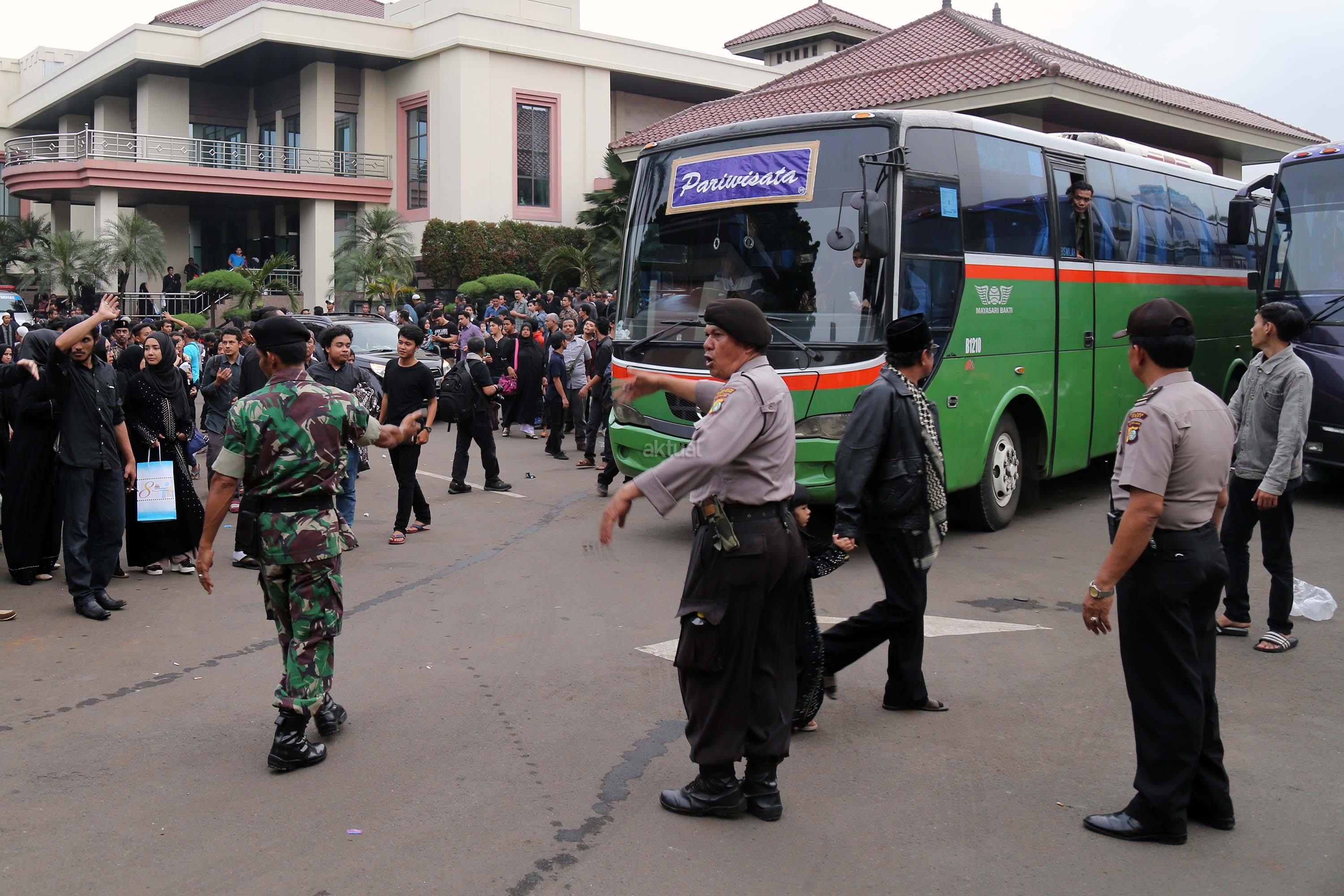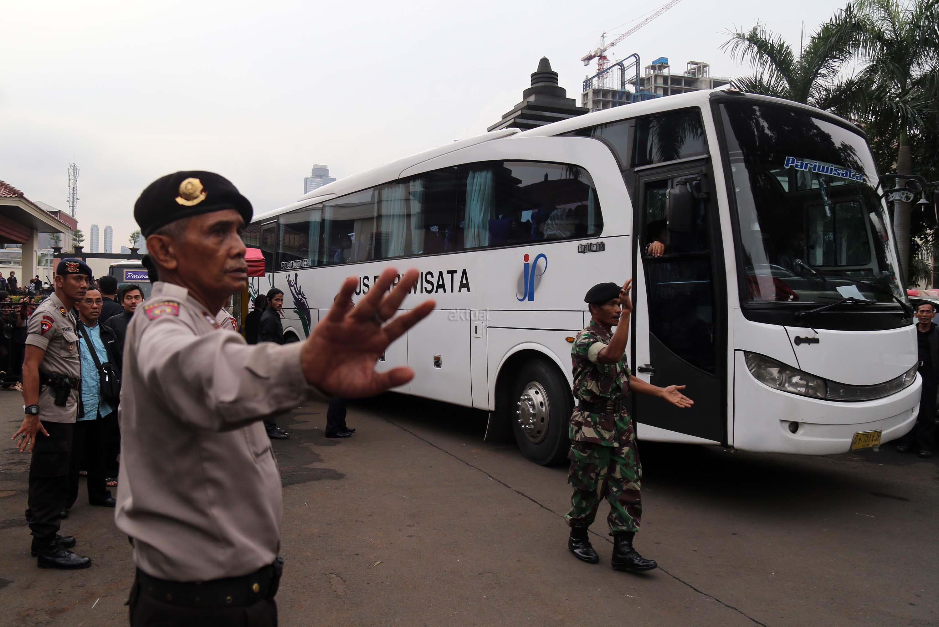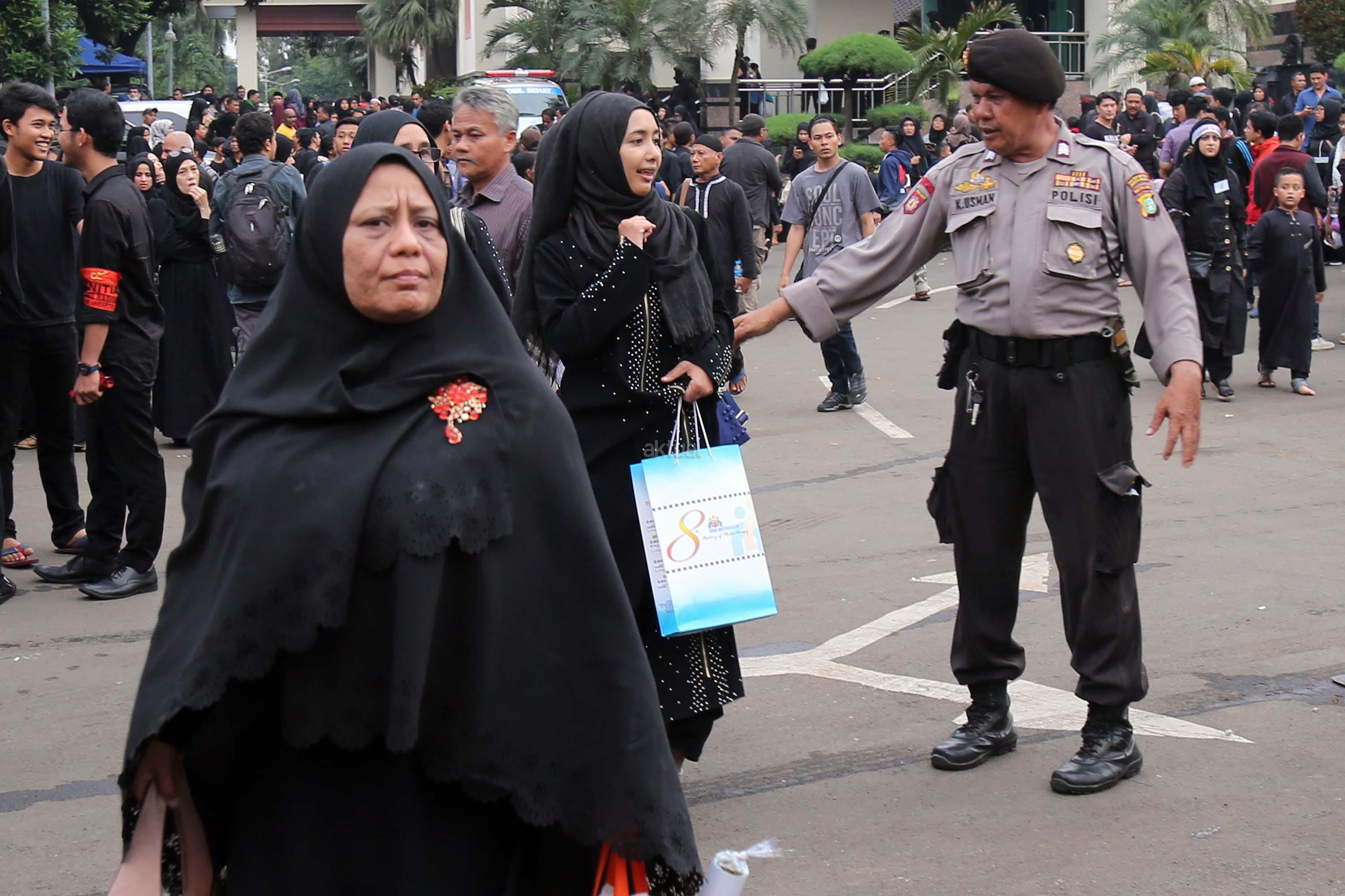 Umat Islam penganut Syiah dikawal polisi usai perayaan Hari Asyura di Balai Sudirman, Jakarta Selatan, Kamis (12/10). Hari Asyura memperingati syahidnya cucu Nabi Muhammad SAW, Imam Husein bin Ali, dalam pertempuran di Karbala, Irak, 10 Muharam tahun 61 Hijriah atau lebih dari 1.300 tahun lampau. Perayaan yang digagas oleh Lembaga Komunikasi Ahlul Bait ini mengambil tema “Satukan Langkah, Raih Keadilan”.