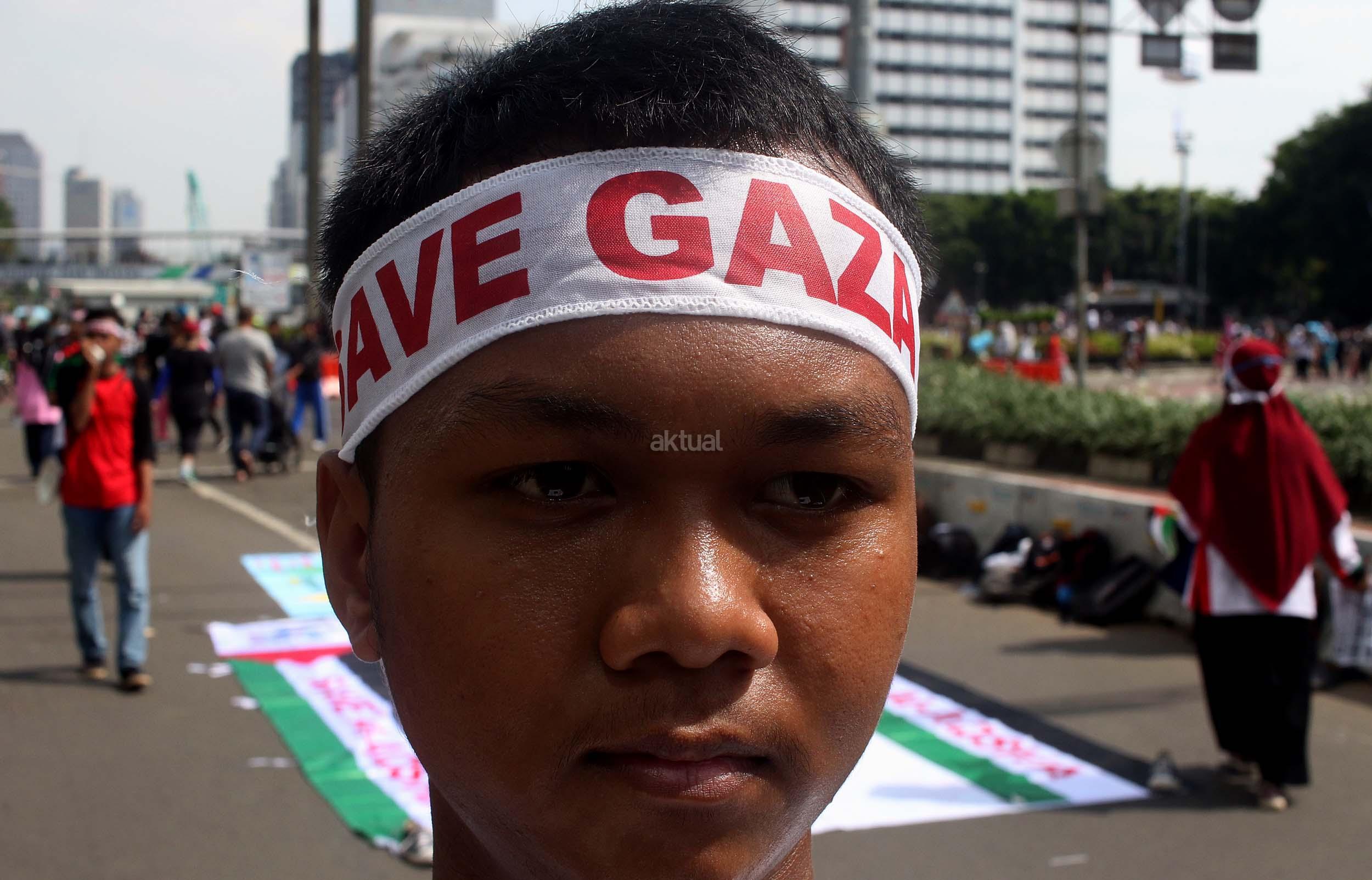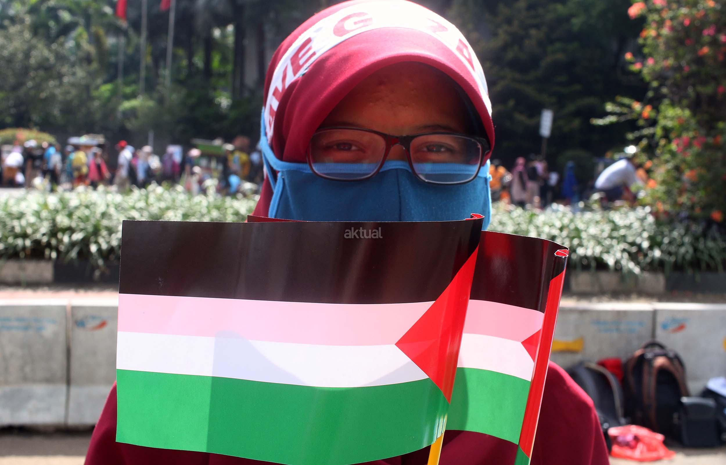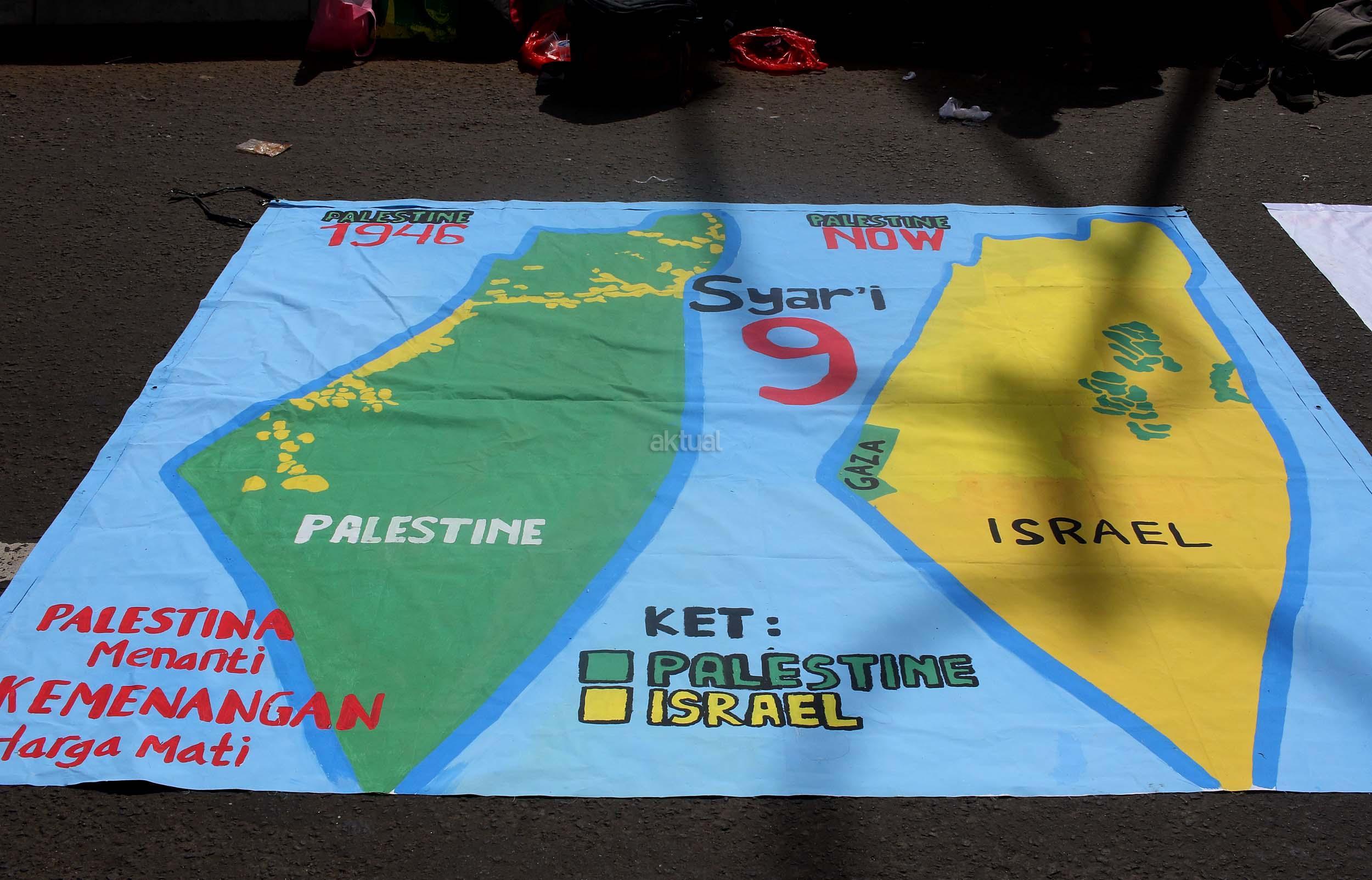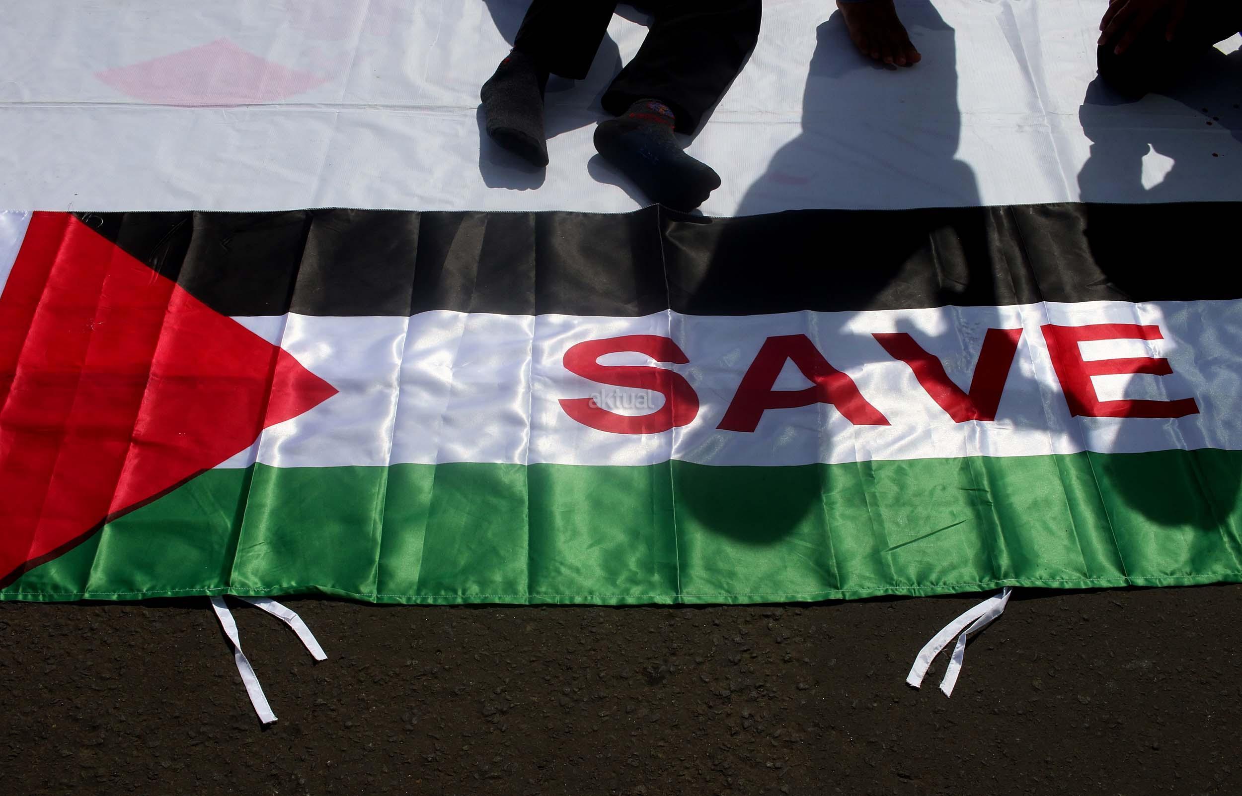 Sejumlah mahasiswa yang tergabung dalam Lembaga Dakwah Kampus (LDK) STEI SEBI melakukan aksi kampanye Palestina Menanti, Kemanangan Harga Mati di kawasan CFD, Jakarta, Minggu (30/10/2016). Dalam aksinya para mahasiswa memainkan teaterikal bagaimana kehidupan rakyat Palestina masih mengalami todongan senjata dan pengusiran paksa oleh pemerintahan Zionis Israel.