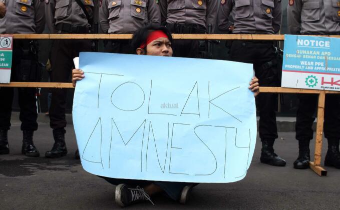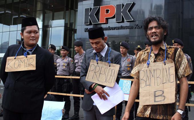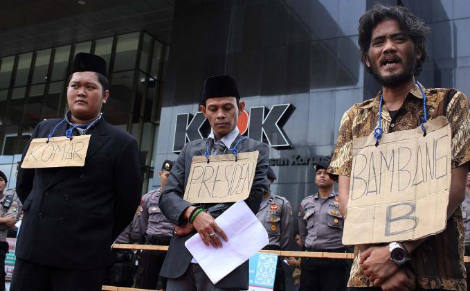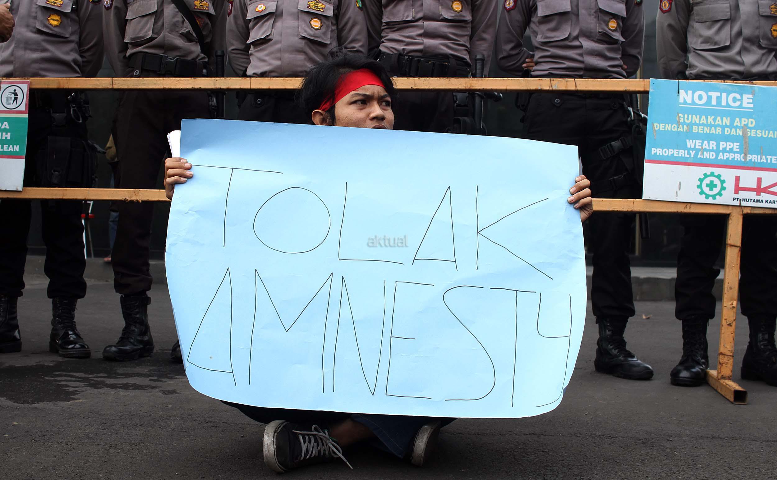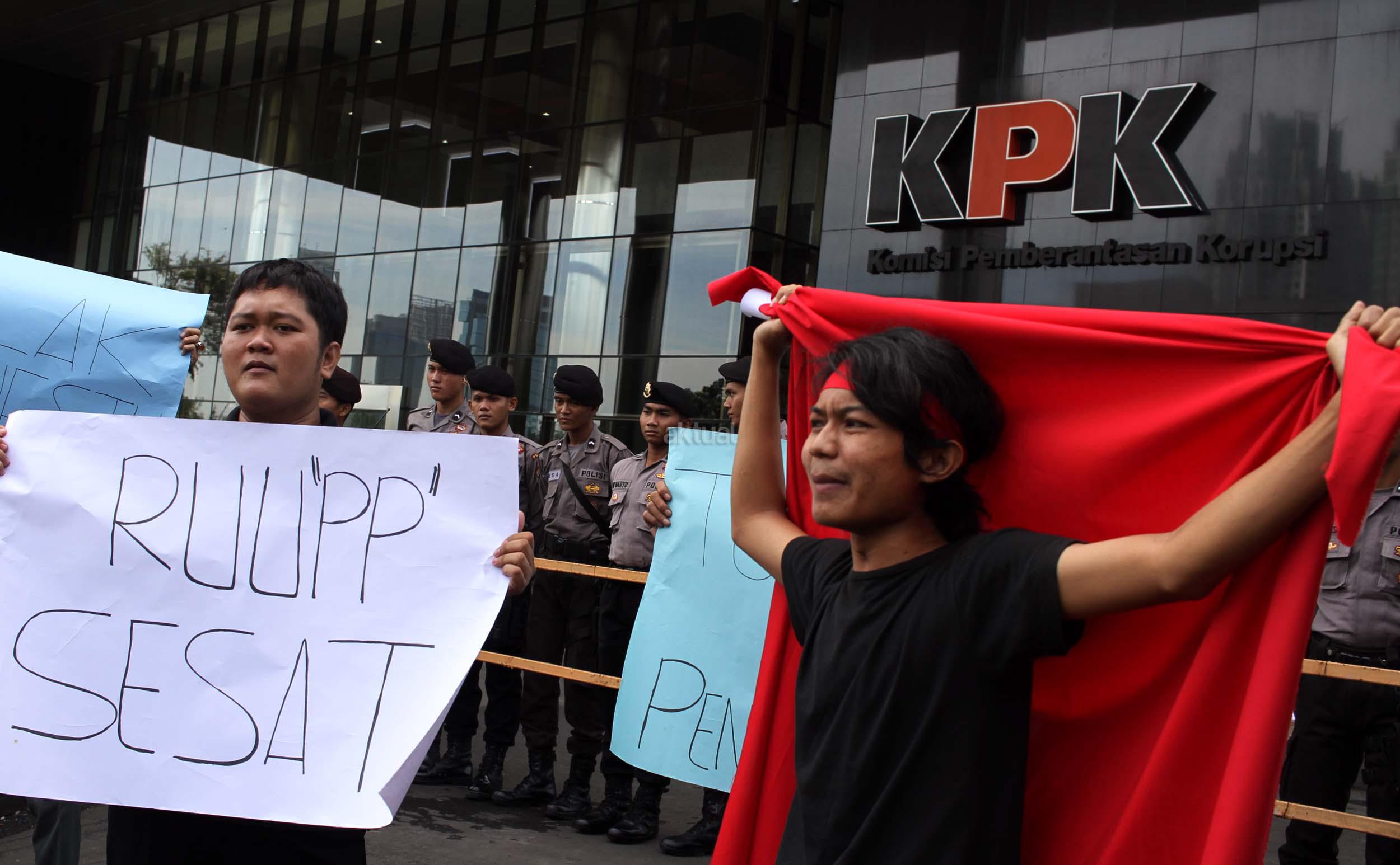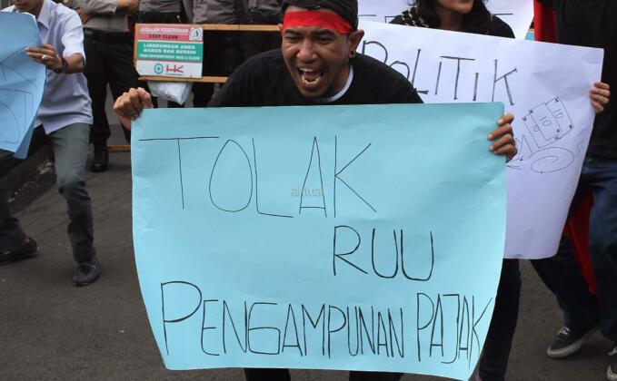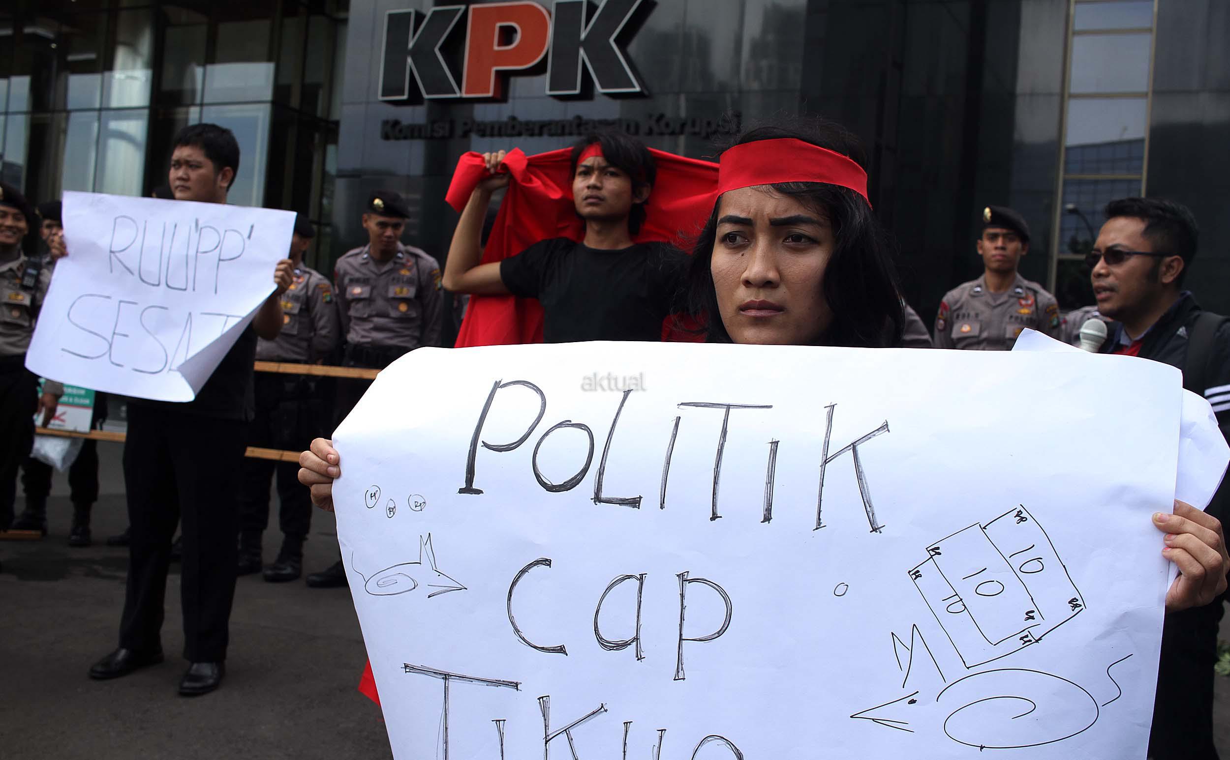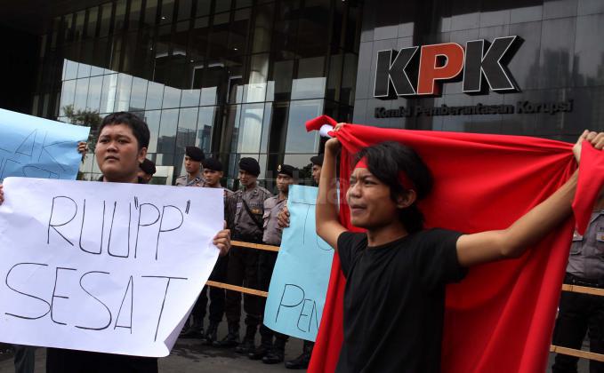 Puluhan aktivis FITRA menggelar aksi menolak pengampunan pengemplang pajak (Tax Amnesty) didepan Gedung KPK di Jakarta, Selasa (21/6/2016). FITRA juga meminta KPK mengawasi proses pembahasan UU Tax Amnesty yang dinilai rawan transaksional.
