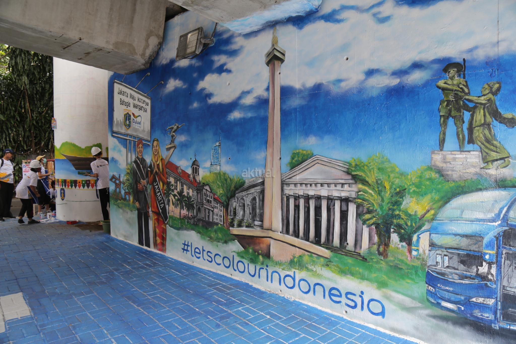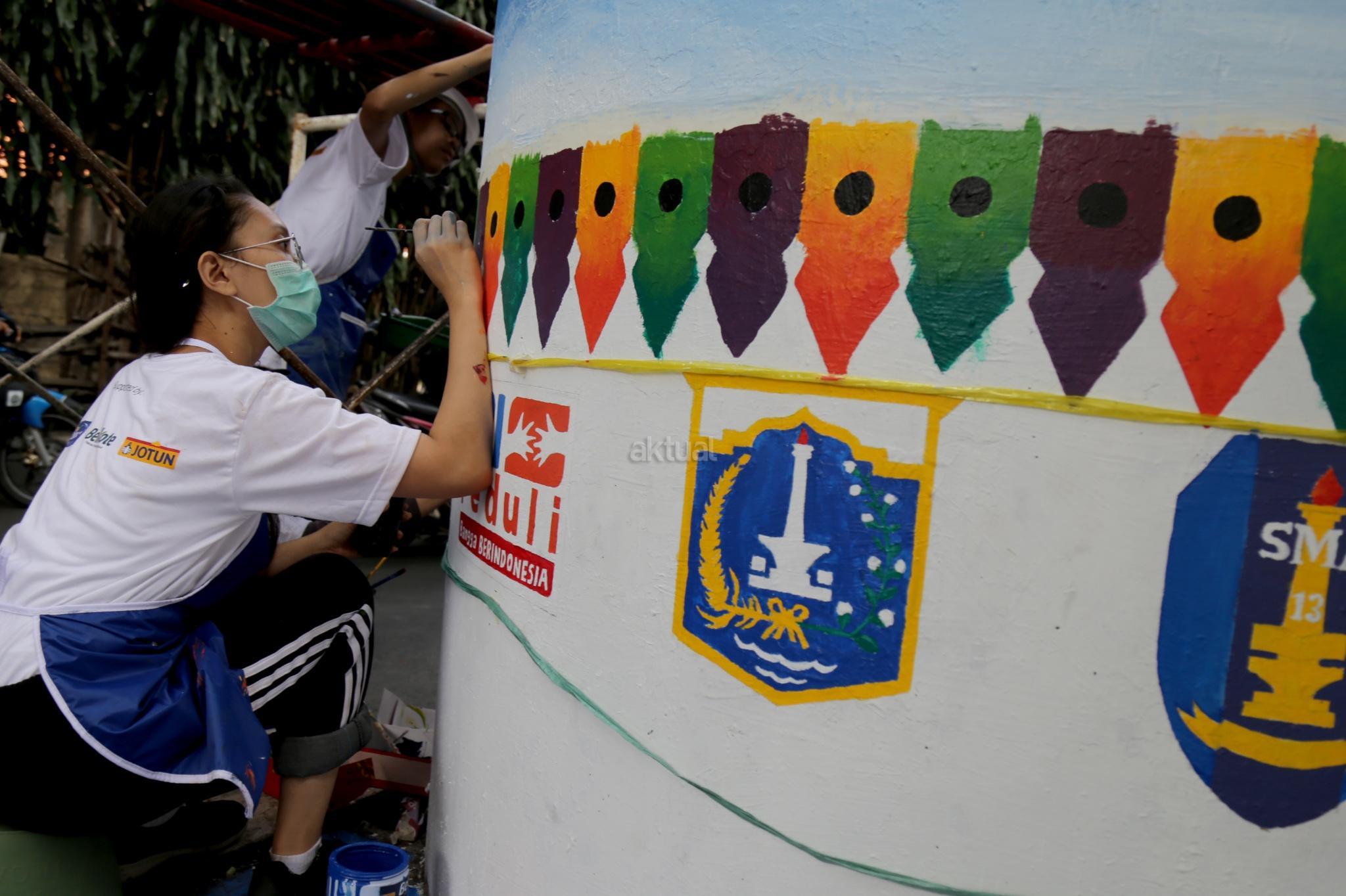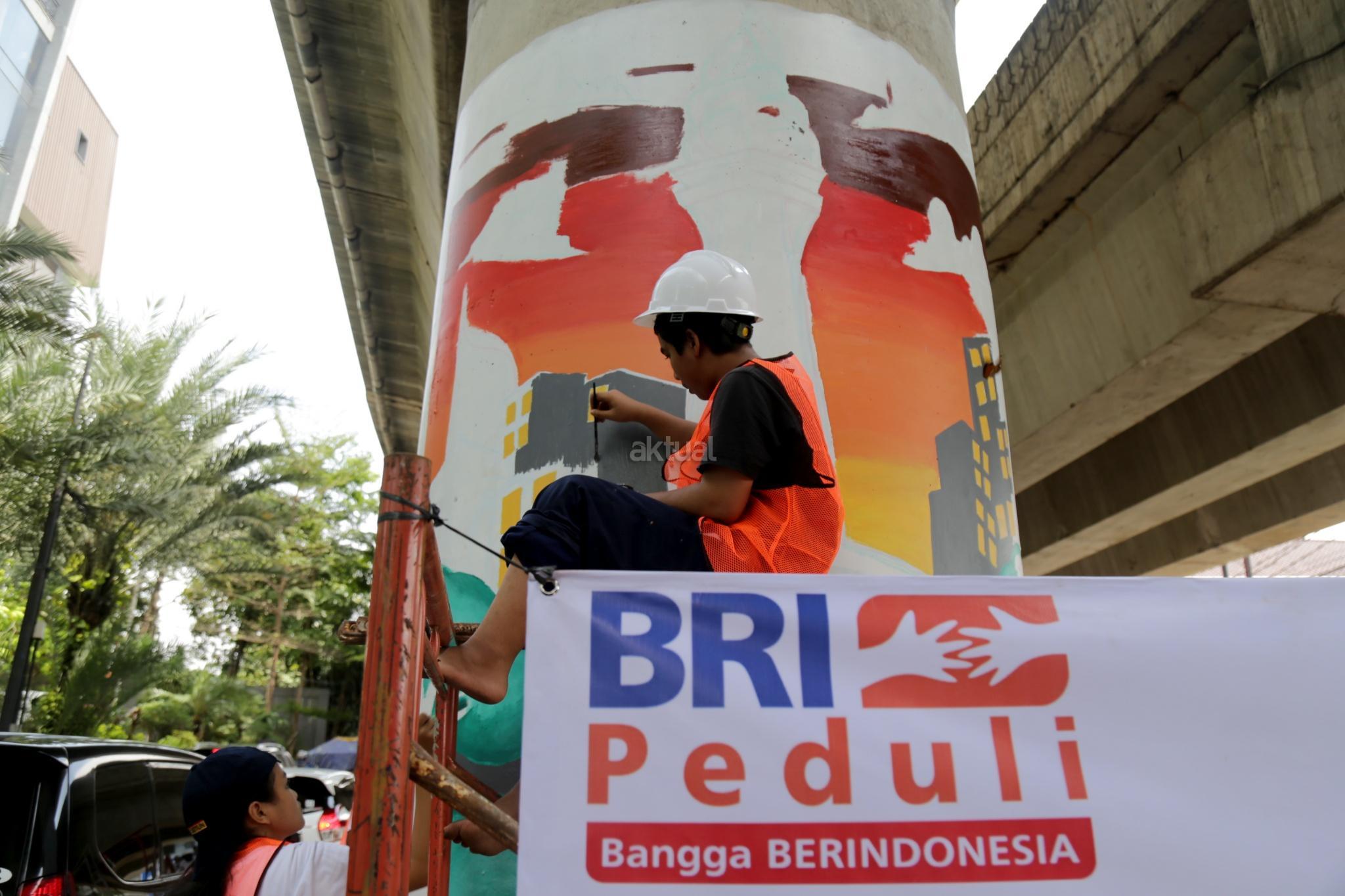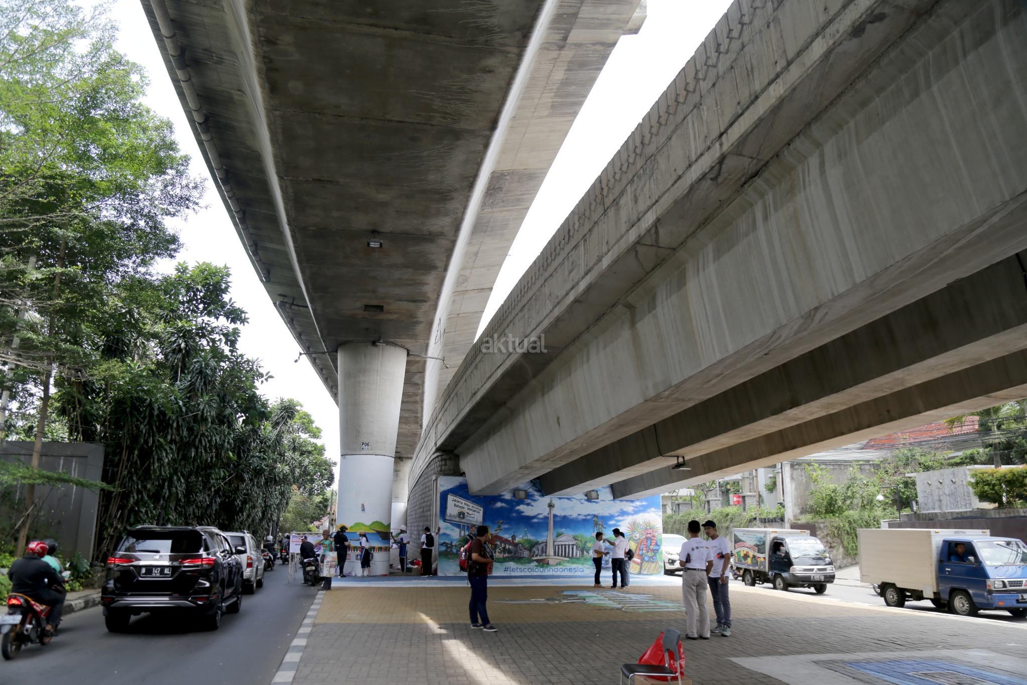 Aksi Pelajar Melukis Mural di Tiang Jalan Layang Non Tol Antasari