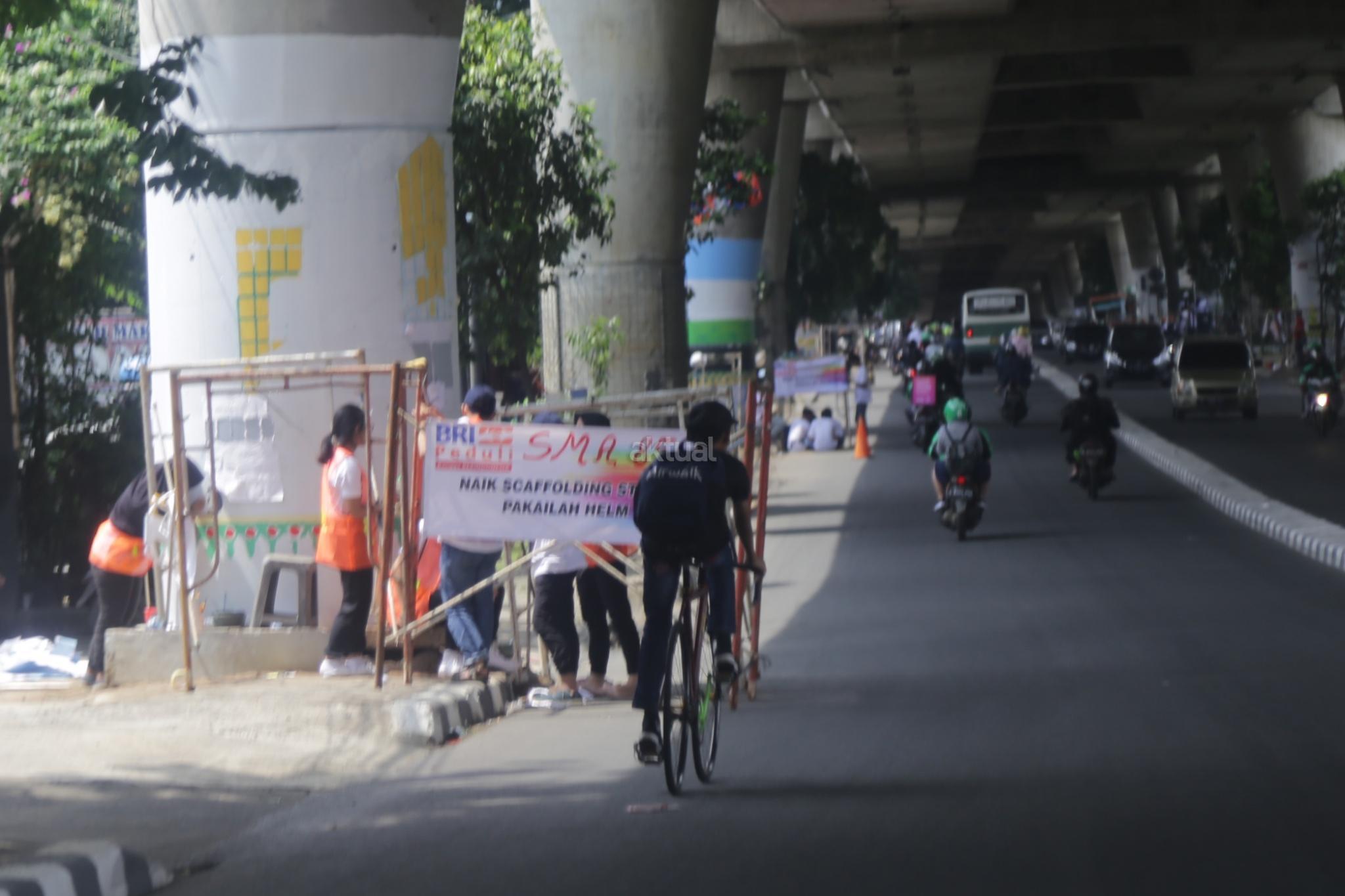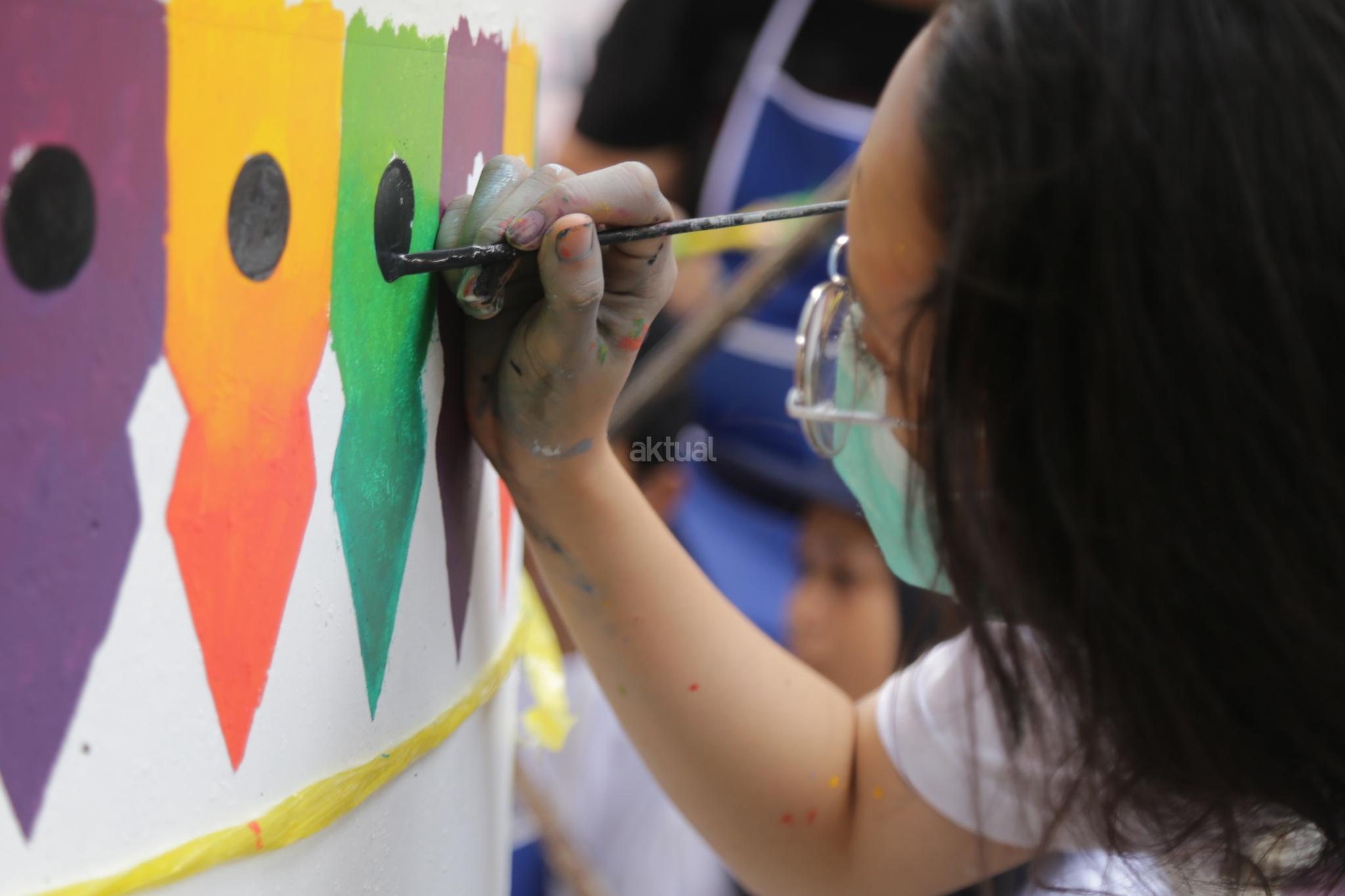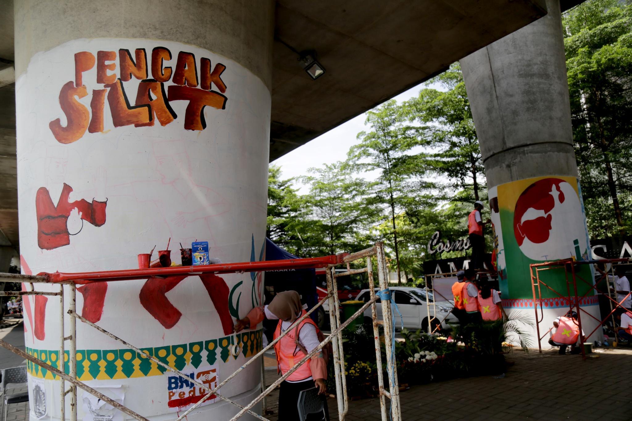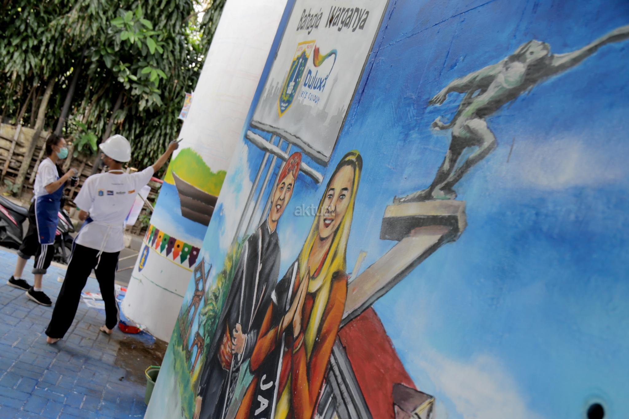 Aksi Pelajar Melukis Mural di Tiang Jalan Layang Non Tol Antasari