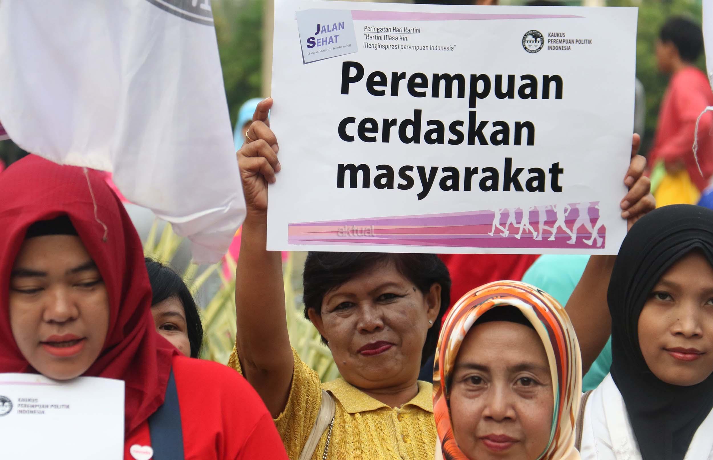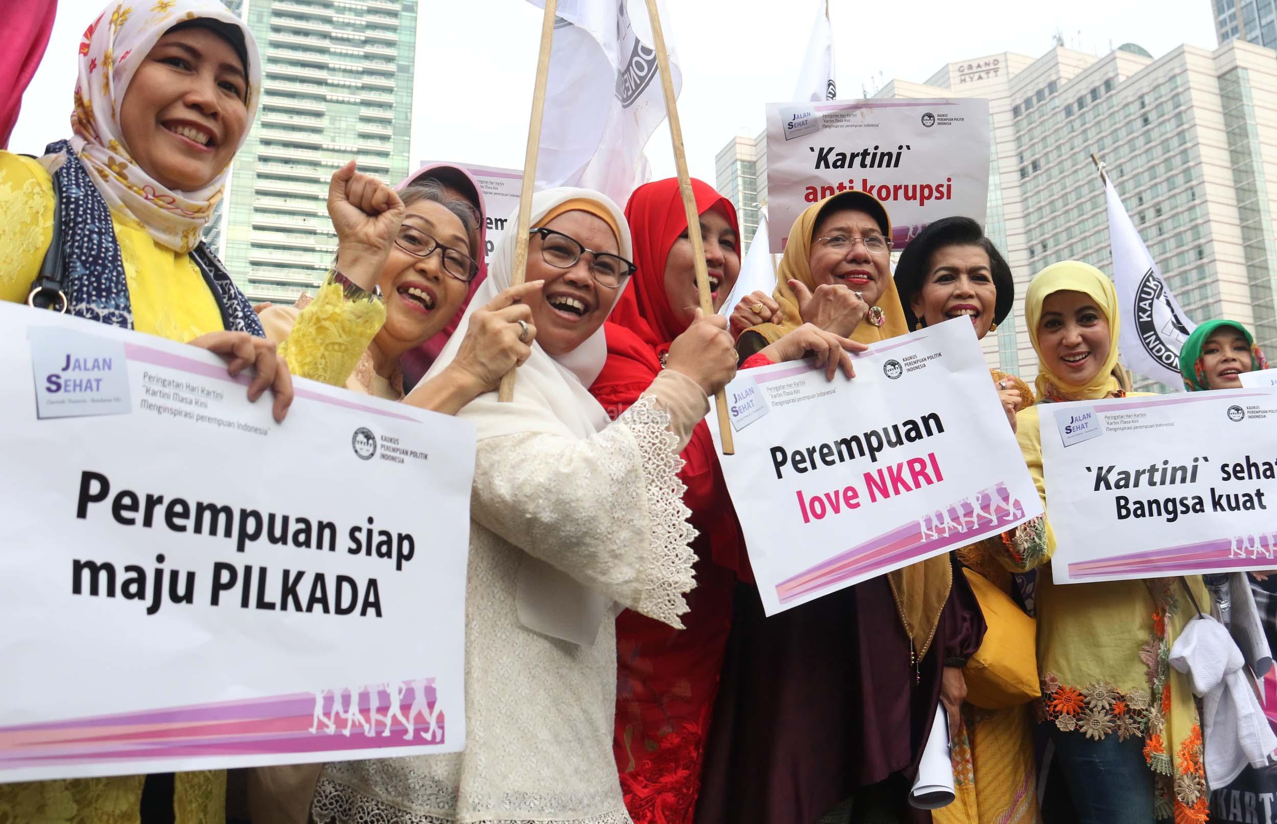 Sejumlah perempuan yang tergabung dalam Kaukus Perempuan Politik Indonesia (KPPI) melakukan aksi jalan sehat menjelang peringatan hari Kartini, di CFD, kawasan Bunderan HI, Jakarta, Minggu (16/4/2017). Aksi jalan sehat Kaukus Perempuan Politik Indonesia (KIPP), dengan tema " Kartini Masa Kini, Menginspirasi Perempuan Indonesia ". AKTUAL/Munzir