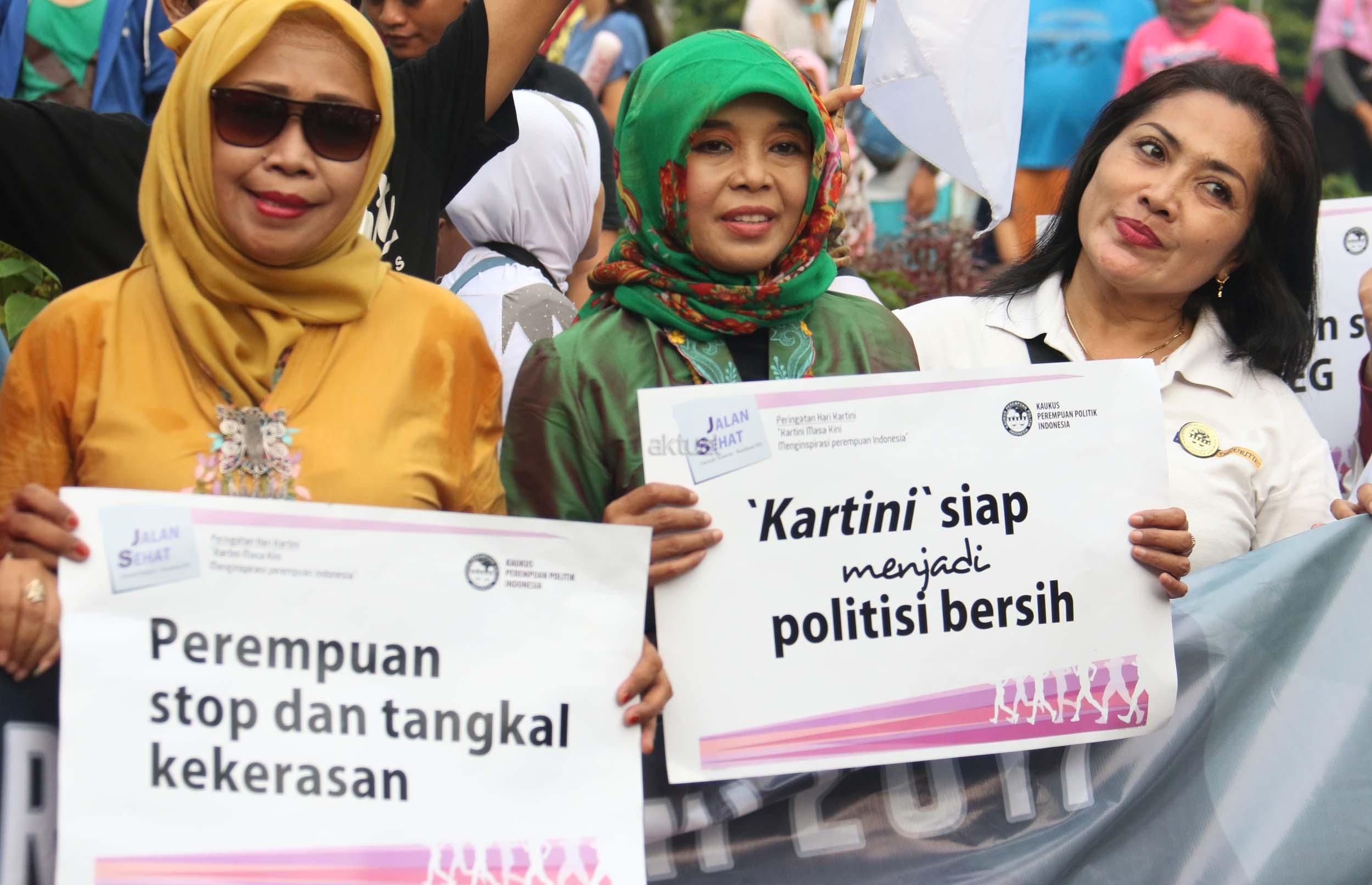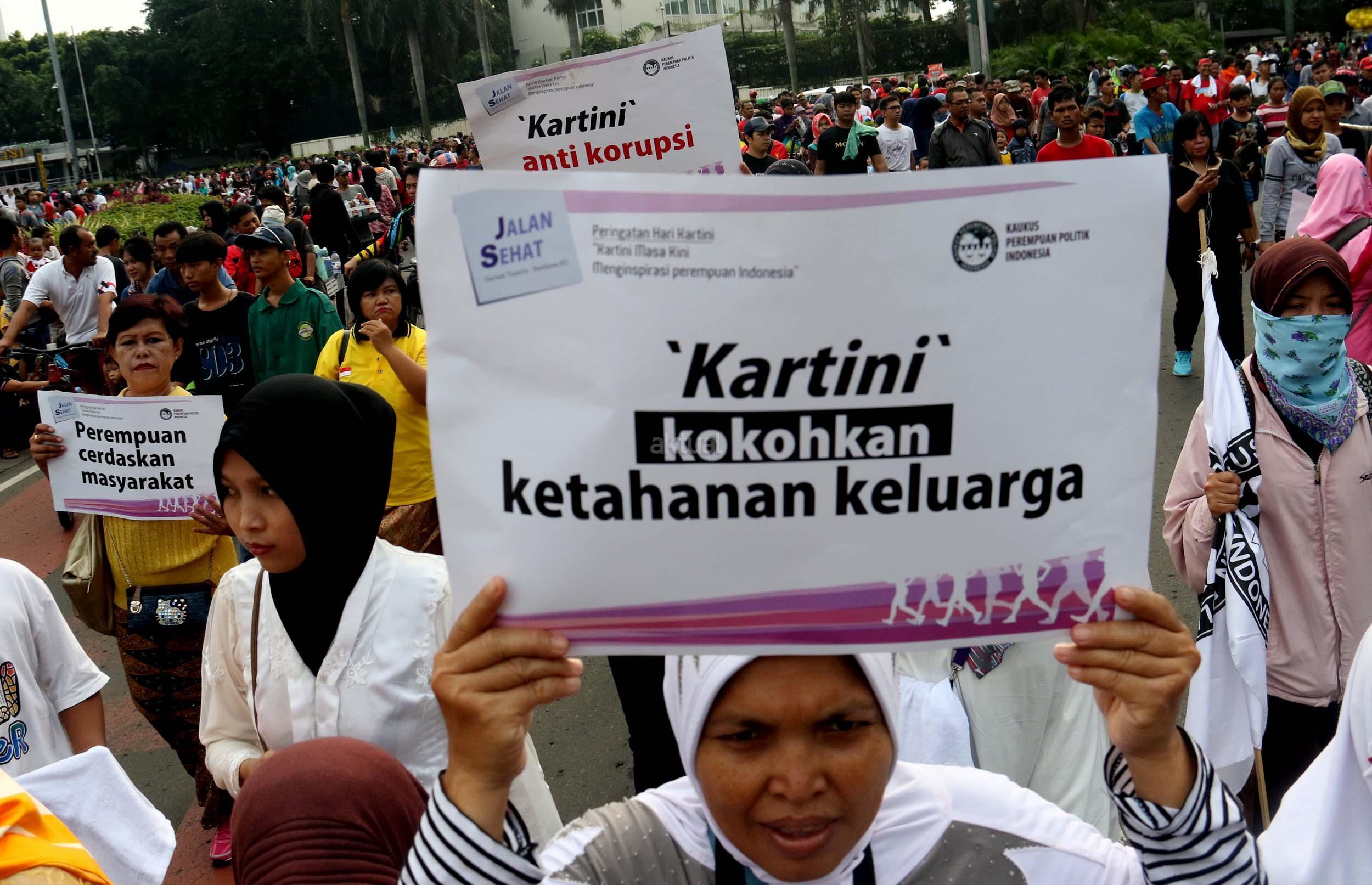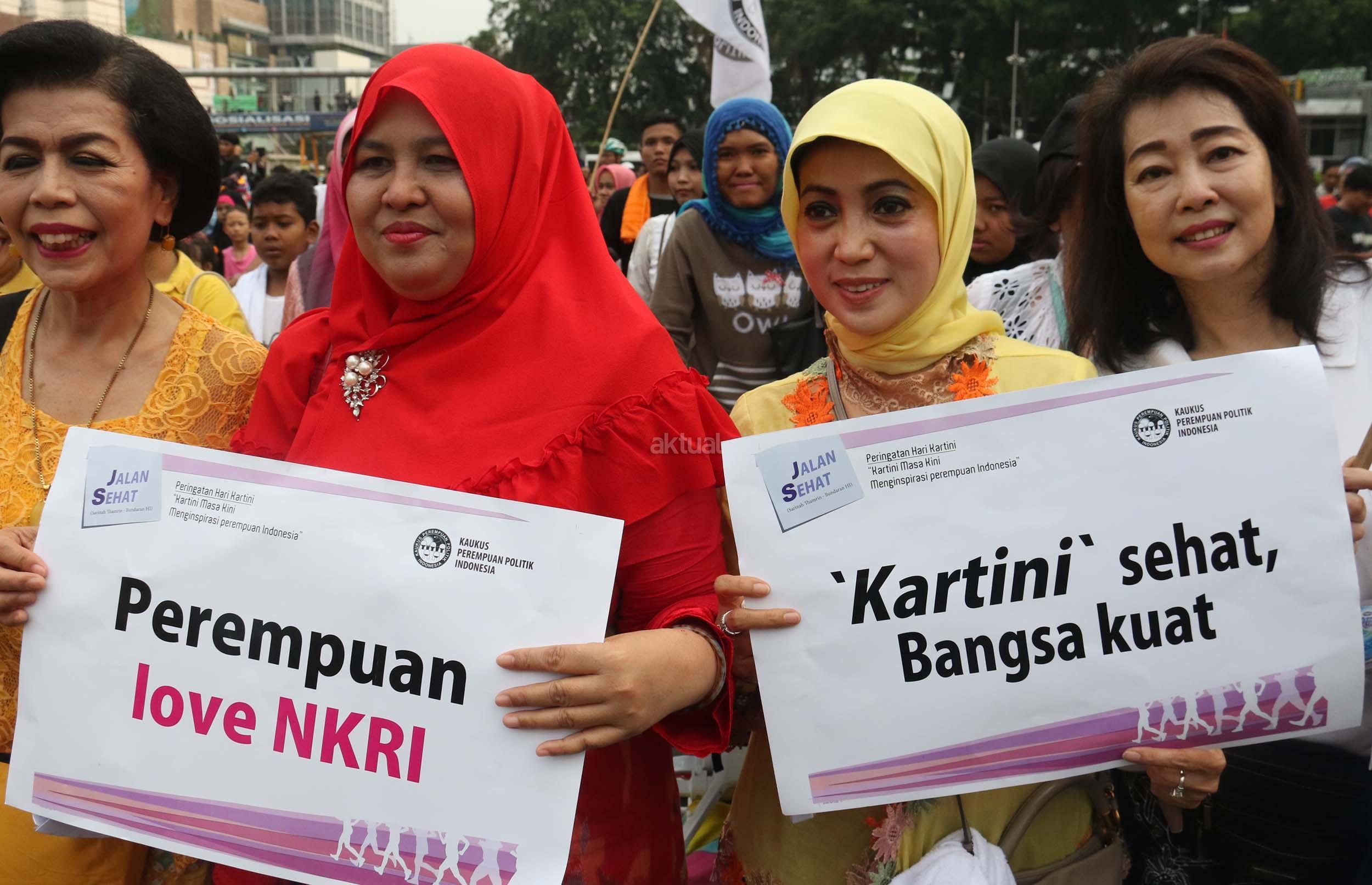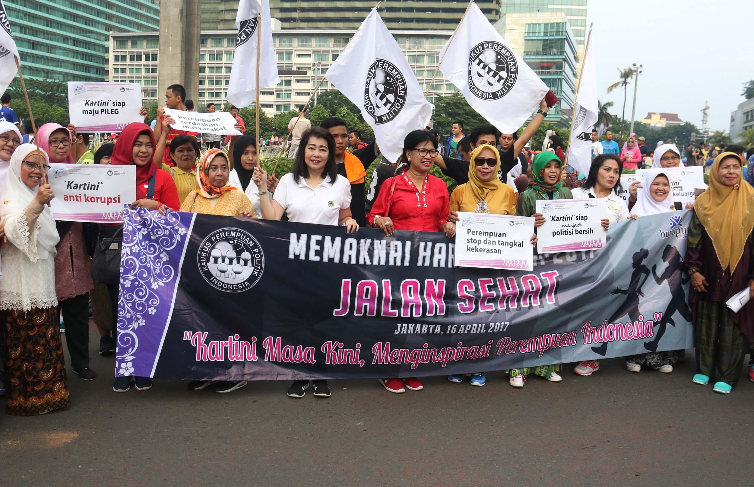 Sejumlah perempuan yang tergabung dalam Kaukus Perempuan Politik Indonesia (KPPI) melakukan aksi jalan sehat menjelang peringatan hari Kartini, di CFD, kawasan Bunderan HI, Jakarta, Minggu (16/4/2017). Aksi jalan sehat Kaukus Perempuan Politik Indonesia (KIPP), dengan tema ” Kartini Masa Kini, Menginspirasi Perempuan Indonesia “. AKTUAL/Munzir
