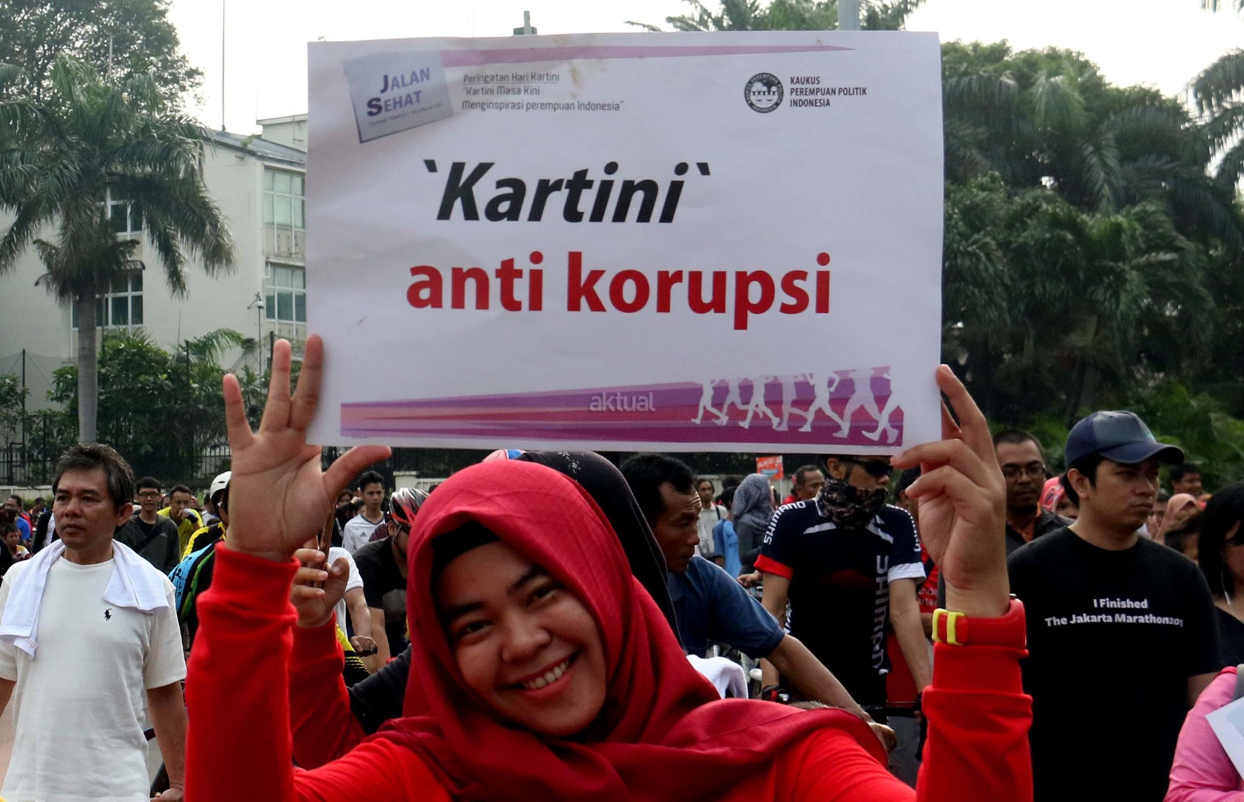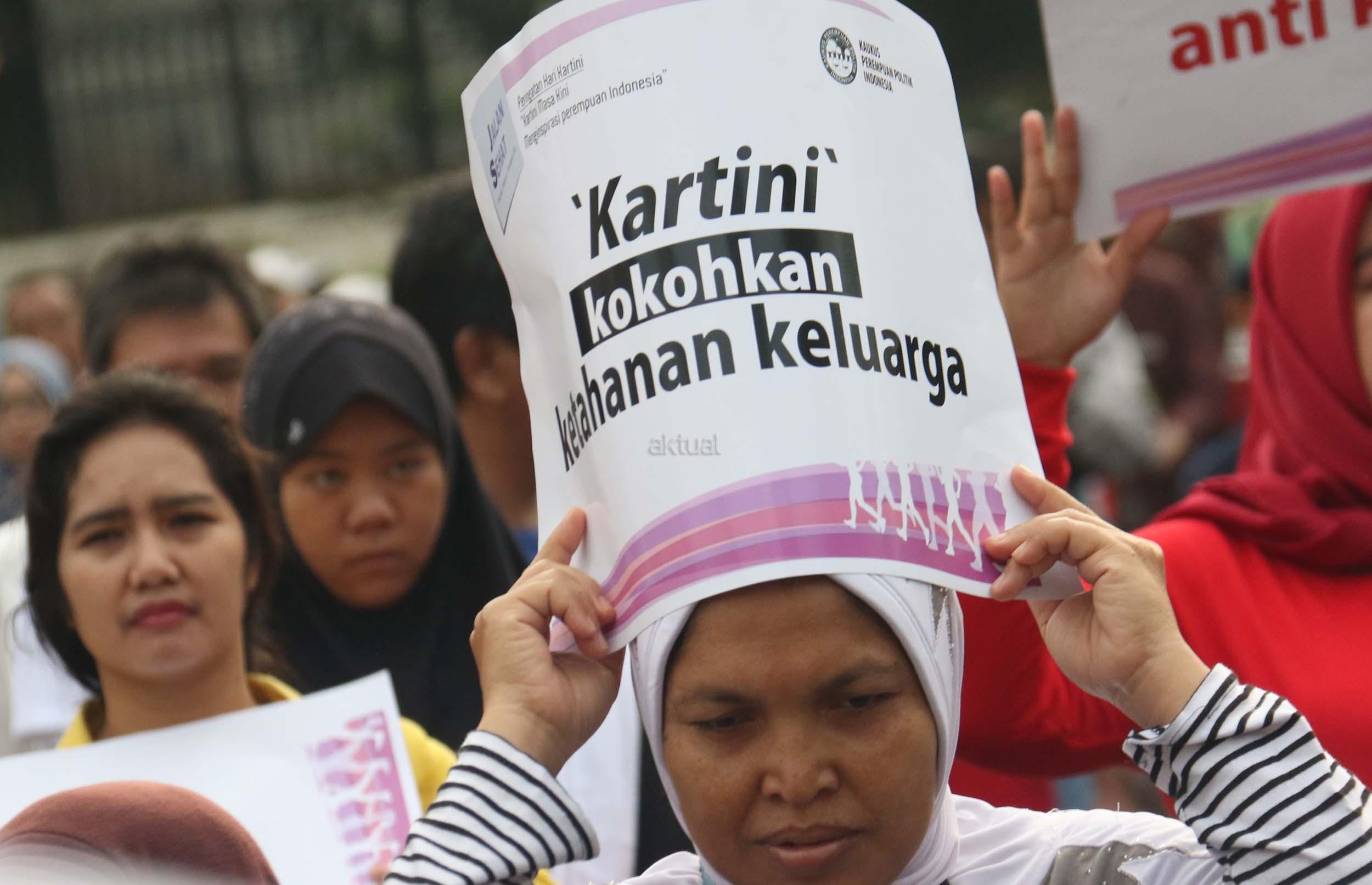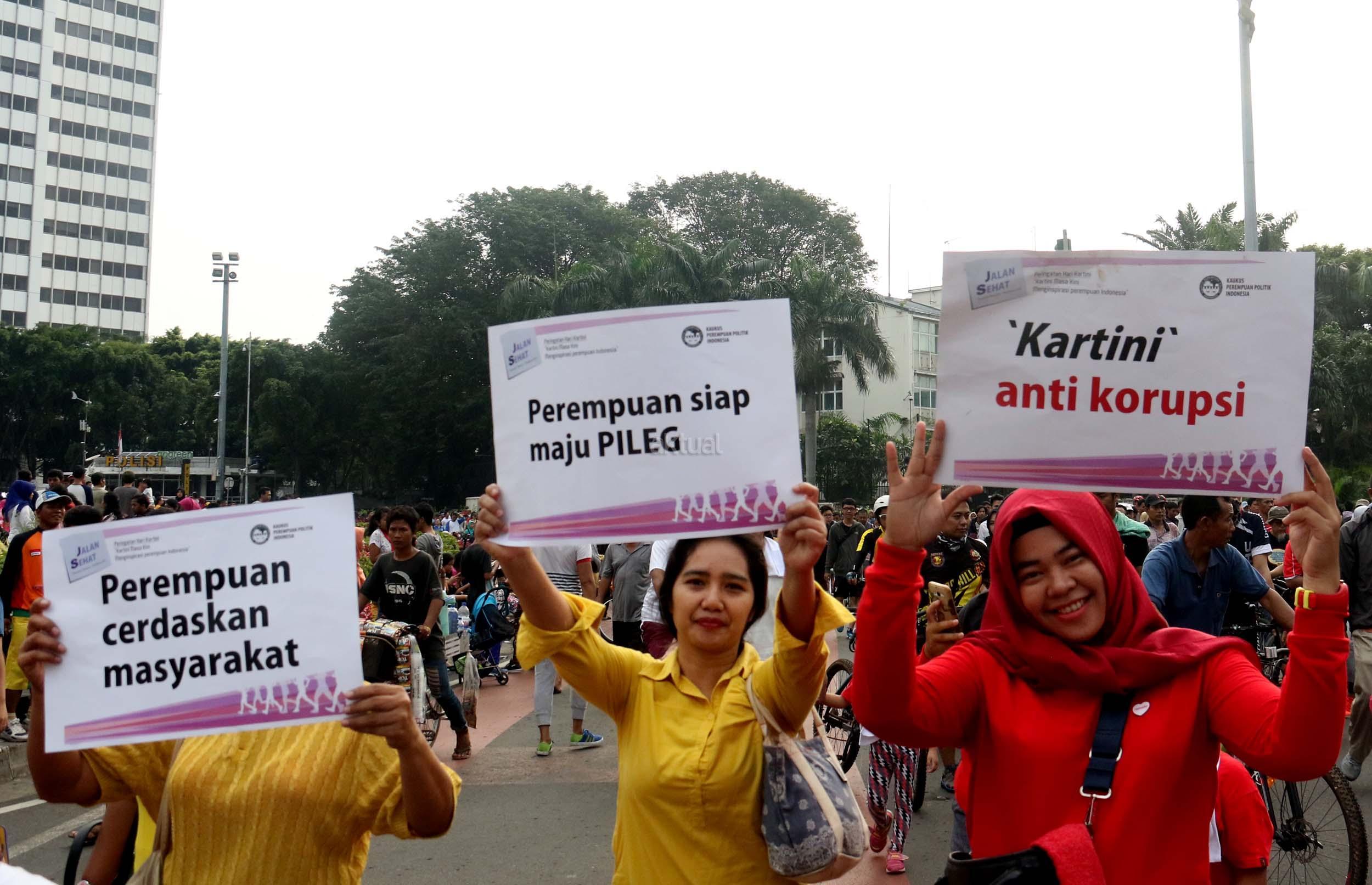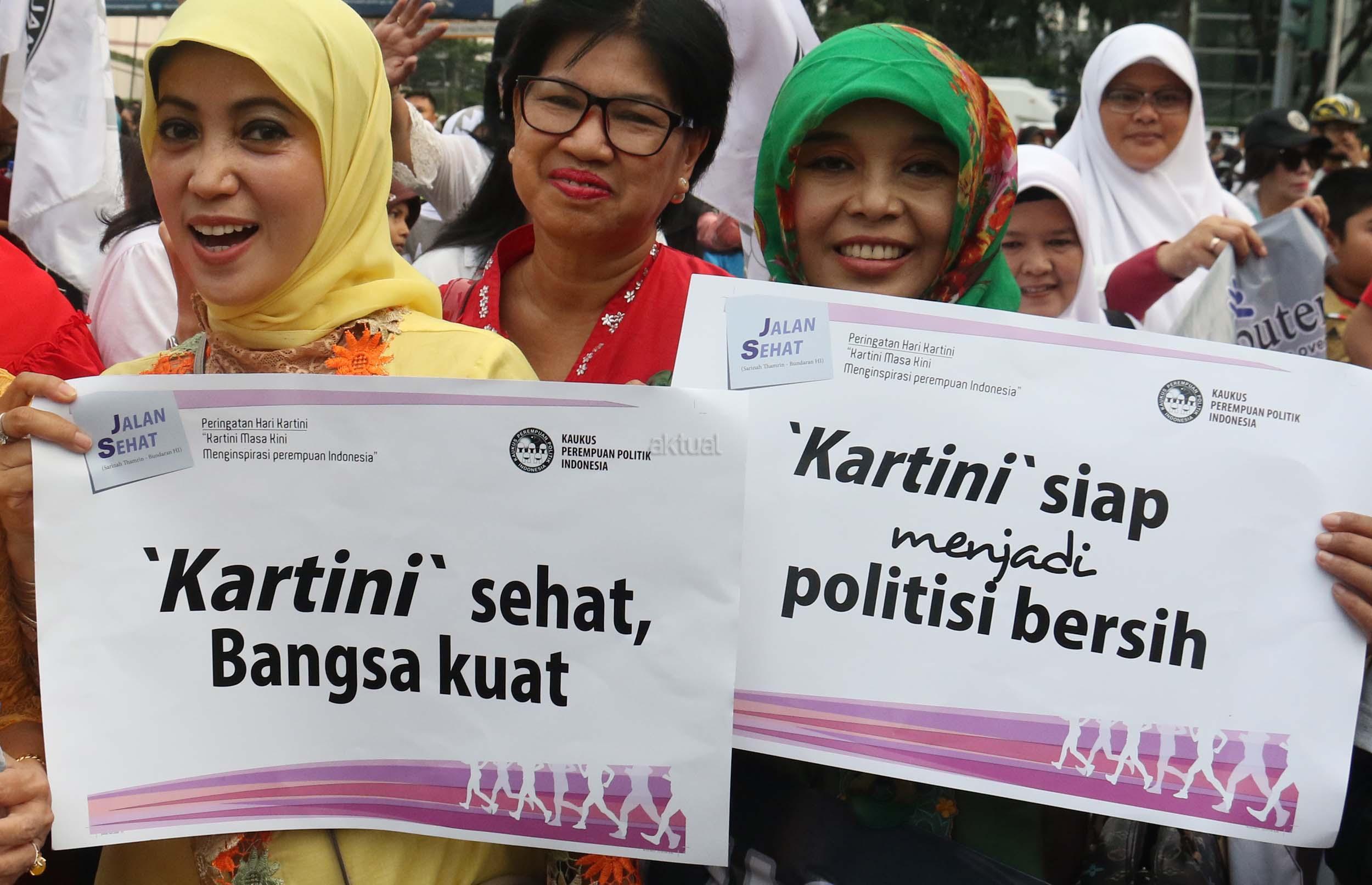 Sejumlah perempuan yang tergabung dalam Kaukus Perempuan Politik Indonesia (KPPI) melakukan aksi jalan sehat menjelang peringatan hari Kartini, di CFD, kawasan Bunderan HI, Jakarta, Minggu (16/4/2017). Aksi jalan sehat Kaukus Perempuan Politik Indonesia (KIPP), dengan tema ” Kartini Masa Kini, Menginspirasi Perempuan Indonesia “. AKTUAL/Munzir