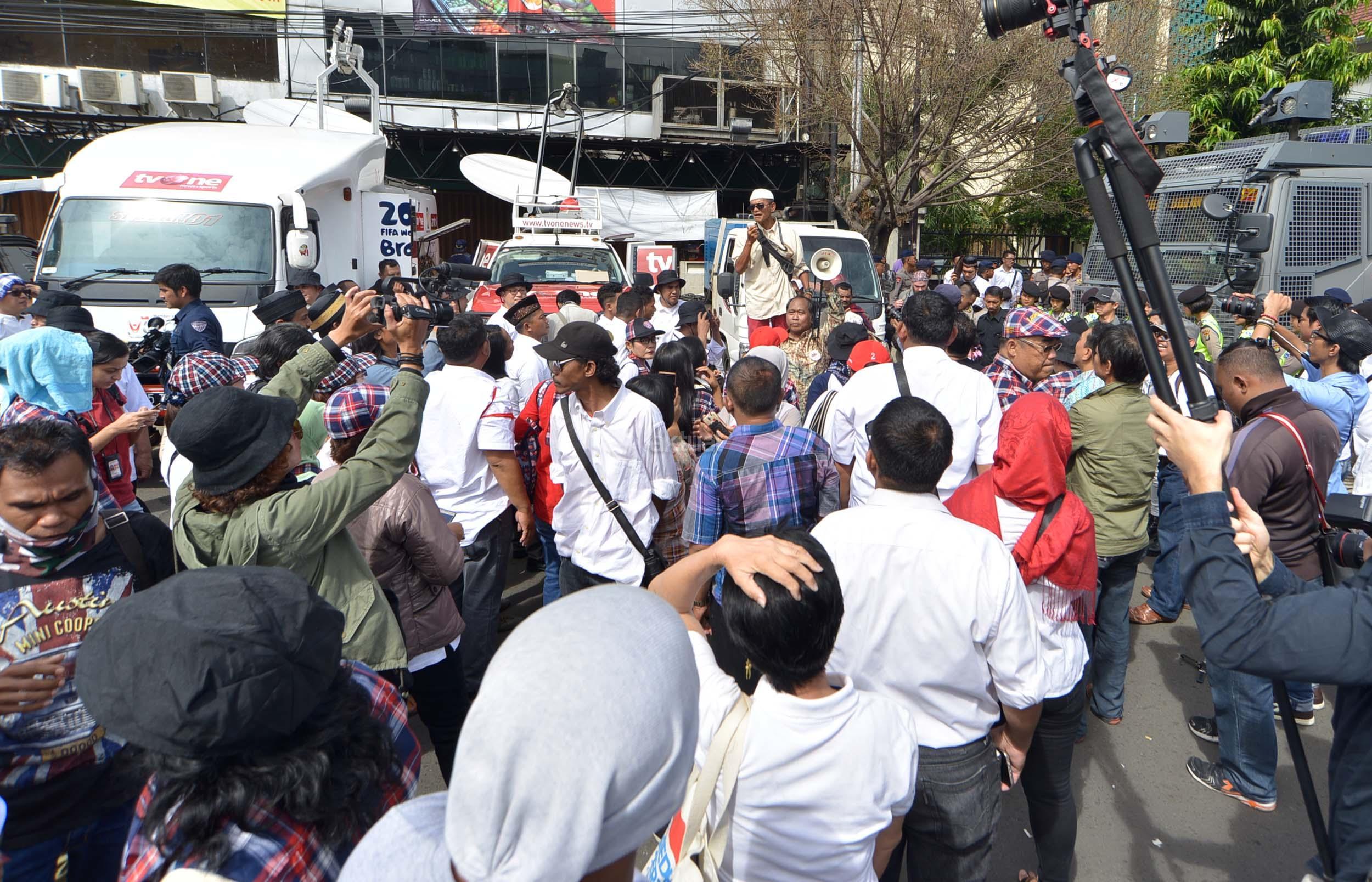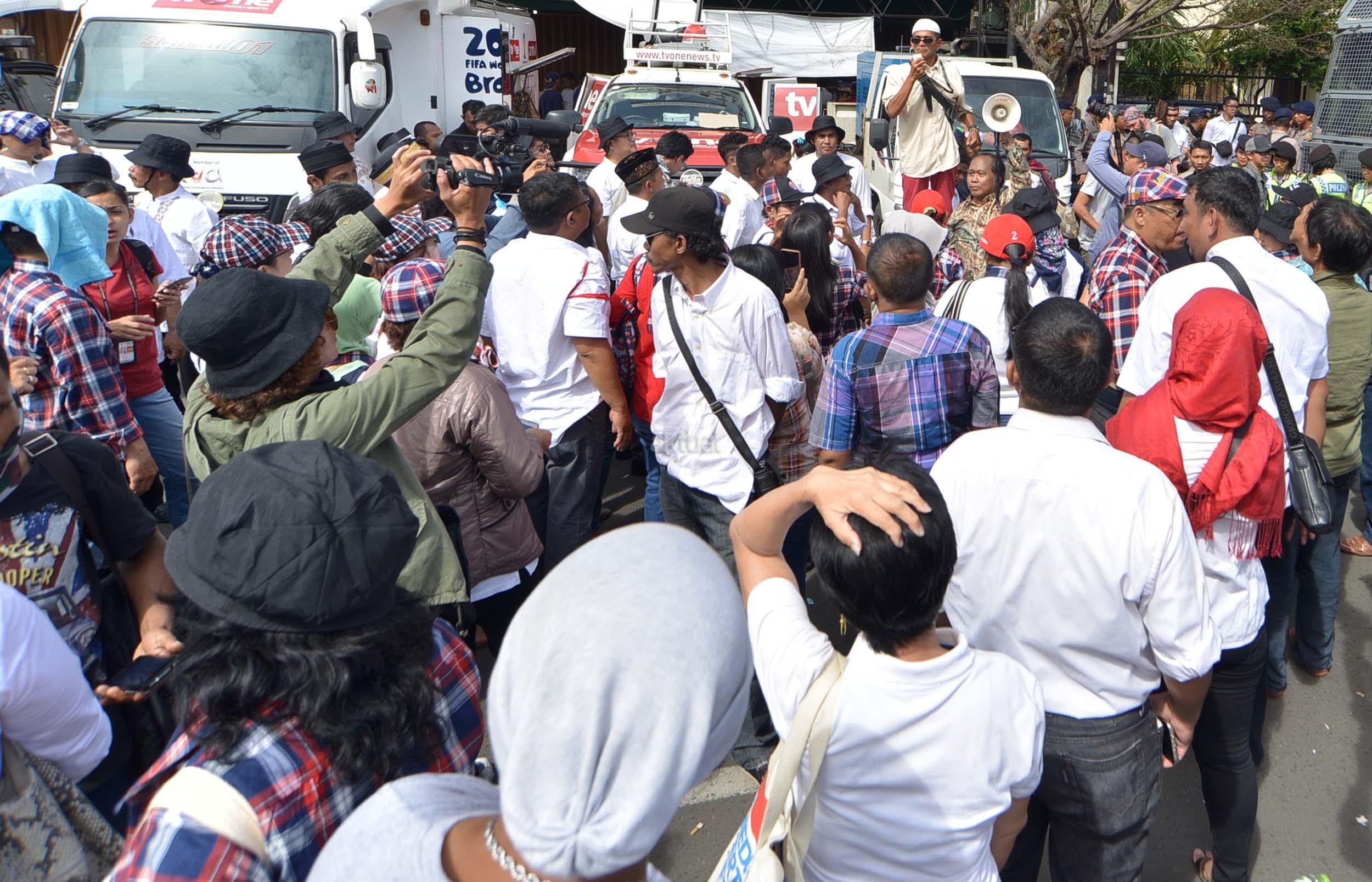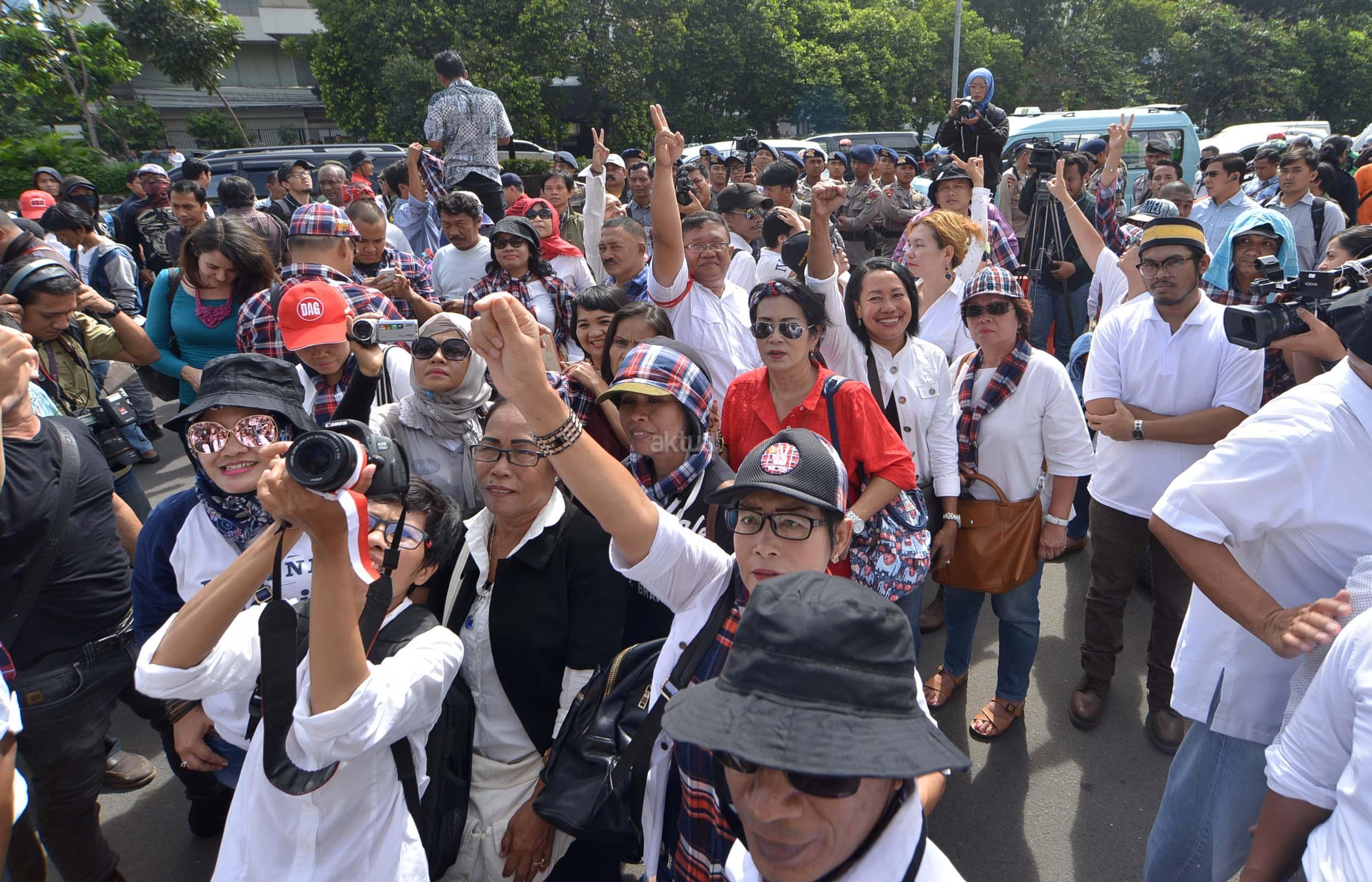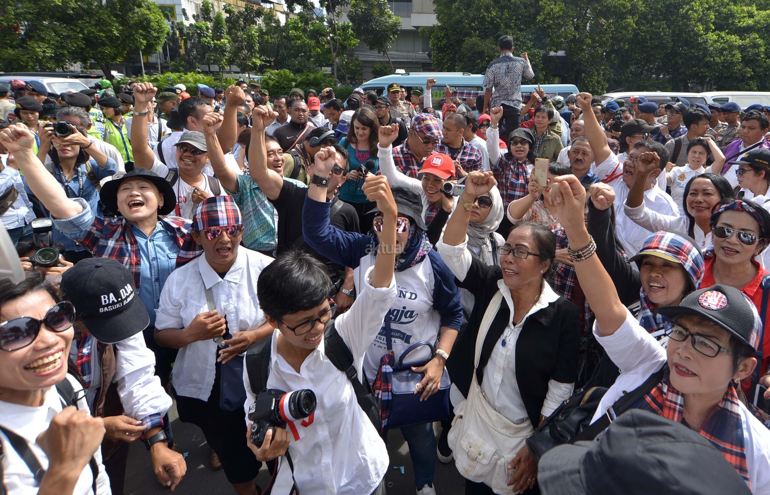 Puluhan orang yang tergabung dalam aksi Kawal BTP 1312 hadir di depan bekas Gedung PN Jakarta Pusat, Selasa (13/12/2016). Dalam aksinya para pendukung Ahok menganggap Gubernur DKI Jakarta non aktif, Basuki Tjahaya Purnama (Ahok) tak bersalah atas dugaan penistaan agama. AKTUAL/Munzir