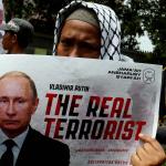 Ratusan umat muslim dari berbagai elemen organisasi melakukan aksi di depan Keduataan Besar Rusia, Jakarta, Senin (19/12/2016). Dalam aksinya umat muslim mengecam pembantaian umat muslim Aleppo, Suriah yang dilakukan oleh rezim Bashar Hafez al-Assad yang dibantu oleh Rusia dan massa juga mendesak Pemerintah Jokowi untuk mengusir Duta Besar Rusia.