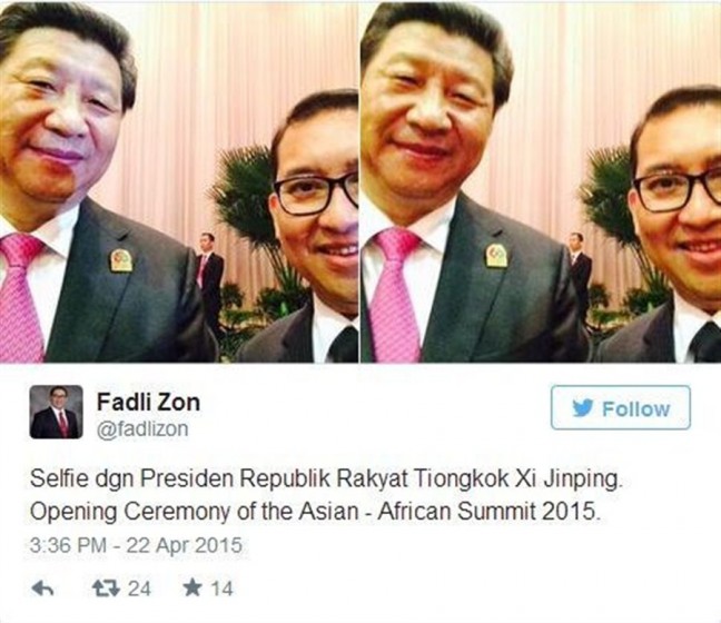 Fadli menuturkan, sebelum bertemu dan melakukan foto selfie dengan Presiden China Xi Jinping, dirinya juga berfoto selfie dengan pemimpin dunia lainnya, diantaranya Raja Abdullah dari Jordania, Presiden Vietnam Truong Tan Sang, Sultan Brunei Darussalam Hassanal Bolkiah, dan Presiden Zimbabwe Robert Mugabe.