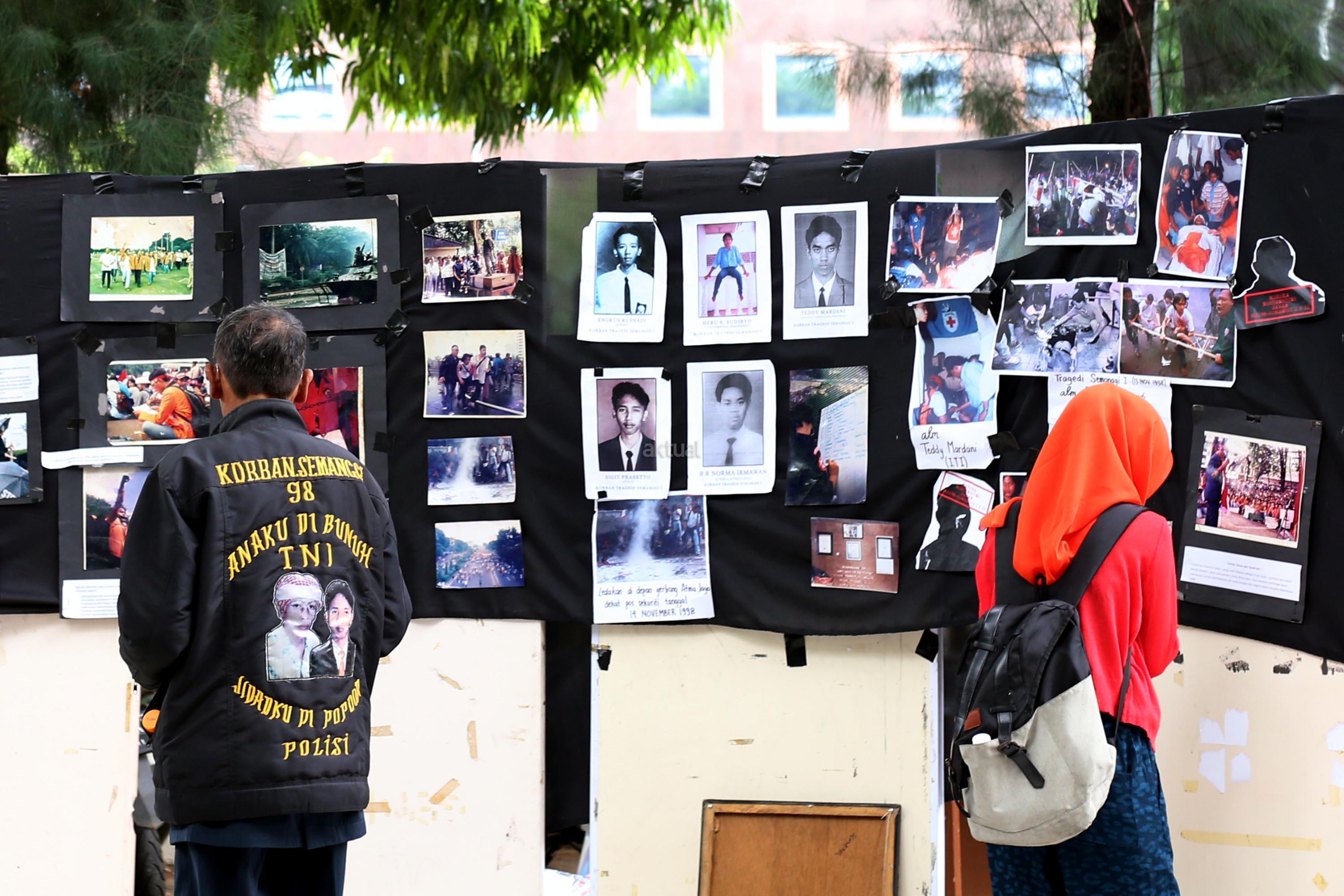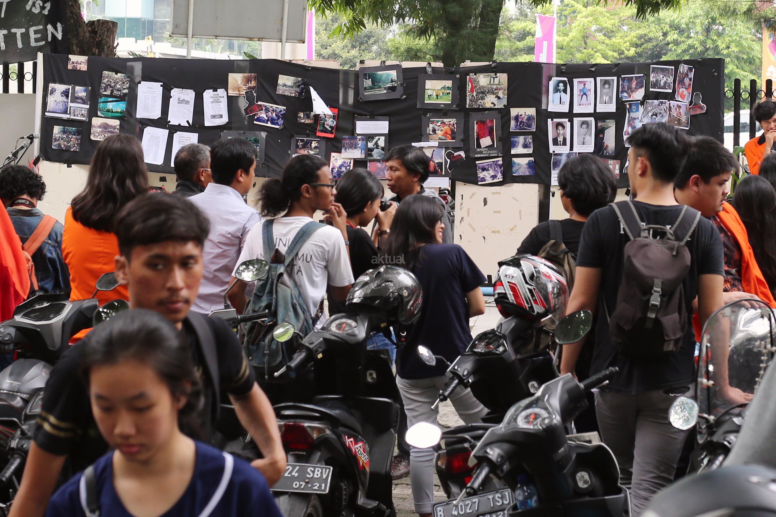 Dalam aksi yang digelar untuk mengenang tragedi Semanggi pada masa reformasi ini, mahasiswa dan keluarga korban meminta pihak berwenang tetap mengusut tuntas tragedi tersebut. AKTUAL/Munzir
