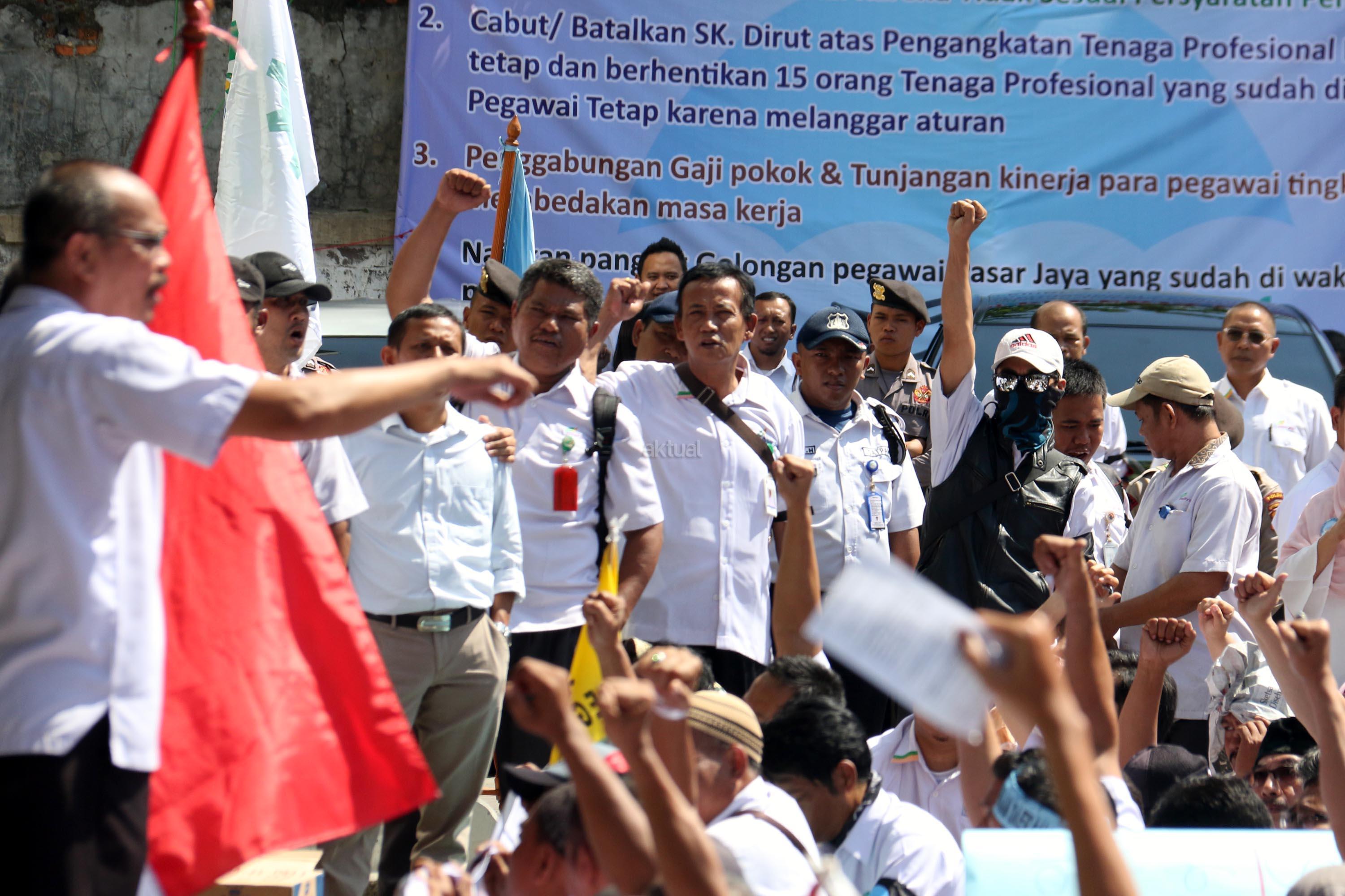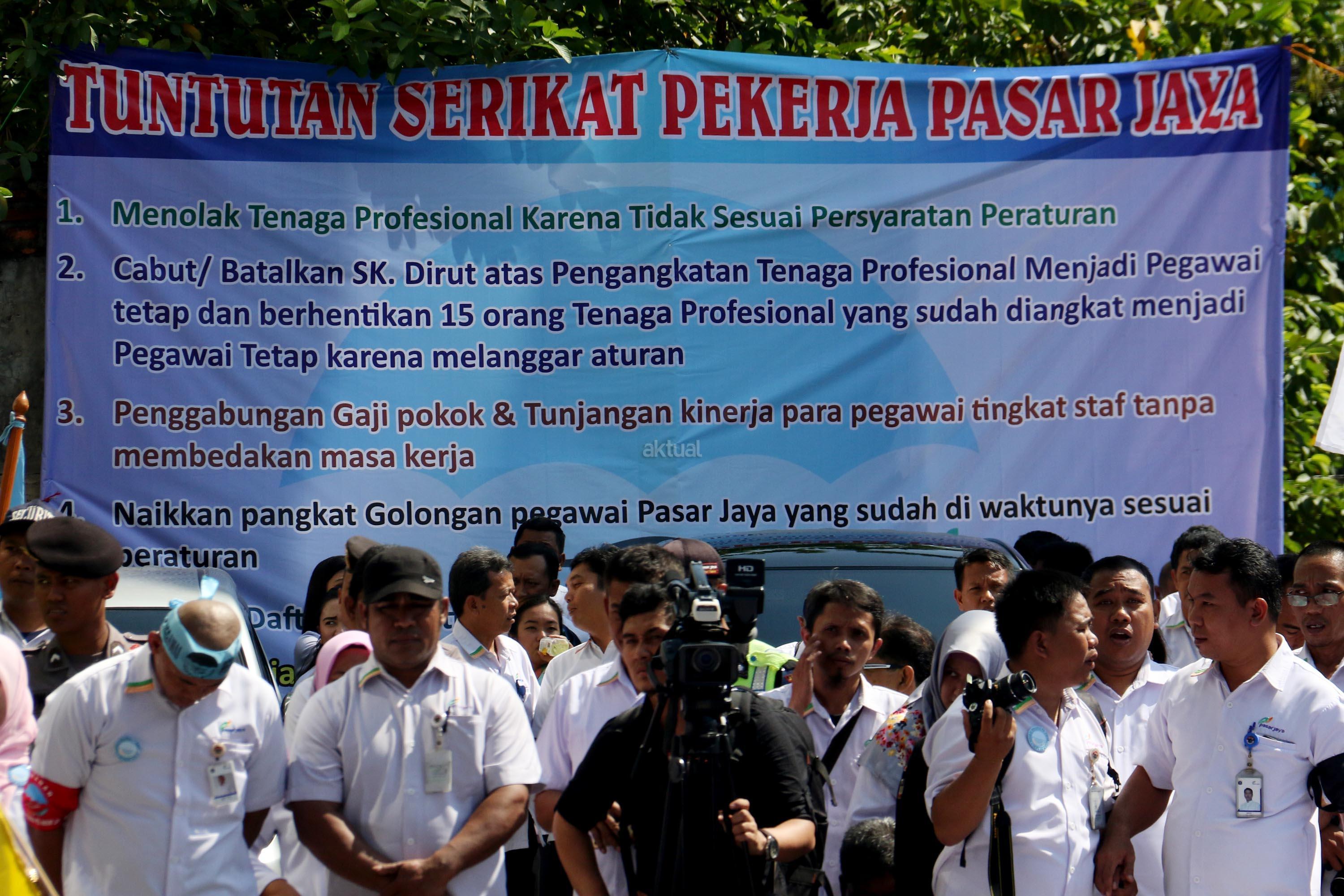 Dalam aksinya para karyawan PD Pasar Jaya menolak tenaga profesional karena tidak sesuai dengan peraturan dan mendesak kepada Dirut PD Pasar Jaya agar mencabut dan batalkan SK Dirut atas pengakatan tenaga profesional menjadi pegawai tetap dan berhentikan 15 orang tenaga profesional yang sudah di angkat menjadi pegawai tetap karena melanggar aturan. AKTUAL/Munzir