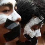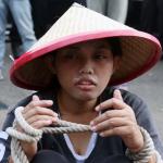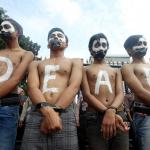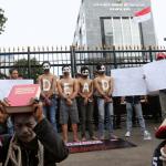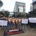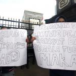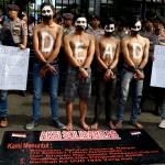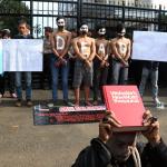 Sejumlah aktivis yang tergabung dalam Aksi Solidaritas Penyelamat Demokrasi (ASPD) melakukan aksi teatrikal didepan gedung Polda Metro Jaya, Jakarta, Jumat (9/12/2016). Dalam aksinya mereka menuntut agar kepolisian membebaskan semua aktivis pejuang rakyat yang di penjara dari segela tuduhan serta menuntut untuk menangkap dan memenjarakan tersangka penista agama.