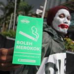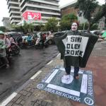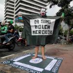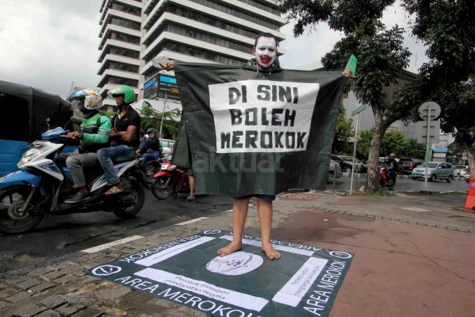 Anggota Komunitas Kretek melakukan aksi teatrikal di kawasan Sarinah, Jakarta, Selasa (30/1). Aksi teatrikal itu untuk menuntut pemerintah dan pihak swasta supaya menyediakan ruang merokok di kawasan tanpa rokok. AKTUAL/Tino Oktaviano