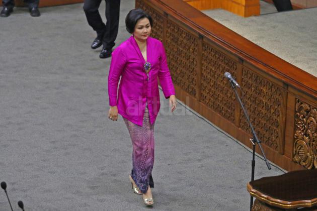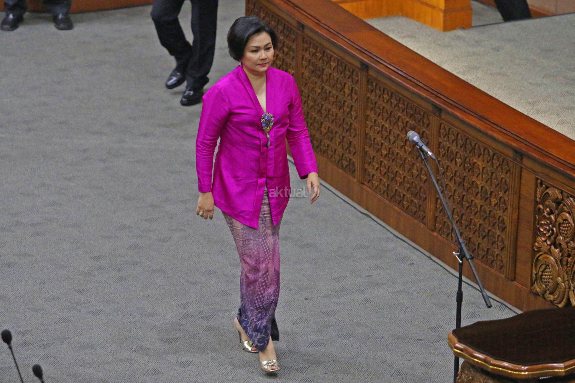 Anggota PAW Alfia Reziani berjalan menuju ruang sidang sebelum dilantik pada penutupan sidang Paripurna ke-22 masa sidang III Tahun 2015-2016 di Komplek Parlemen Senayan, Jakarta, Kamis (17/3). Penutupan Masa Persidangan III Tahun Sidang 2015-2016. Didahului dengan Pelantikan Anggota Pengganti Antar Waktu DPR RI Alfia Reziani menggantikan Politikus PDI Perjuangan Puan Maharani yang saat ini menjabat sebagai Menko Pembangunan Manusia dan Kebudayaan. FOTO: AKTUAL/JUNAIDI MAHBUB