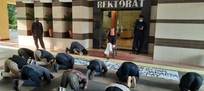 “Adapun aksi simbolik ketika kami memohon, duduk bersimpuh dan besujud kepada rektor menandakan bahwa rektor memang sangat patut disembah, apa yang ia katakan harus dikerjakan, dan yang menentang harus ditendang, begitu kira-kira.” kata Tubagus Agnia selaku koordinator Aliansi Mahasiswa.