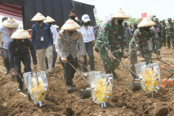 Altar 89 dipimpin Kabaharkam Polri Komjen Agus Andrianto melakukan kegiatan menanam bibit jagung dan di lahan 350 hektare Desa Manyingsal, Subang, Jawa Barat, Kamis (3/9).
