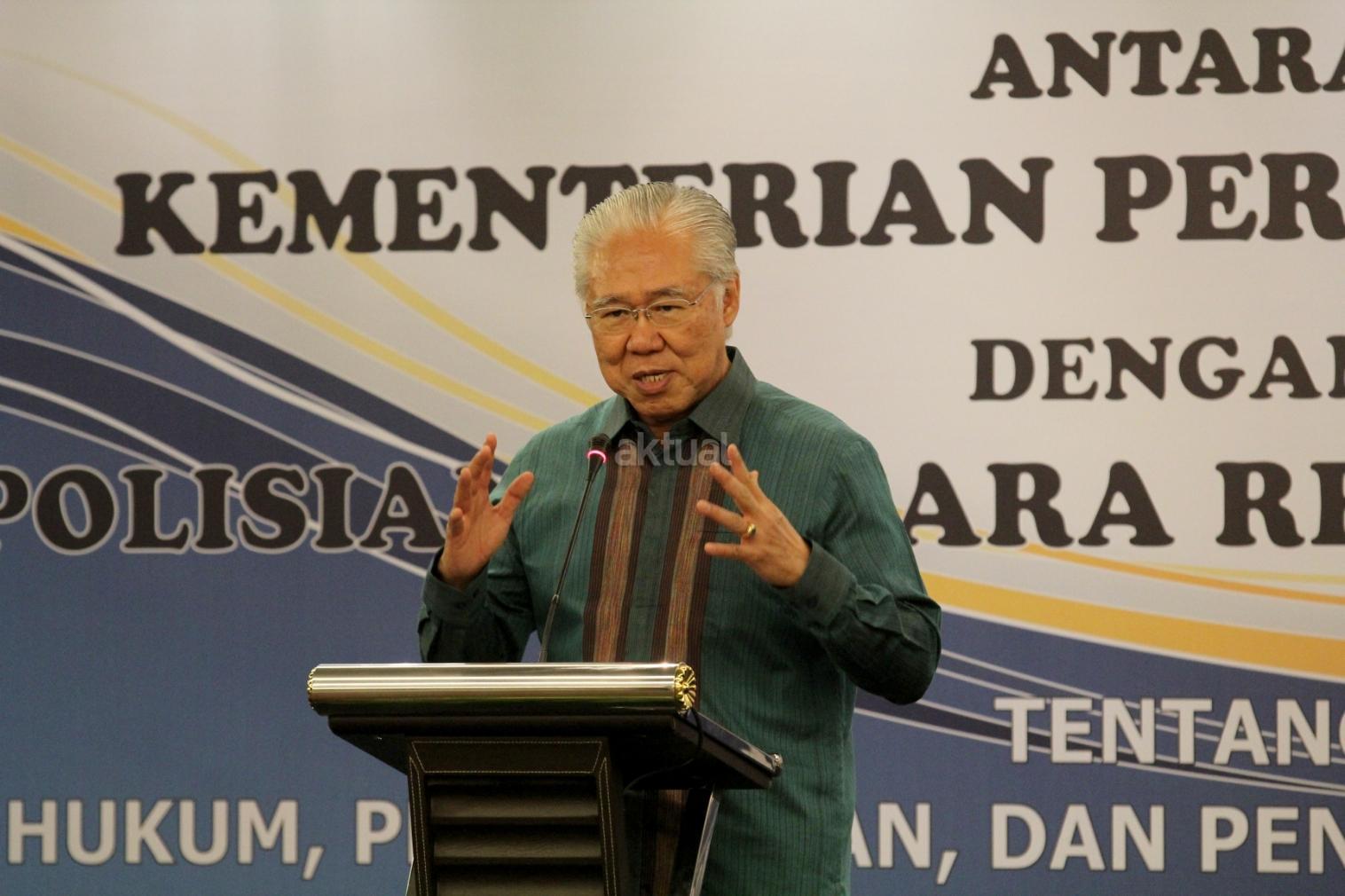 Menteri Perdagangan (Mendag) Enggartiasto Lukita memberikan sambutan saat acara penandatanganan nota kesepahaman (MoU) tentang penegakan hukum, pengawasan, dan pengamanan di bidang perdagangan di Jakarta. Senin (8/1/2018). MoU ini merupakan perpanjangan dari perjanjian sebelumnya yang ditandatangani pada 4 Januari 2013 dan telah berakhir pada 4 Januari 2018. Dengan demikian maka untuk terus bisa melindungi konsumen dalam kegiatan perdagangan, MoU tersebut diperpanjang. AKTUAL/Tino Oktaviano