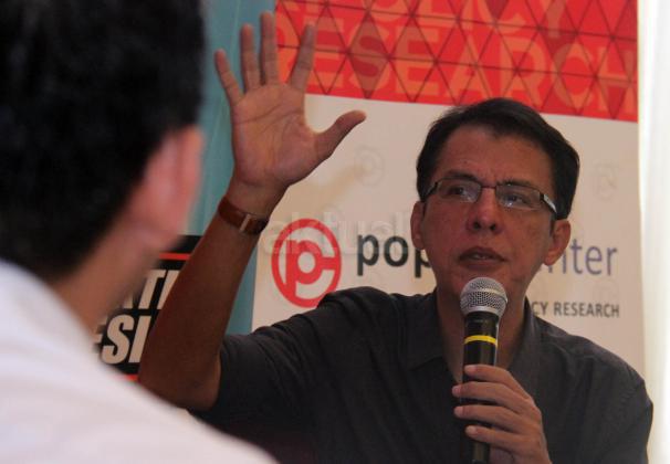 Komisaris Utama Balai Pustaka, Hamid Basyaib berbicara dalam cara diskusi di Jakata, Sabtu (26/3/2016). diskusi ini membahas tema "Amuk Taksi, Ekonomi Kreatif, dan Revolusi Digital". FOTO: AKTUAL/JUNAIDI MAHBUB