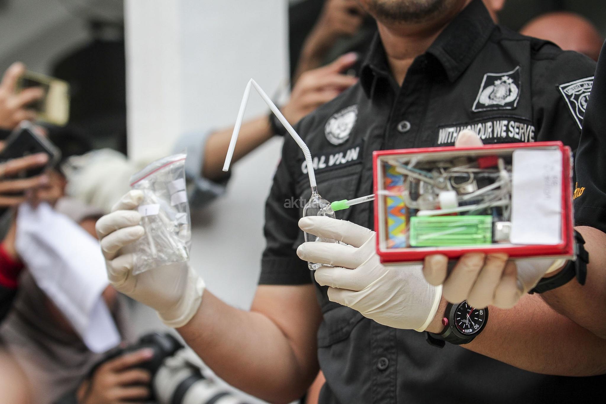 Alat bukti berupa bong dan sabu sabh yang diamankan Polda Metro Jaya dari rumah keluarga Elvi Sukaesih. AKTUAL/Tino Oktaviano