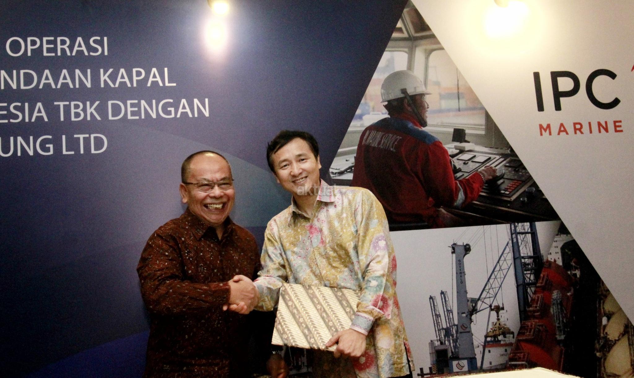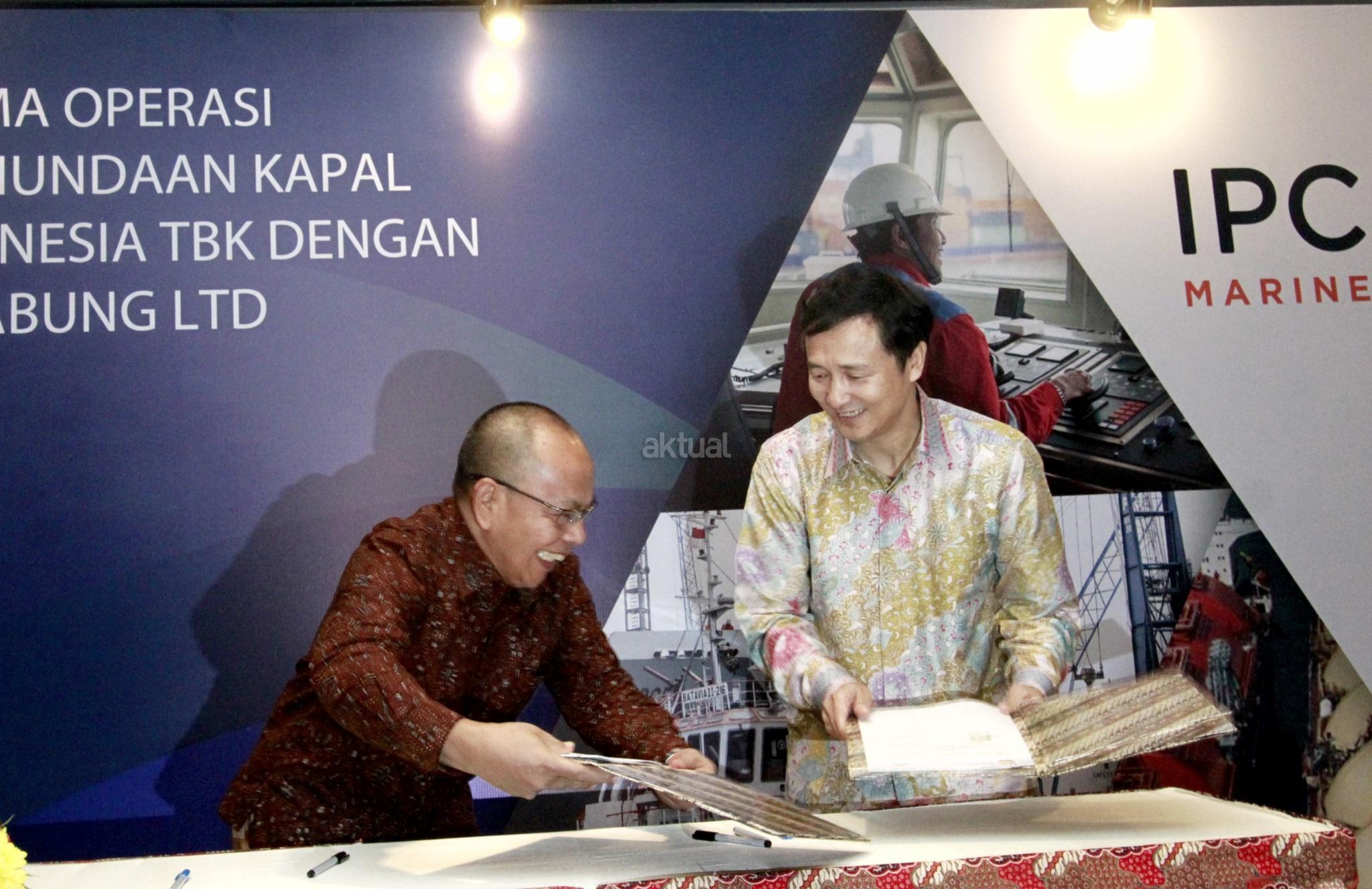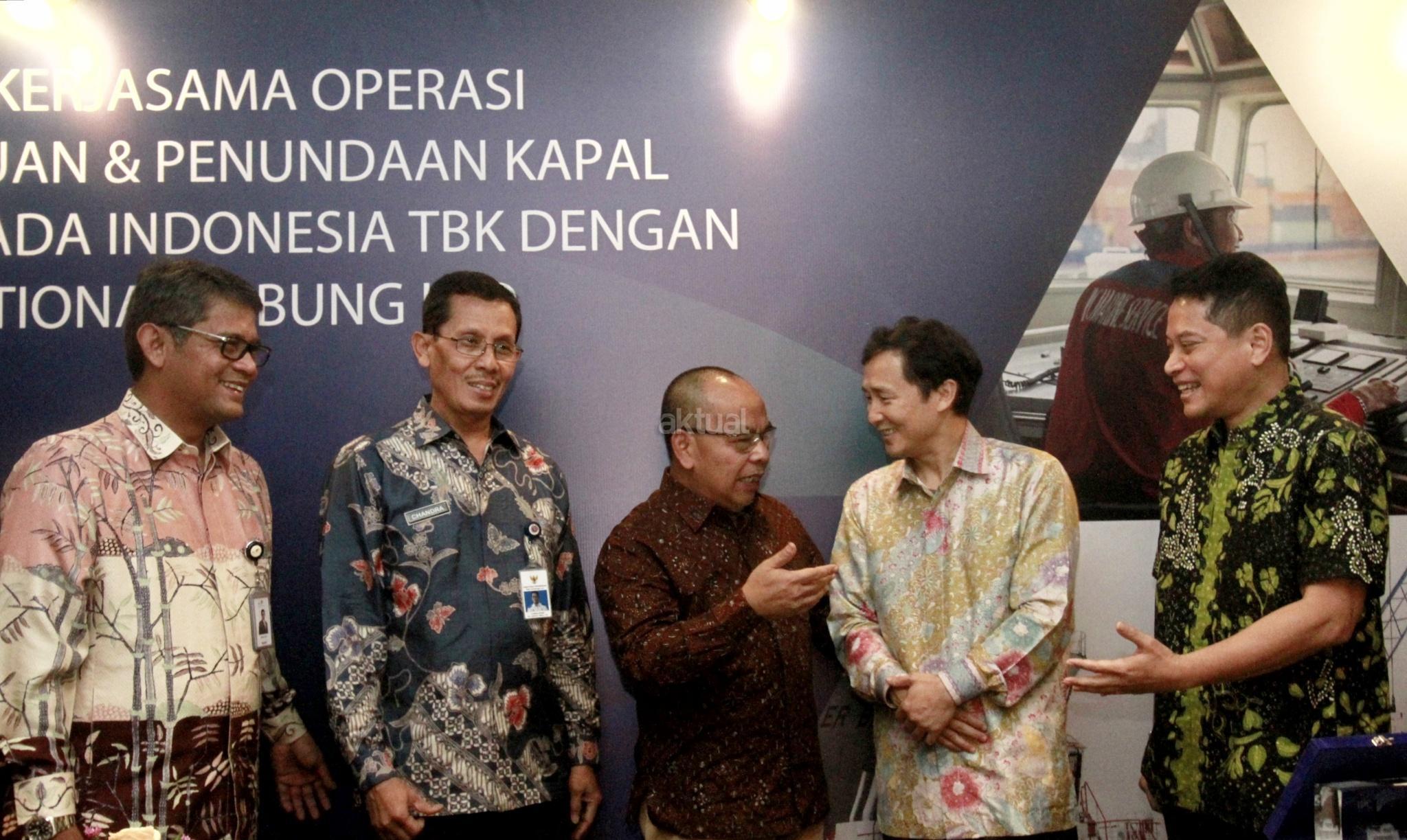 Direktur Utama PT Jasa Armada Indonesia Tbk Dawam Atmosudiro (tengah) bersama General Manager PetroChina International Jabung Ltd Yu Guoyi (kedua kanan), Direktur pengelolaan anak perusahaan PT Pelabuhan Indonesia II (Persero) Riry Syeried Jetta (kiri), Direktur Kepelabuhan Kemenhub Chandra Irawan (kedua kiri) dan Kadiv Penunjang Operasi dan Keselamatan Migas SKK Migas Bagus B Edvantoro menunjukan nota kesepahaman usai penandatanganan kerja sama antara Jasa Armada Indonesia dengan PetroChina International Jabung di Jakarta, Jumat (19/1). PT Jasa Armada Indonesia Tbk (JAI) melakukan kerja sama dengan PetroChina International Jabung Ltd dalam operasi pelayanan pemanduan dan penundaan kapal di wilayah perairan Pandu Luar Biasa TUKS PetroChina Marine Terminal, Tanjung Jabung, Jambi. AKTUAL/Eko S Hilman