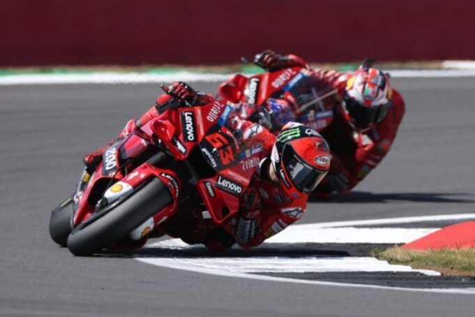 Pebalap Ducati Francesco Bagnaia menjalani Grand Prix Inggris, Sirkuit Silverstone. (7/8/2022) (ANTARA/REUTERS/PAUL CHILDS)