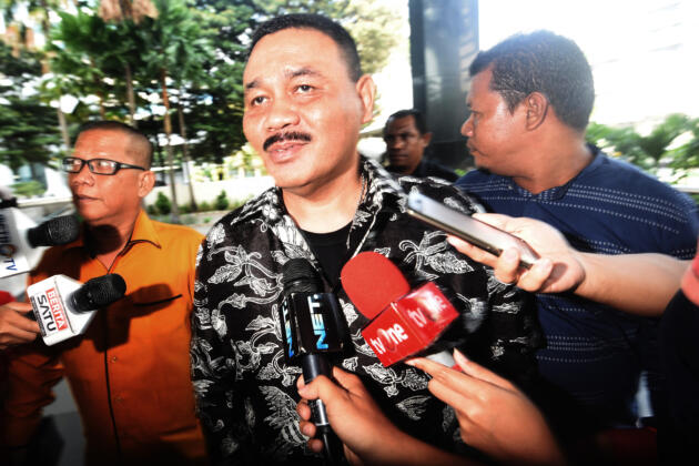 Anggota DPRD DKI Jakarta Mohamad Sangaji alias Ongen menunggu sebelum menjalani pemeriksaan di Gedung KPK, Jakarta, Rabu (18/5). Ongen diperiksa sebagai saksi terkait kasus pembahasan raperda tentang rencana zonasi wilayah pesisir dan pulau-pulau kecil provinsi DKI Jakarta tahun 2015-2035 dan raperda tentang rencana tata ruang kawasan strategis Pantai Utara Jakarta. ANTARA FOTO/Akbar Nugroho Gumay/aww/16.