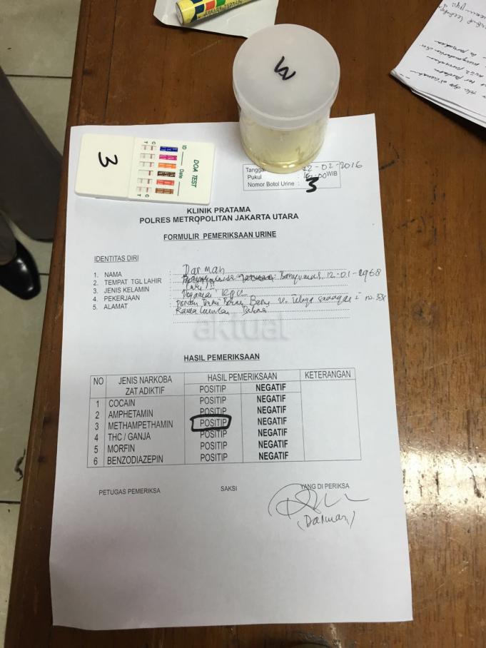 Ya, satu dari tiga orang tersebut dinyatakan positif menggunakan narkoba jenis Methametamine atau sabu. Hal ini diperoleh Aktual.com dari dokumen hasil tes urine yang dilakukan di klinik pratama Polres Jakarta Utara. (Baca: Tiga Anggota KPK Diamankan Polres Jakut, Ini Identitasnya).