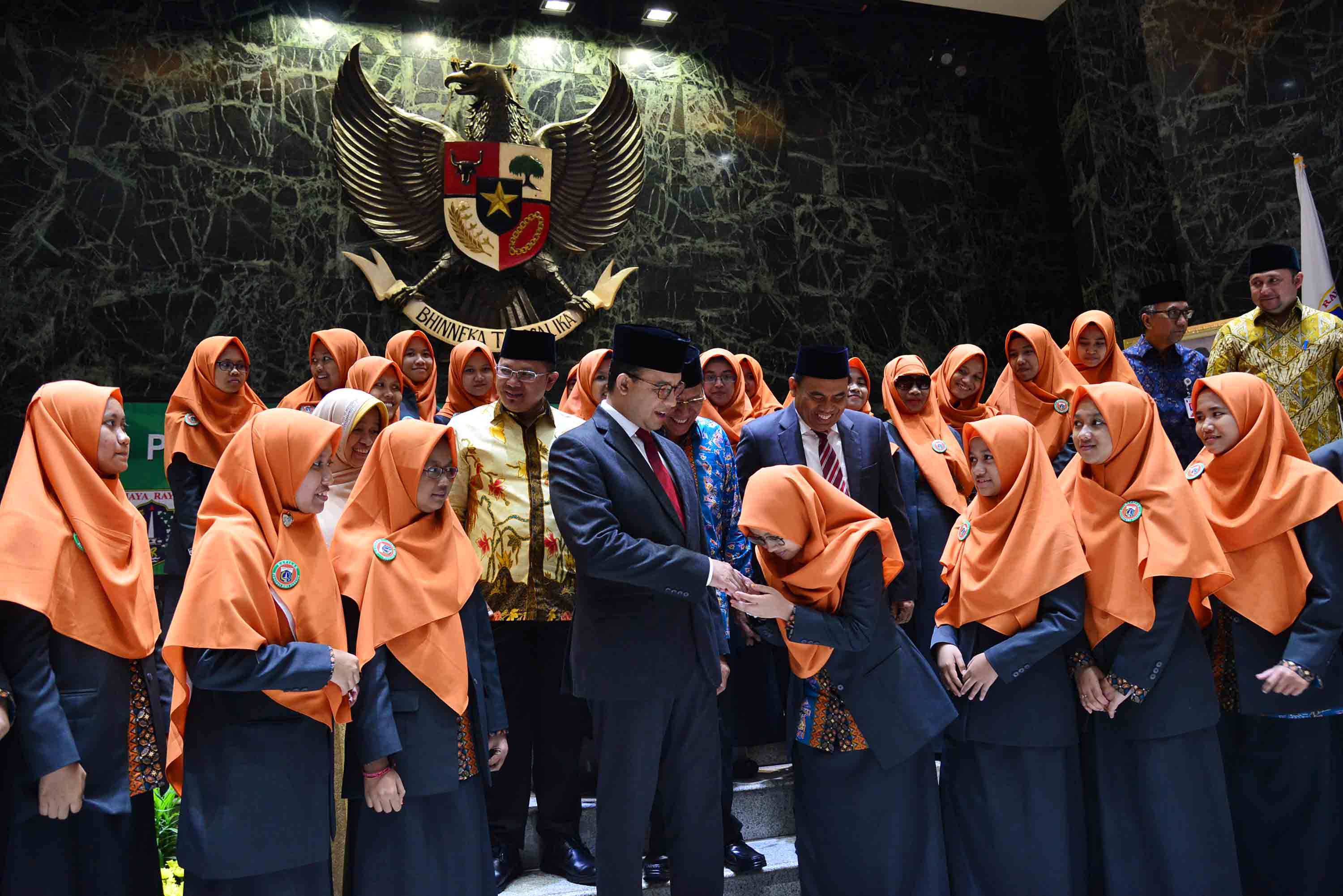 Gubernur DKI Jakarta Anies Baswedan saat melepas Kafilah Provinsi DKI Jakarta untuk mengikuti Musabaqah Tilawatil Qur’an Tingkat Nasional XXVII di Balai Agung, Jakarta, Kamis (4/10). Anies berharap Kafilah Provinsi DKI Jakarta dapat meraih juara umum pada Musabaqah Tilawatil Quran (MTQ) tingkat Nasional XXVII yang akan digelar di Kota Medan dan Deli Serdang, Provinsi Sumatera Utara pada tanggal 4 hingga 13 Oktober 2018 mendatang. AKTUAL/Tino Oktaviano