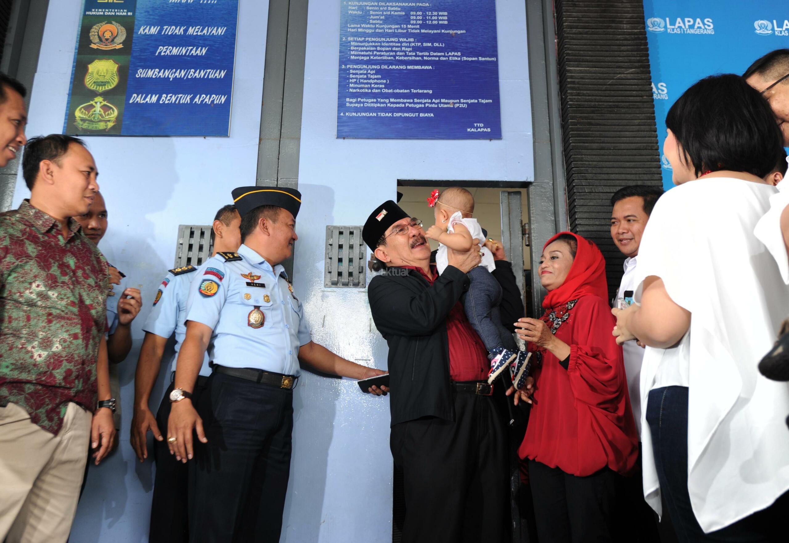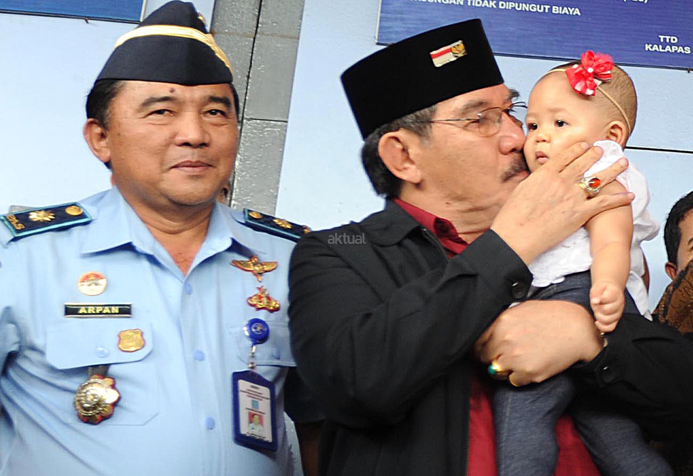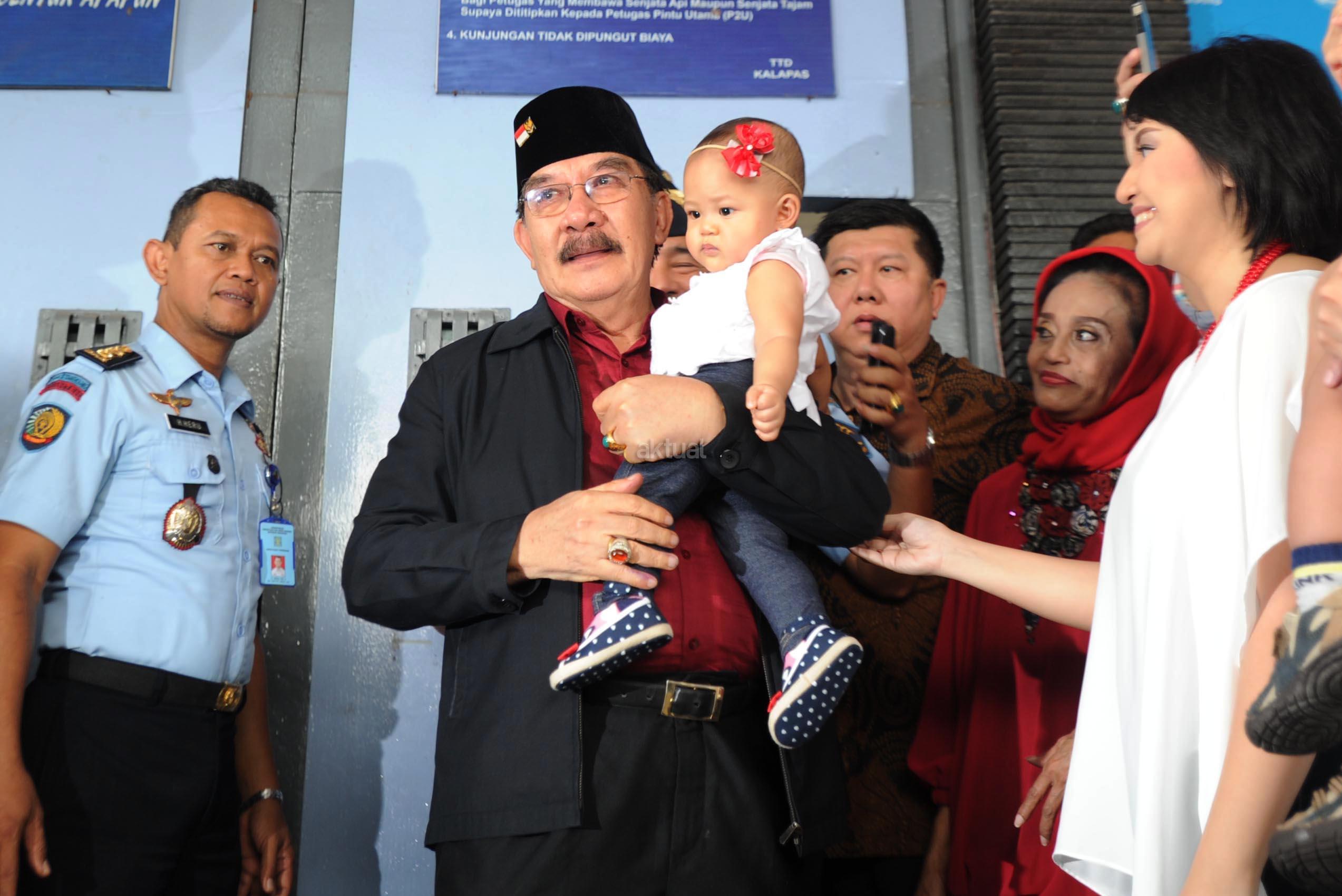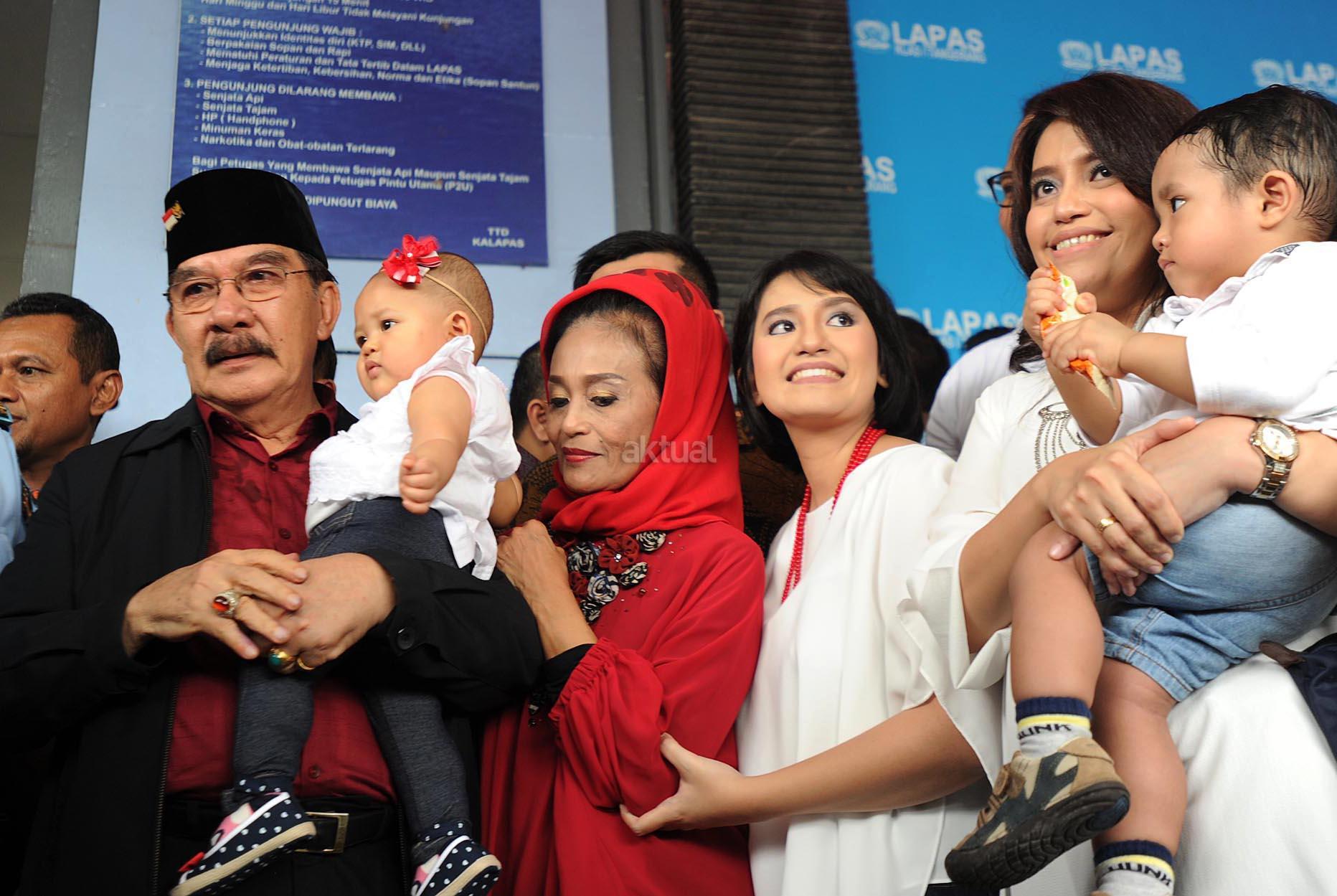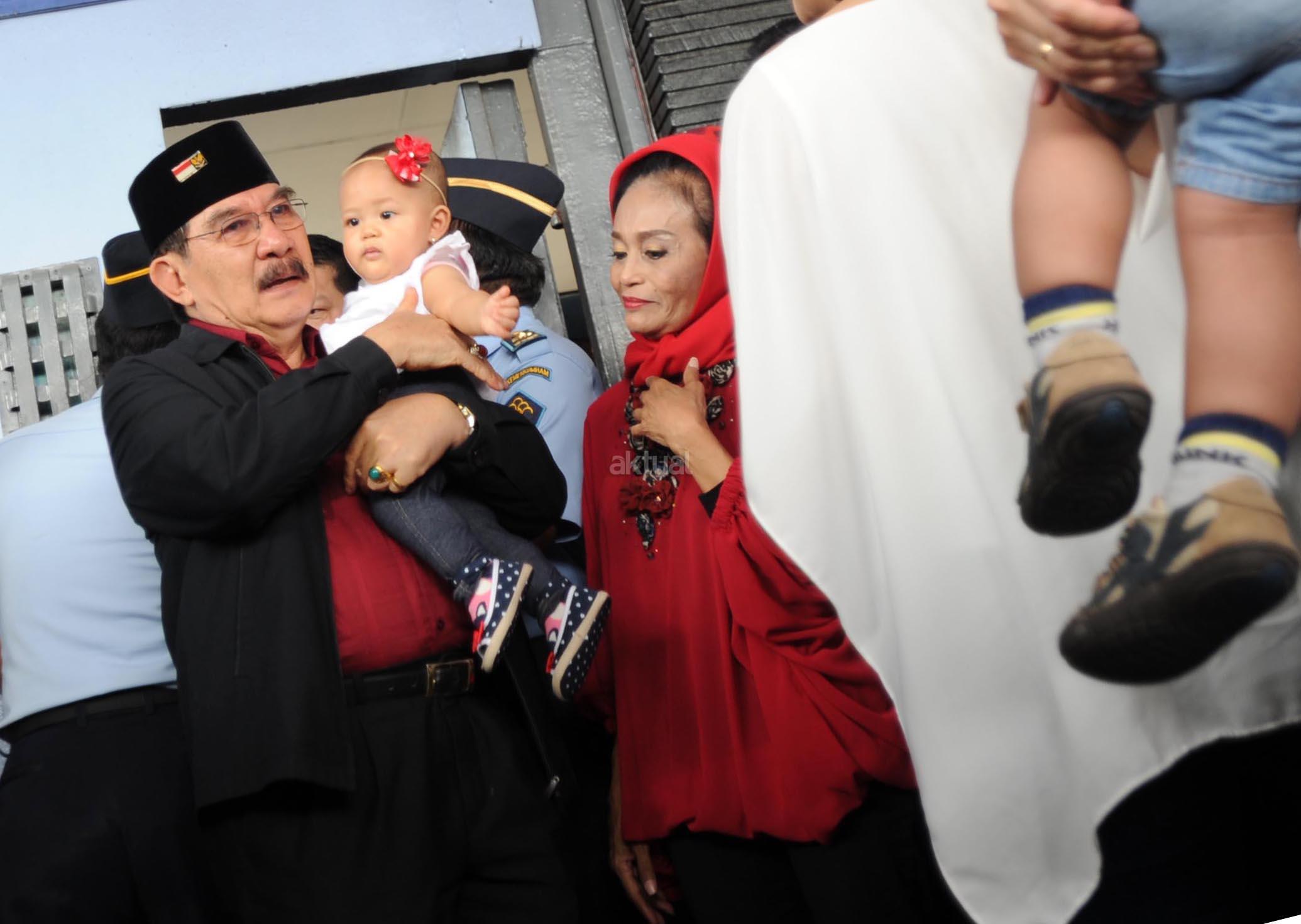 Terpidana kasus pembunuhan, Antasari Azhar disambut Istri, Anak dan Cucu begitu keluar dari Lapas Kelas 1 Tangerang, Banten (10/11). Pada tahun 2009, Antasari Azhar divonis 18 tahun penjara atas pembunuhan bos PT Putra Rajawali Bantaran, Nasrudin Zulkarnain. AKTUAL/HO