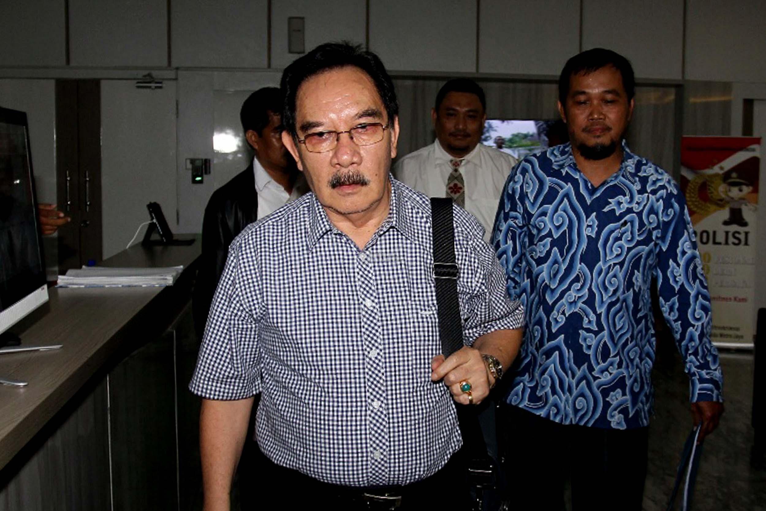 Mantan Ketua KPK Antasari Azhar meninggalkan gedung Ditreskrimsus, Polda Metro Jaya, Jakarta, Rabu (1/2/2017). Kedatangan Antasari bertujuan untuk menagih kelanjutan pengusutan kasus SMS gelap mengatasnamakan dirinya yang telah dilaporkan sejak tahun 2011.