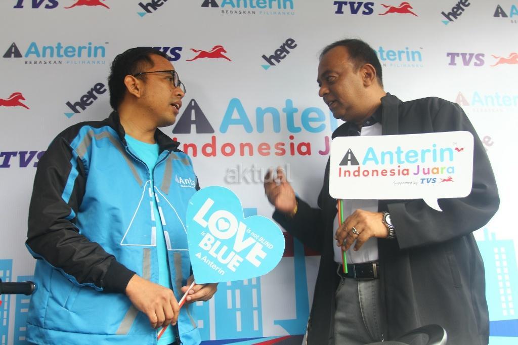 CEO anterin.id Imron Hamzah (kiri) berbincang dengan Presdir PT TVS Motor Company Indonesia V Thiyagarajan (kanan) usai penandatanganan kerjasama dan peluncuran layanan city tranporting network (Market Place) pertama kali di dunia untuk moda transportasi online di Jakarta, Kamis (16/8/2018). anterin.id merupakan aplikasi lokal untuk transportasi dan pengiriman atau pengantaran barang dengan harga yang bisa dinego. Cara ini diklaim pihaknya pertama di dunia. Melalui metode ini juga, pengguna bisa bebas memilih siapa driver yang memberikan harga terbaik dan terdekat dengan pengguna. AKTUAL/Tino Oktaviano