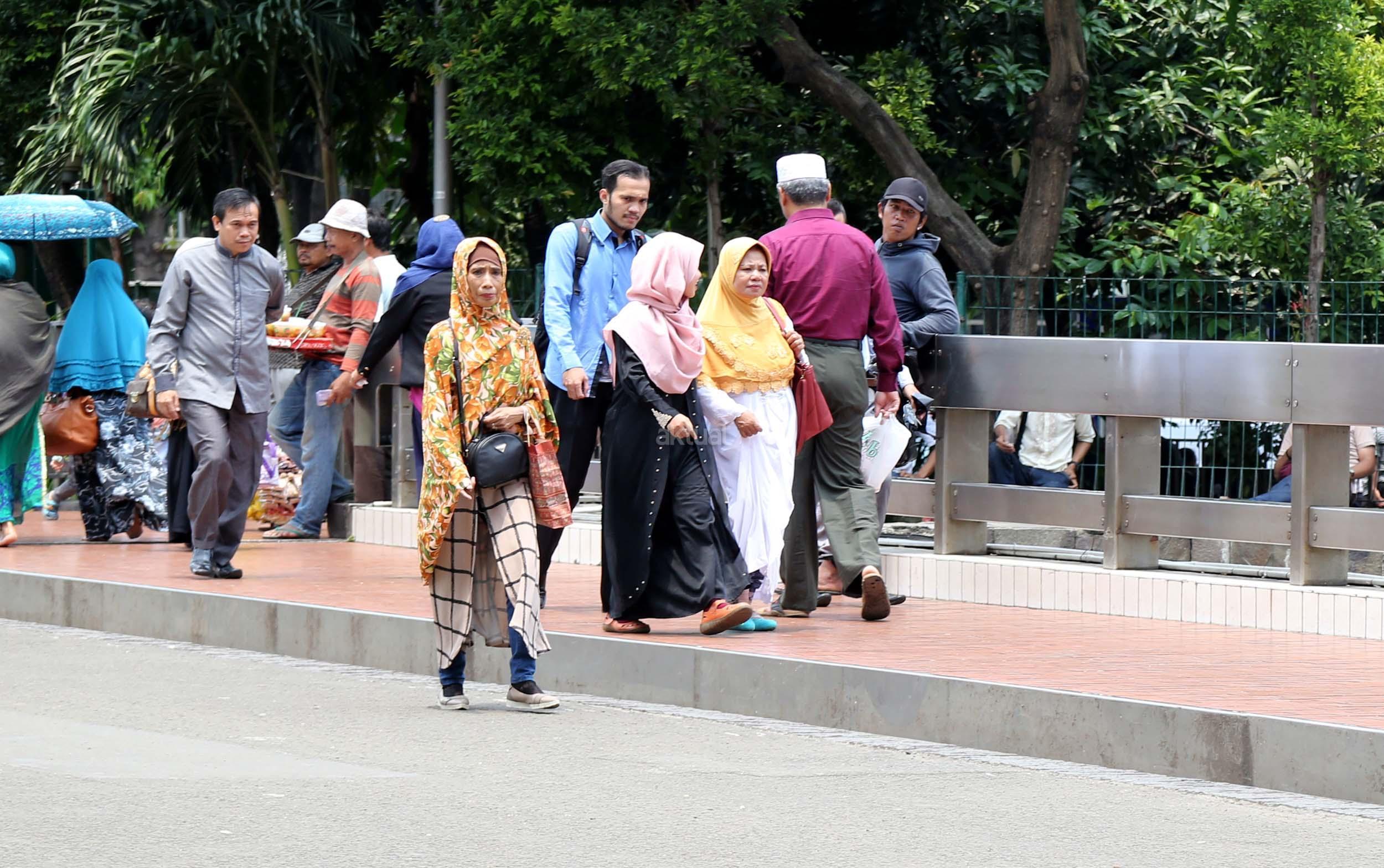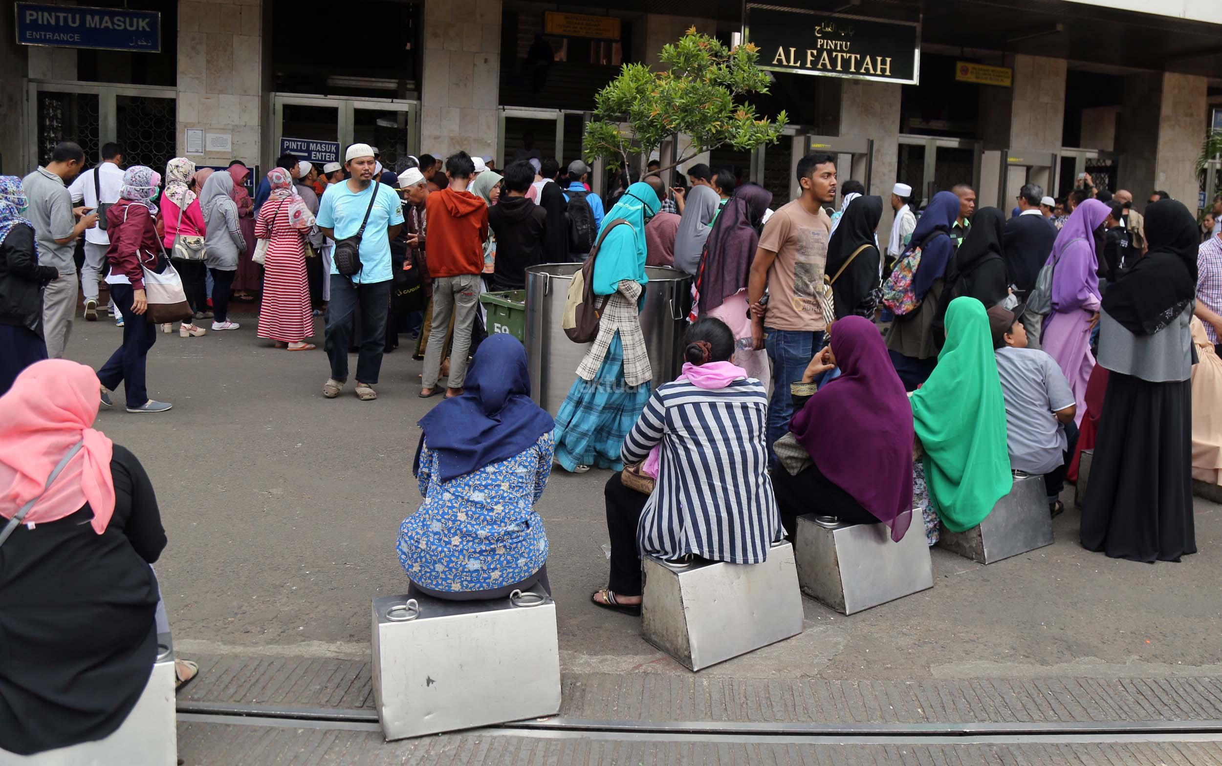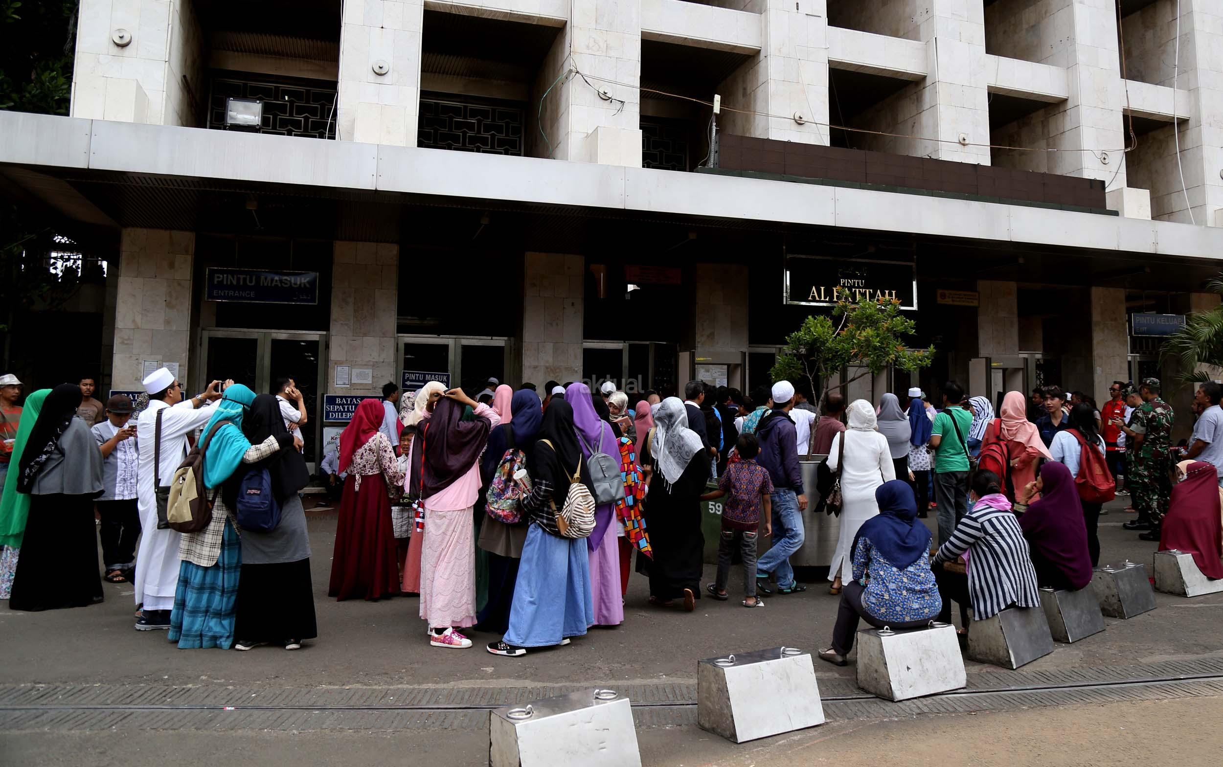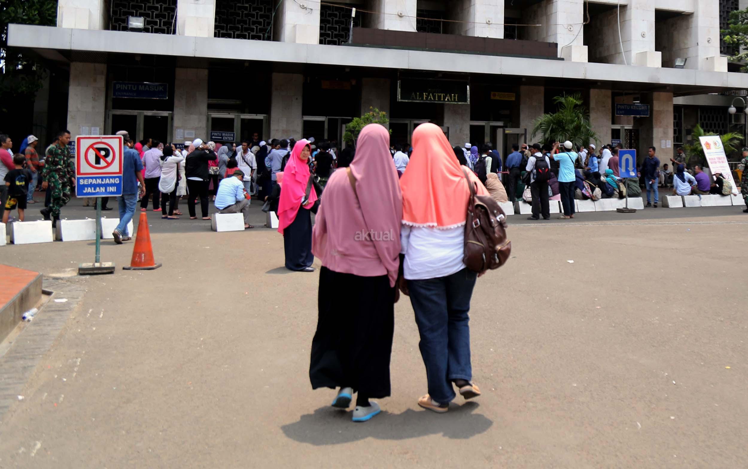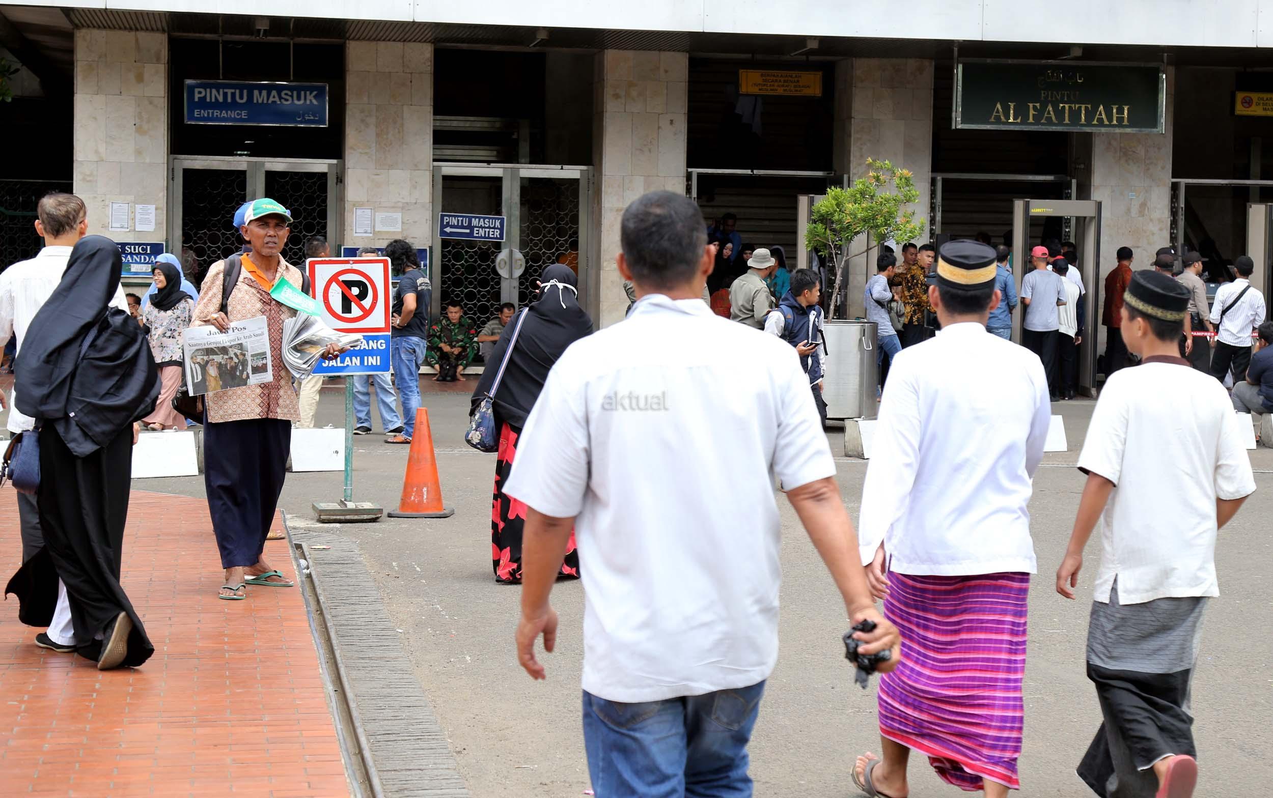 Terlihat masyarakat berdatangan ke Masjid Istiqlal, Jakarta, Kamis (2/3/2017). Kehadiran mereka ingin melihat secara langsung dari dekat Raja Salman, meski Sang Raja dan Presiden dijadwalkan tiba di Masjid Istiqlal sekitar pukul 13.45 menit.