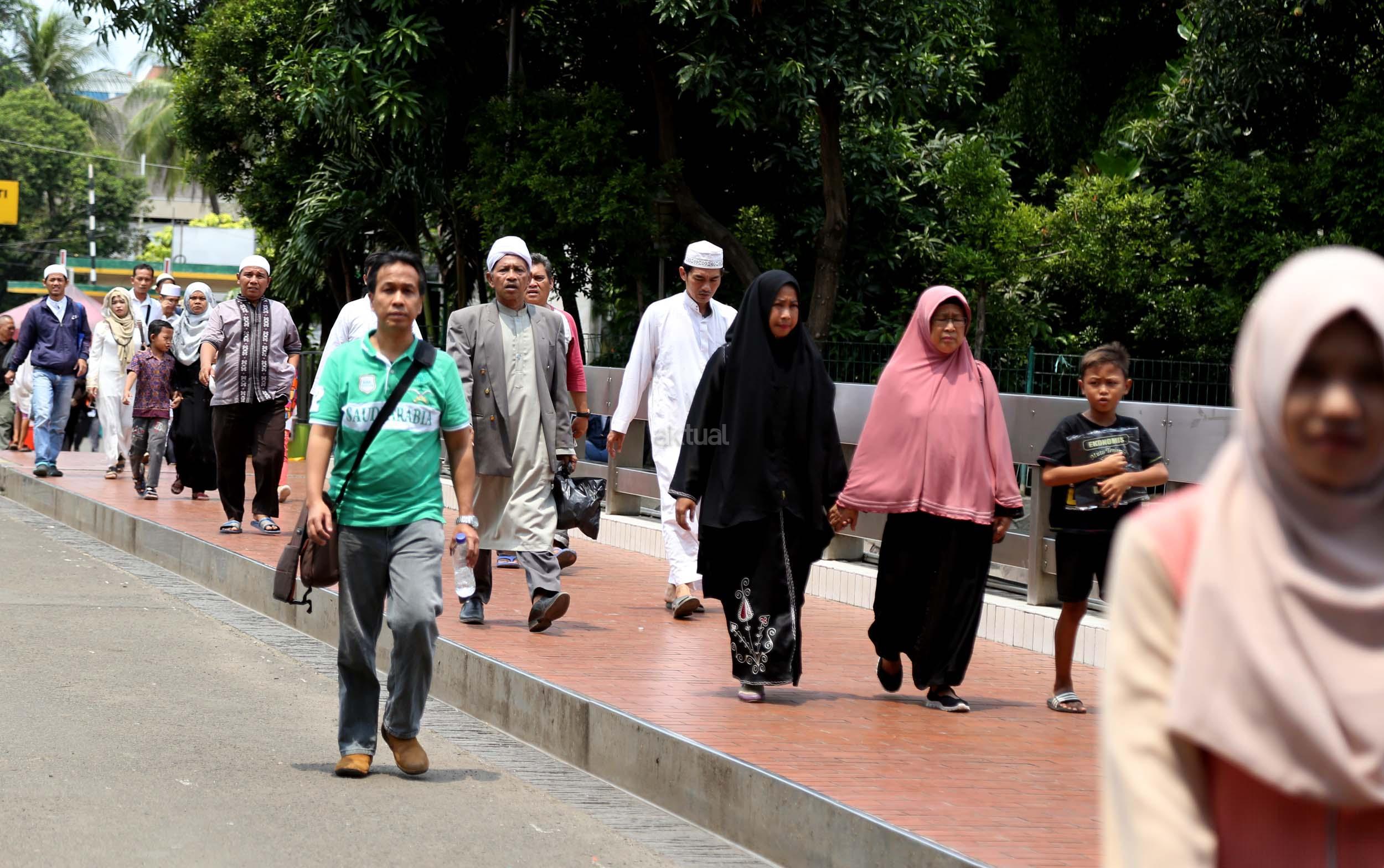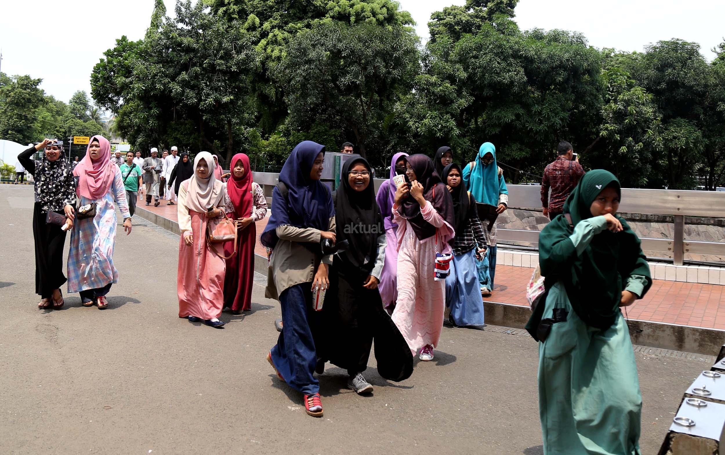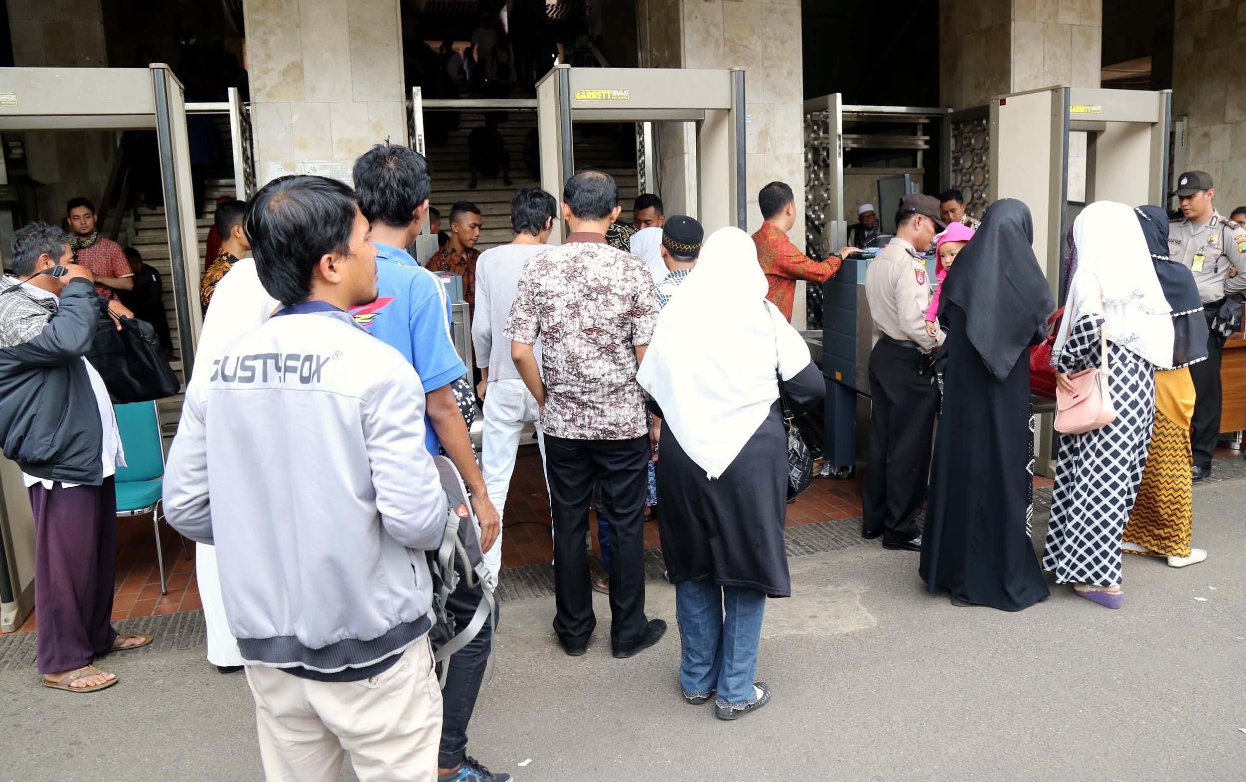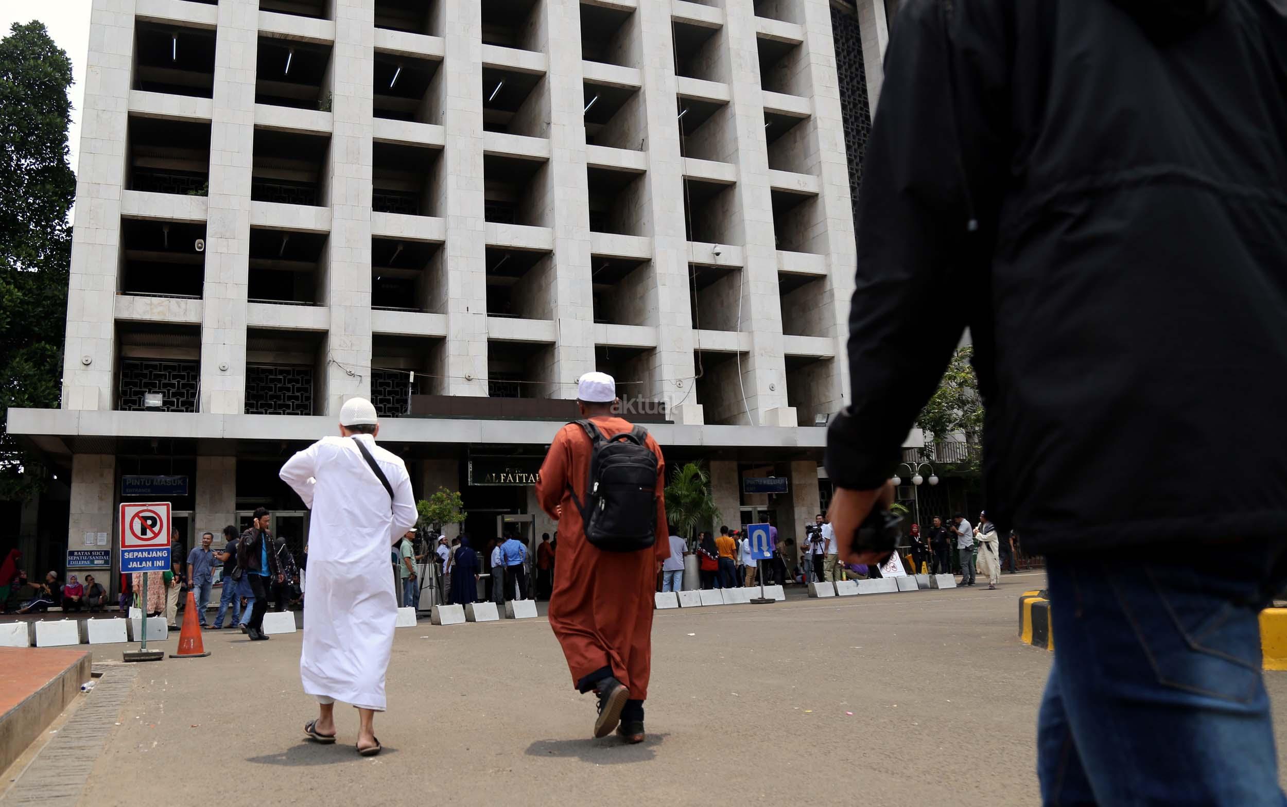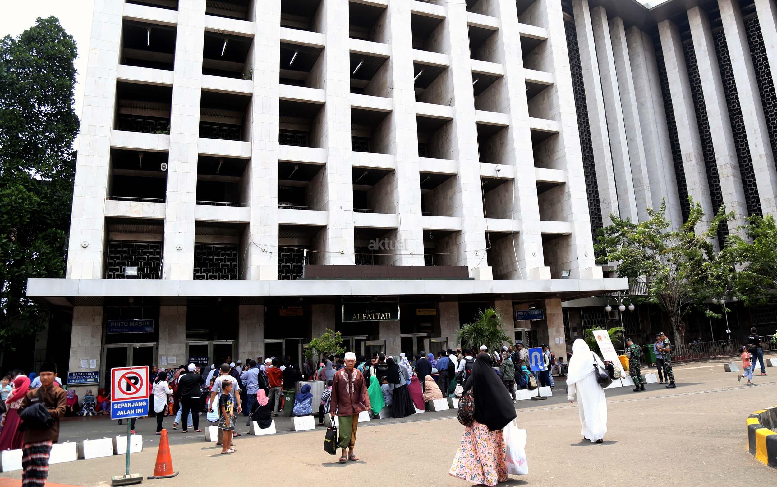 Terlihat masyarakat berdatangan ke Masjid Istiqlal, Jakarta, Kamis (2/3/2017). Kehadiran mereka ingin melihat secara langsung dari dekat Raja Salman, meski Sang Raja dan Presiden dijadwalkan tiba di Masjid Istiqlal sekitar pukul 13.45 menit.