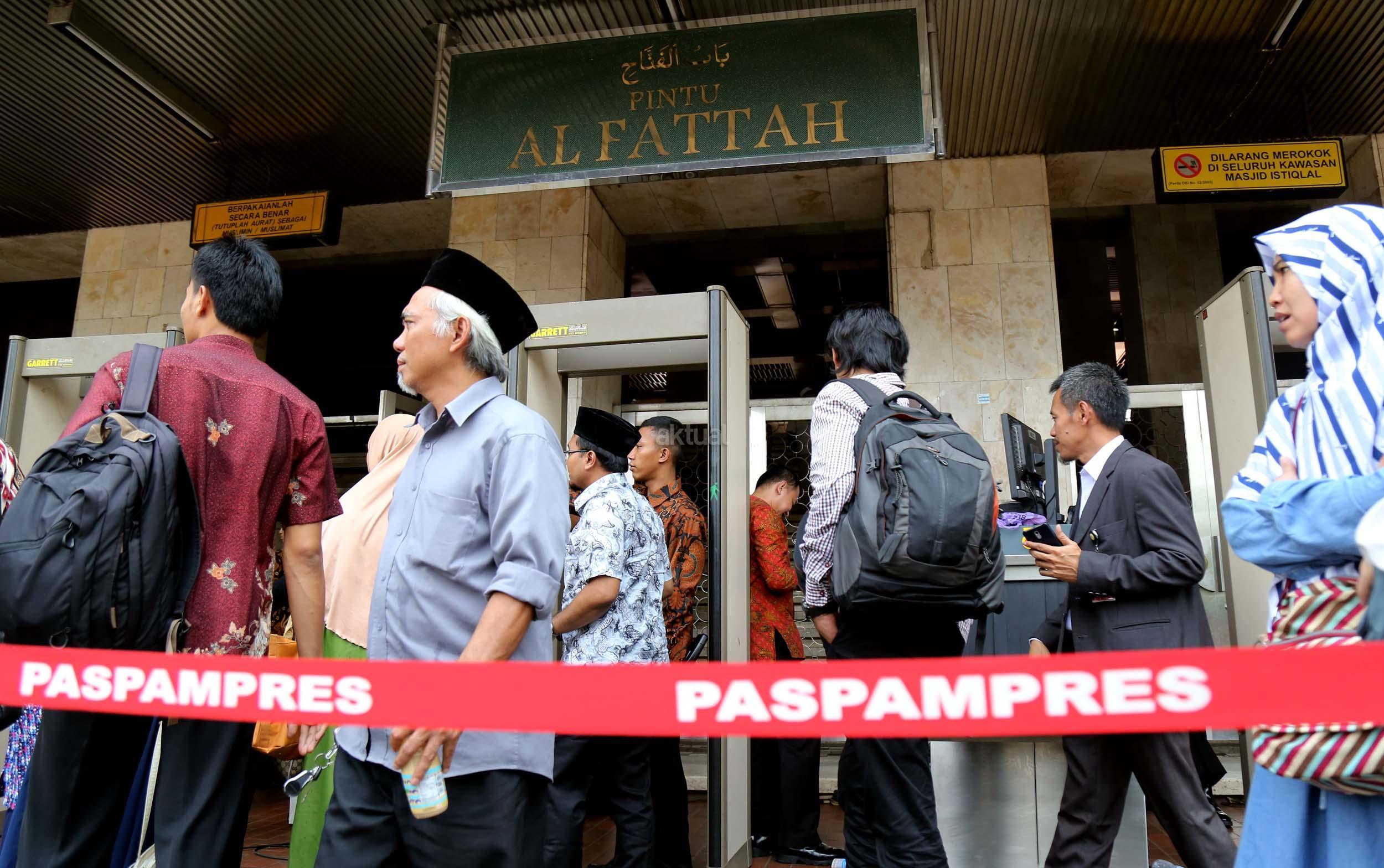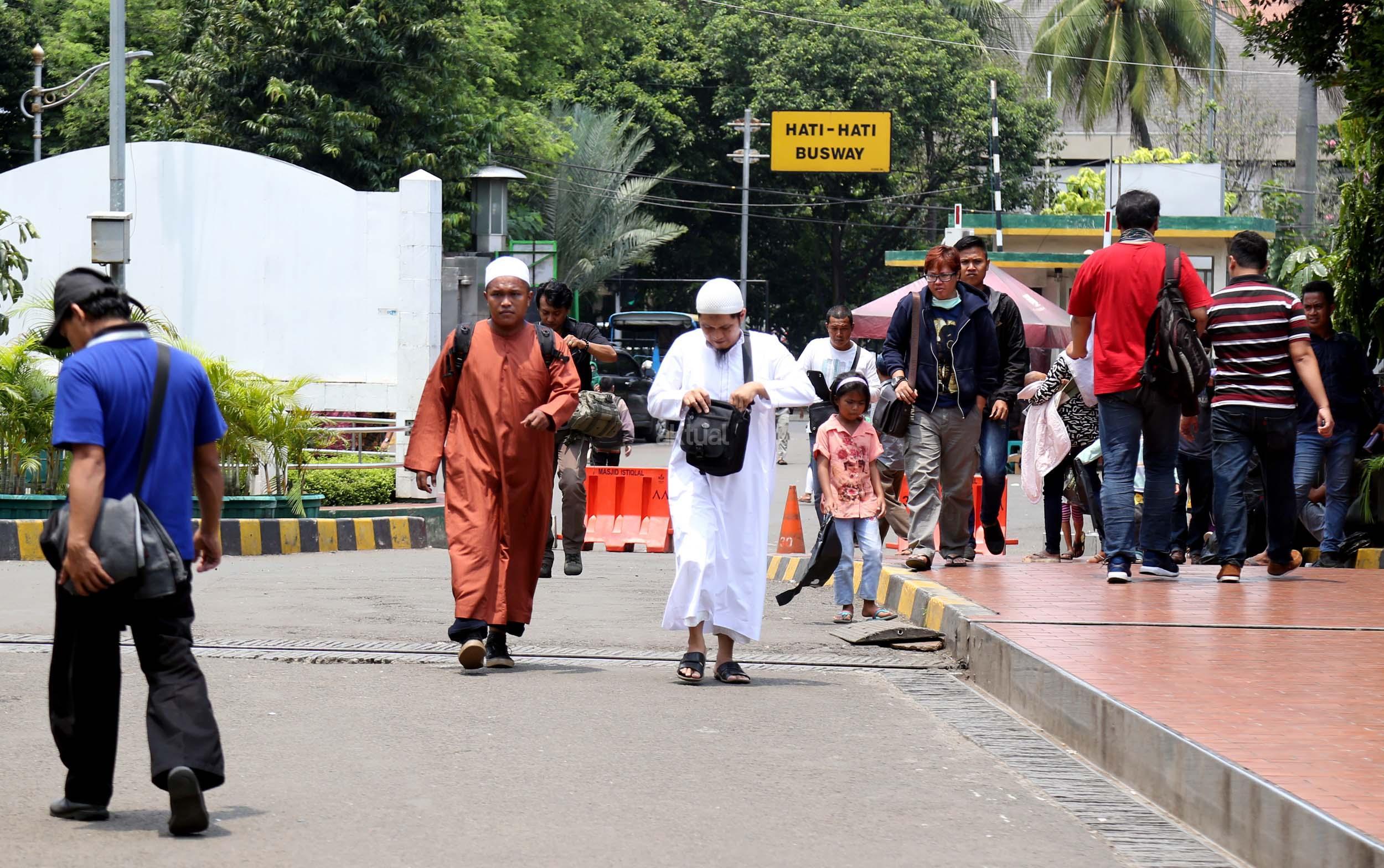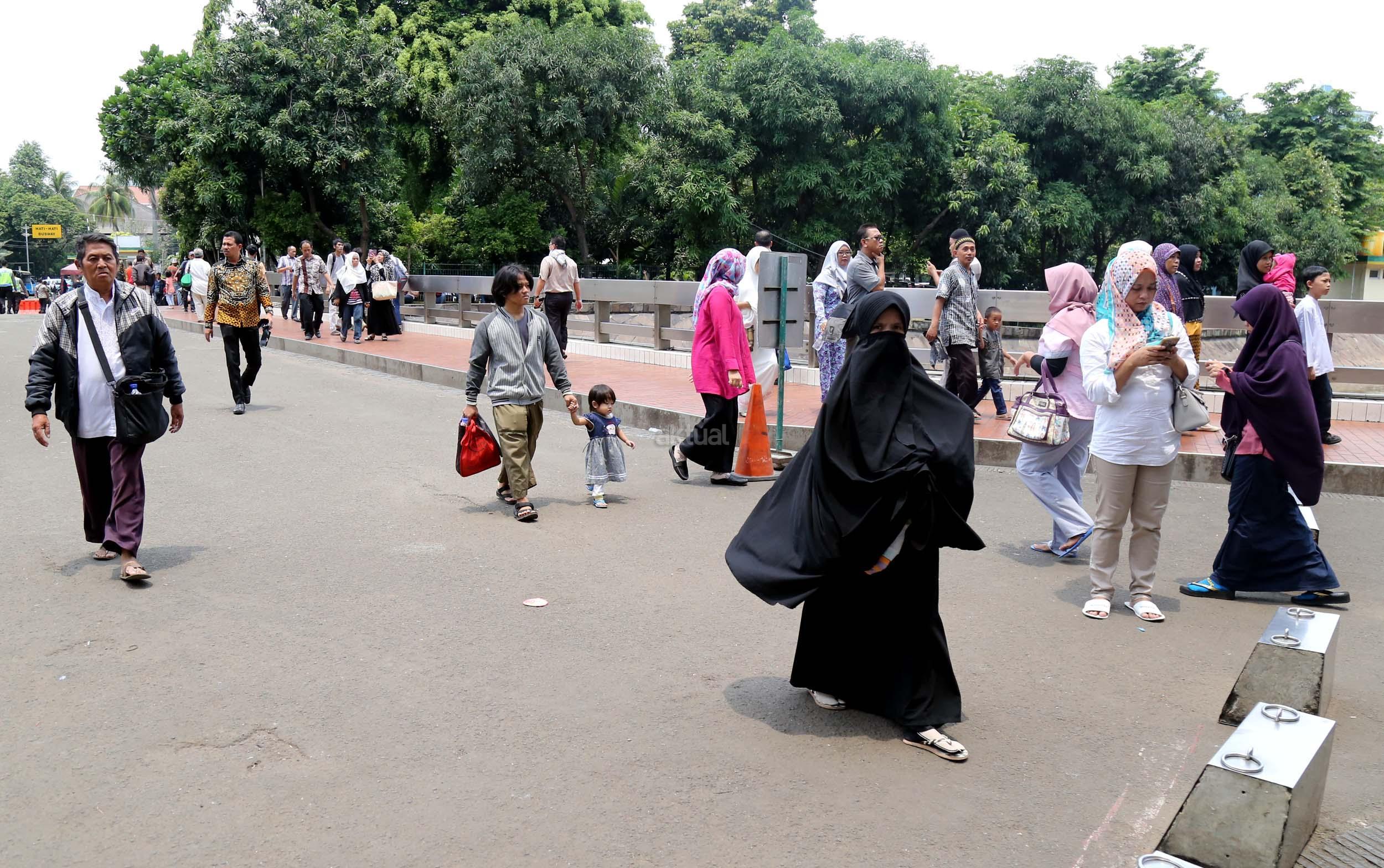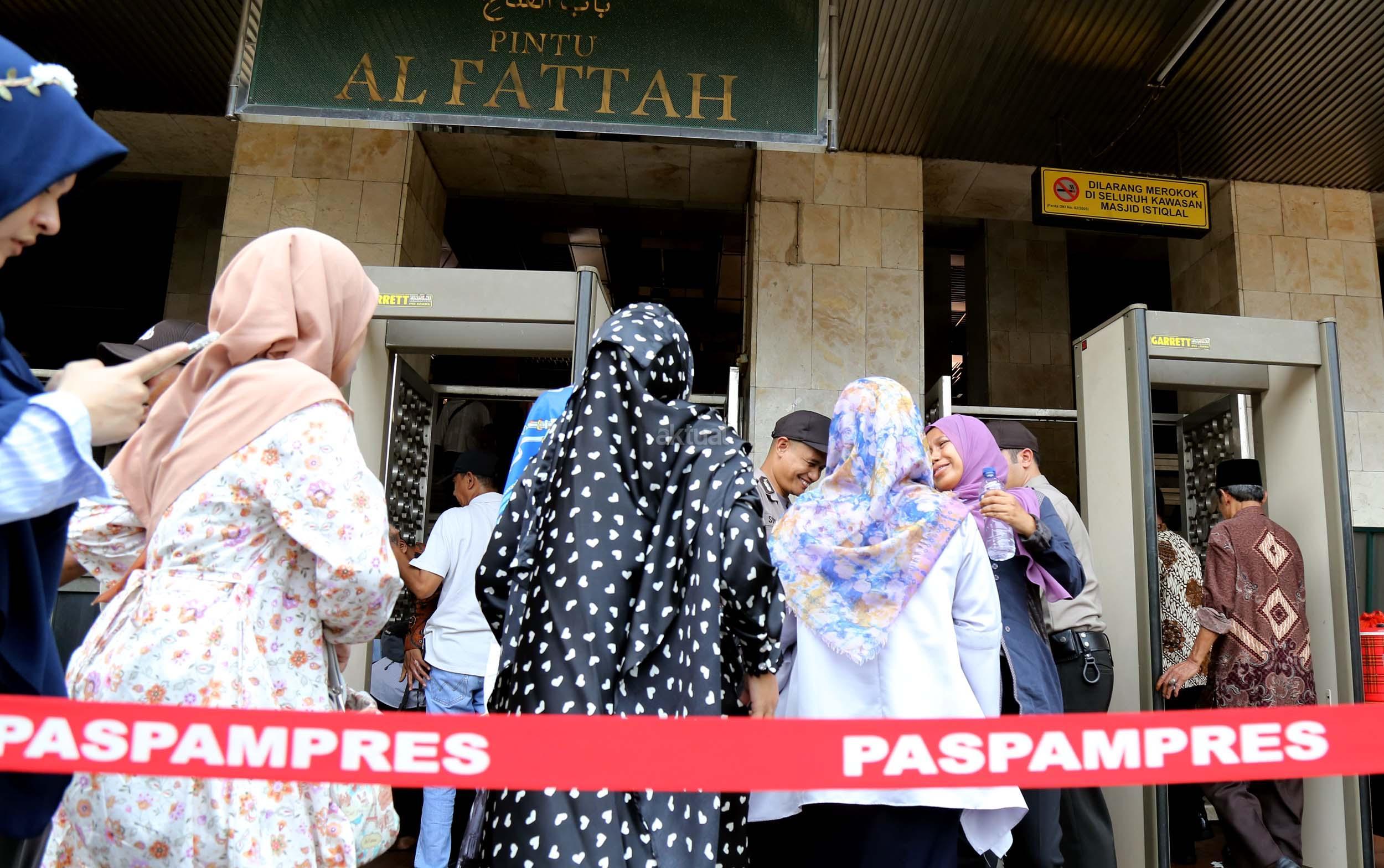 Terlihat masyarakat berdatangan ke Masjid Istiqlal, Jakarta, Kamis (2/3/2017). Kehadiran mereka ingin melihat secara langsung dari dekat Raja Salman, meski Sang Raja dan Presiden dijadwalkan tiba di Masjid Istiqlal sekitar pukul 13.45 menit.