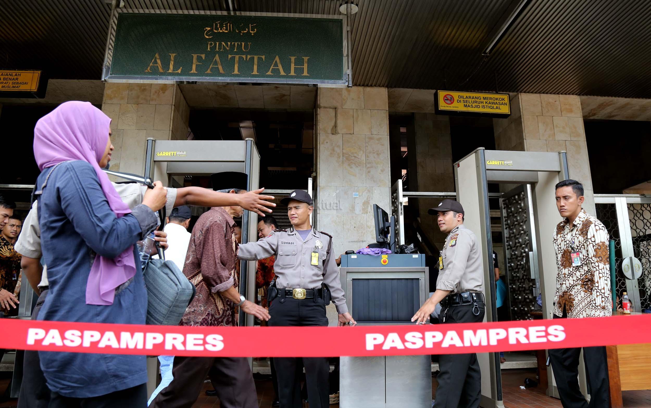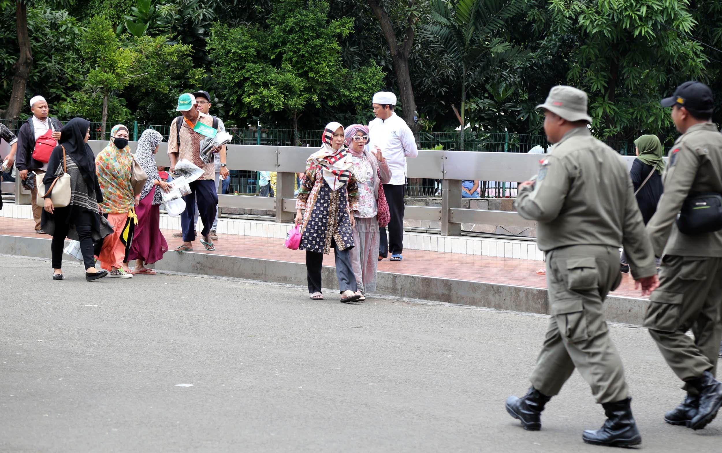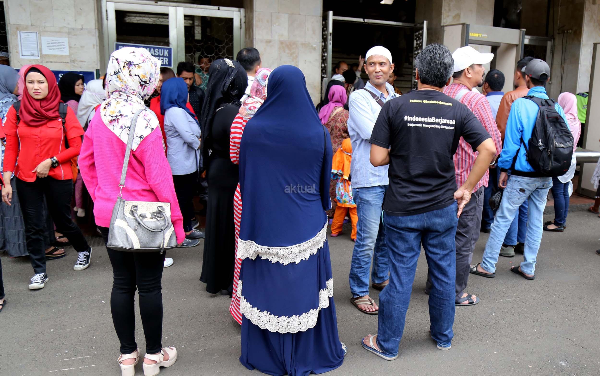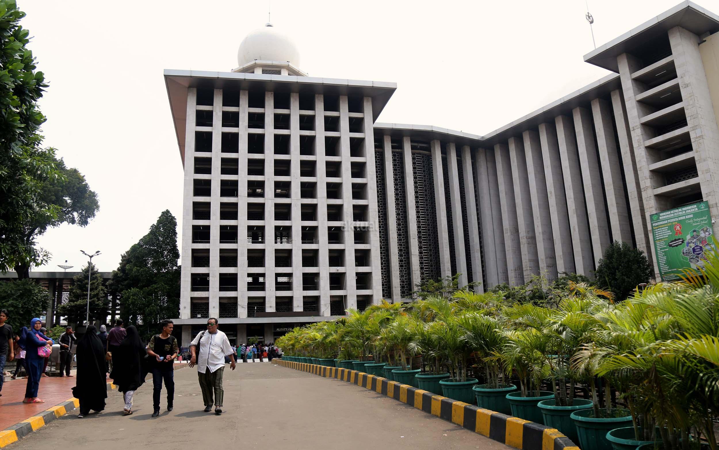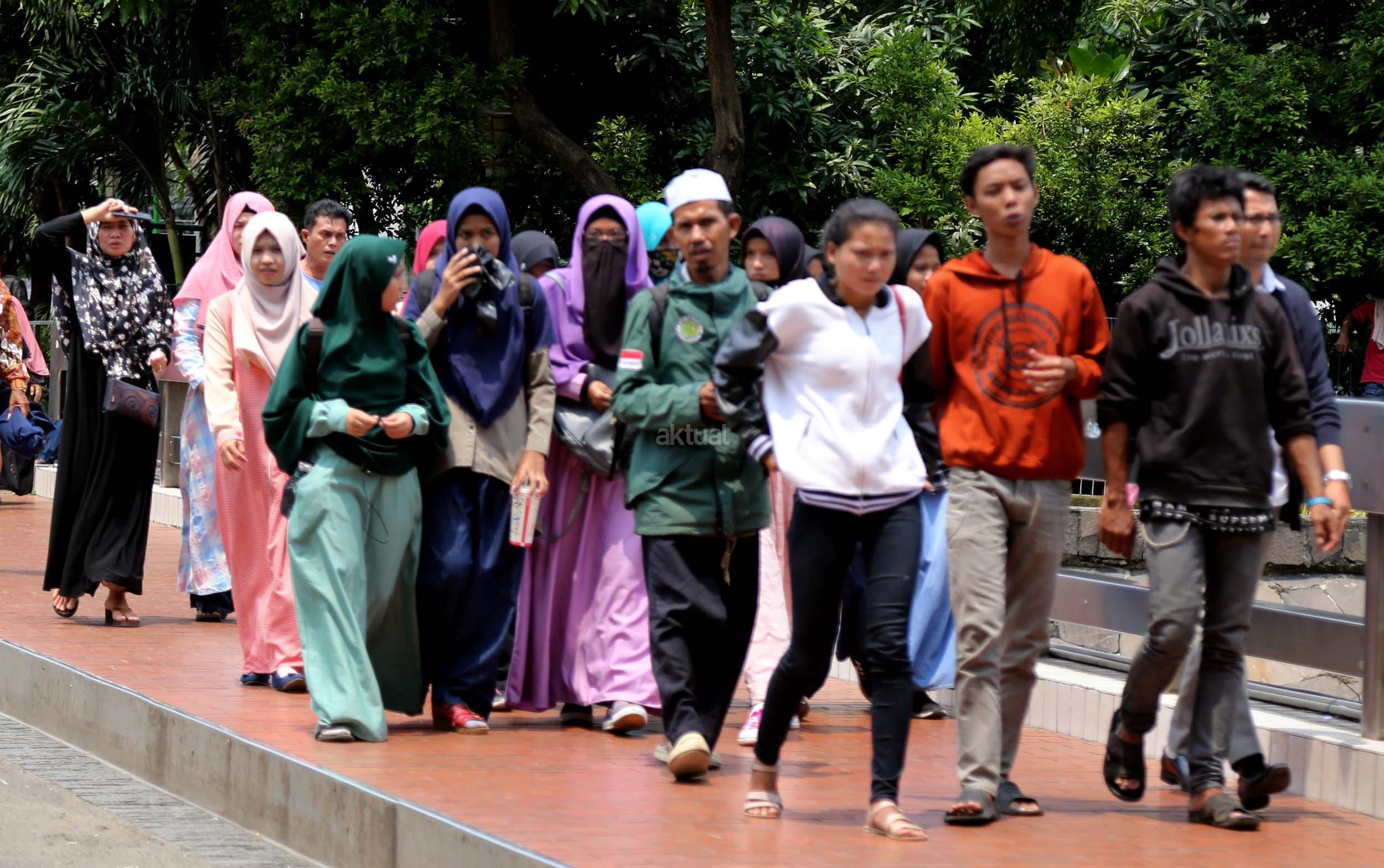 Terlihat masyarakat berdatangan ke Masjid Istiqlal, Jakarta, Kamis (2/3/2017). Kehadiran mereka ingin melihat secara langsung dari dekat Raja Salman, meski Sang Raja dan Presiden dijadwalkan tiba di Masjid Istiqlal sekitar pukul 13.45 menit.