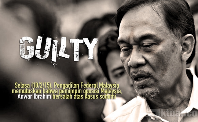 Jakarta, Aktual.co —Pengadilan Federal Malaysia memutuskan bahwa pemimpin oposisi Malaysia, Anwar Ibrahim bersalah dalam kasus sodomi pada Selasa (10/2). Pengadilan juga menolak banding yang diajukan oleh kuasa hukum Anwar dalam kasus sodomi yang mengklaim bahwa tuntutan kasus sodomi tersebut merupakan konspirasi politik untuk menyingkirkan Anwar dari percaturan politik Malaysia.