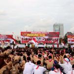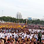 Ribuan peserta Apel Nusantara dari TNI/Polri/Pelajar dan elemen masyarakat menghadiri acara Apel Nasional Nusantara Bersatu di Silang Monas, Jakarta, Rabu (30/11/2016). Apel Nasional Nusantara Bersatu bertujuan untuk memperkokoh rasa persatuan dan kesatuan bangsa yang diikuti oleh pelajar dari tingkat SMP sampai universitas, tokoh lintas agama, budayawan, pejabat publik, musisi, artis, dan lain sebagainya. AKTUAL/Munzir