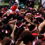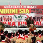 Apel Nasional Nusantara Bersatu bertujuan untuk memperkokoh rasa persatuan dan kesatuan bangsa yang diikuti oleh pelajar dari tingkat SMP sampai universitas, tokoh lintas agama, budayawan, pejabat publik, musisi, artis, dan lain sebagainya. AKTUAL/Munzir