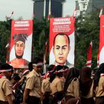 Plt Gubernur DKI. Soni Sumarsono saat memberikan orasi kebangsaan dalam acara Apel Nasional Nusantara Bersatu di Silang Monas, Jakarta, Rabu (30/11/2016). Apel Nasional Nusantara Bersatu bertujuan untuk memperkokoh rasa persatuan dan kesatuan bangsa yang diikuti oleh pelajar dari tingkat SMP sampai universitas, tokoh lintas agama, budayawan, pejabat publik, musisi, artis, dan lain sebagainya. AKTUAL/Munzir