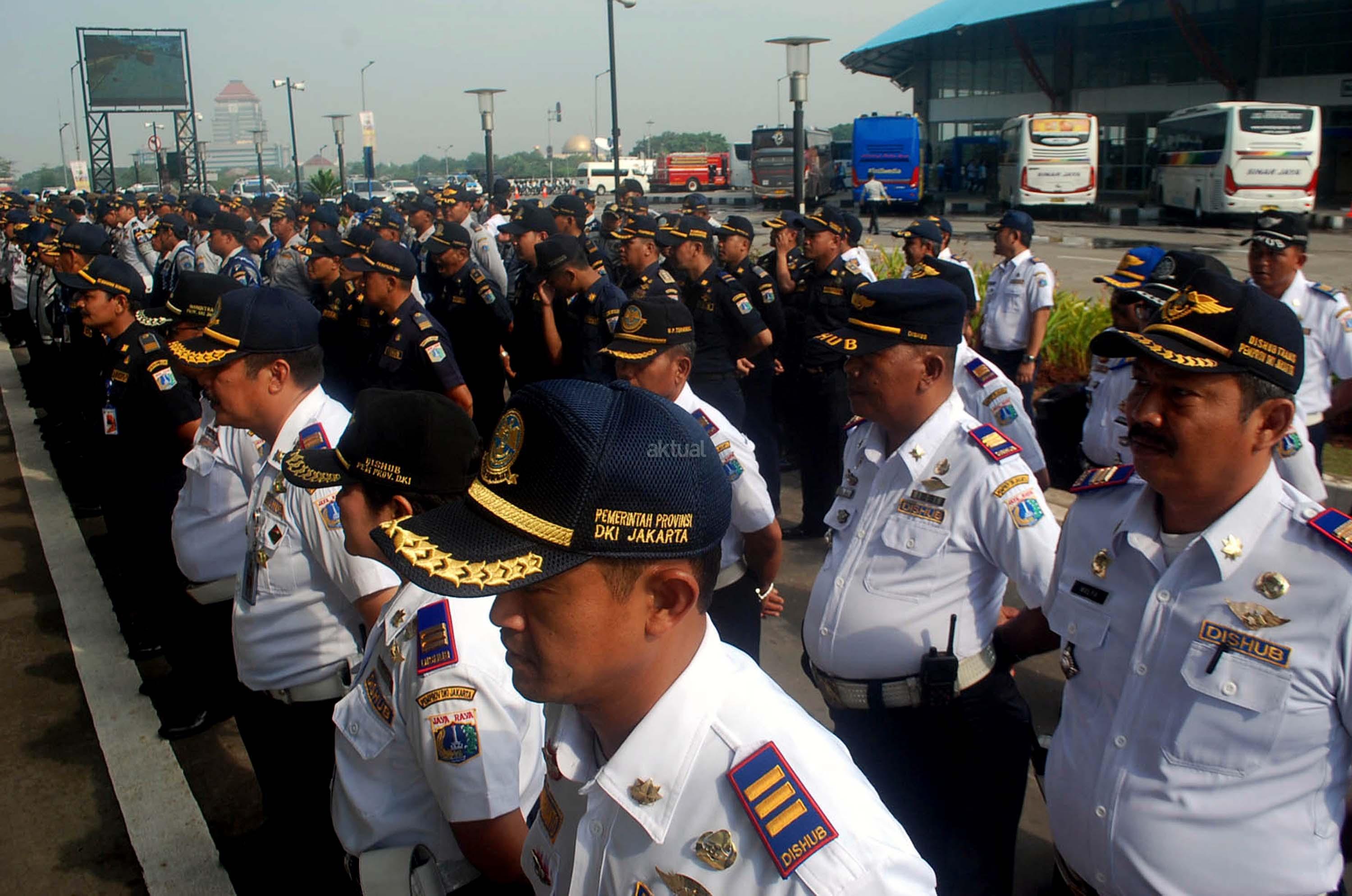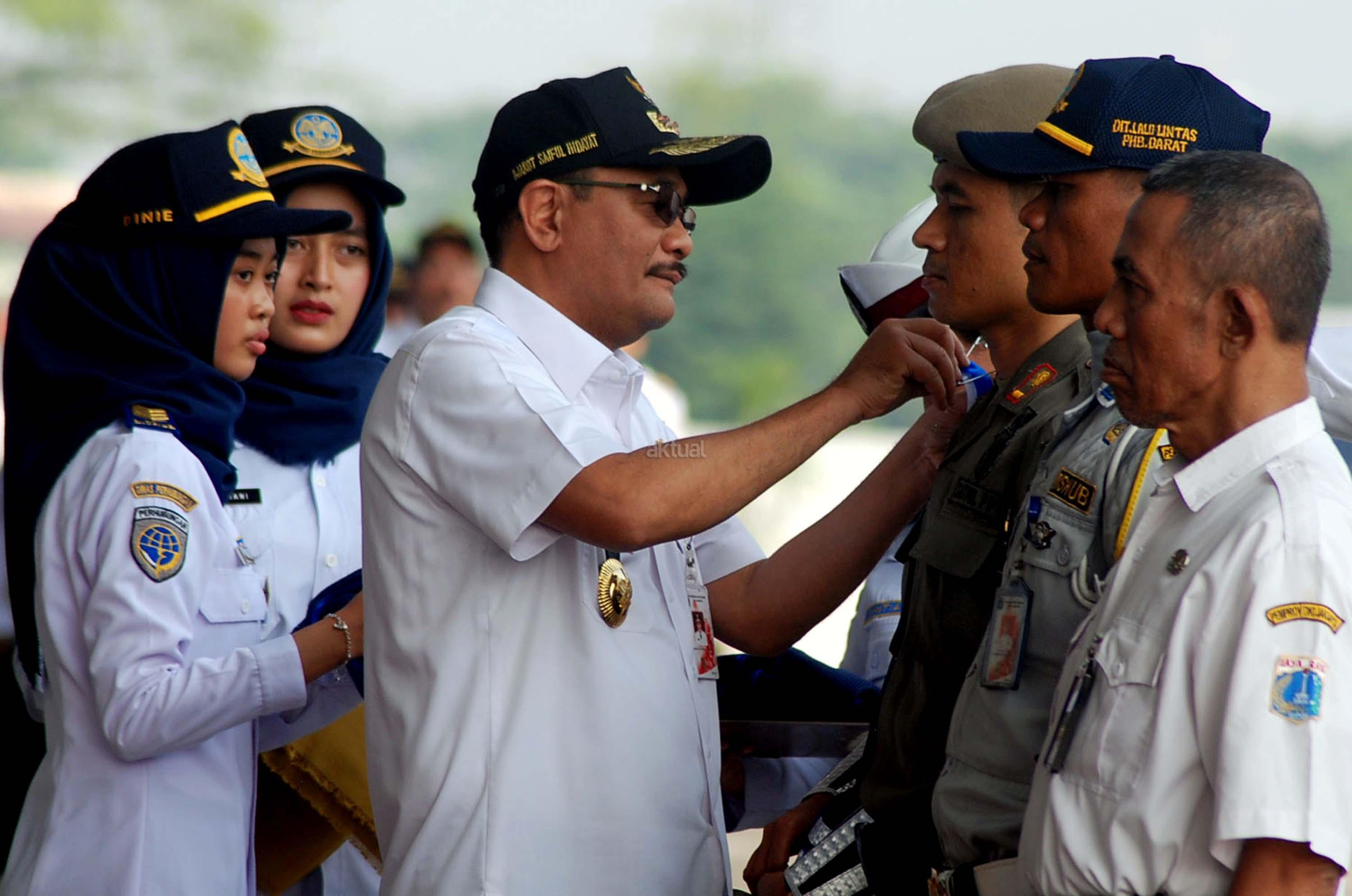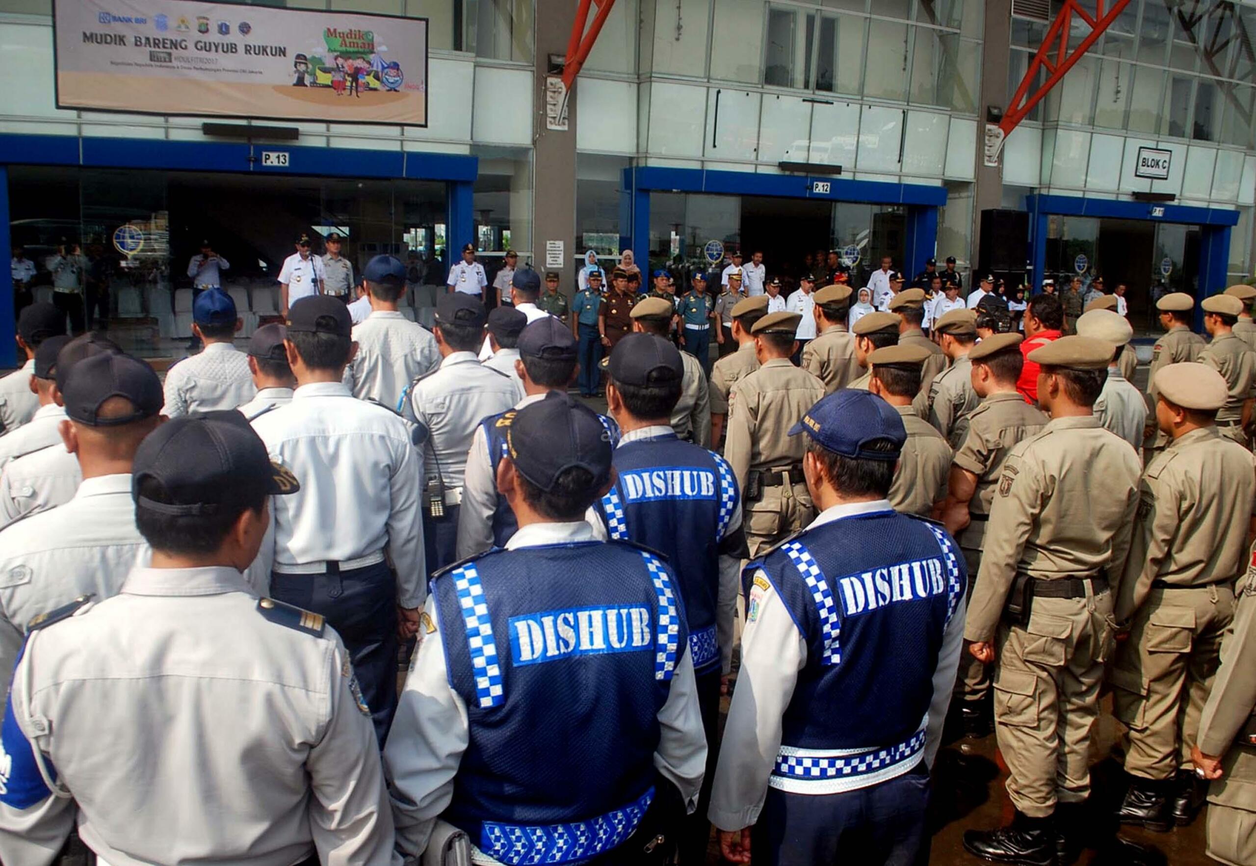 Plt GUbernur DKI Jakarta, Djarot Saiful Hidayat saat menghadiri sekaligus meninjau Apel Siaga Pengendalian Mudik dan Arus Balik dalam rangka Idul Fitri 2017/ 1438 H di Terminal Terpadu Pulo Gebang, Jakarta Timur, Rabu (14/6/2017). Sebanyak 500 personil gabungan baik dari kepolisian, TNI/Polri, Dinas Perhubungan, Satpol PP, Damkar, Pramuka dan Dinas Kebersihan mengikuti Apel Arus Mudik 2017. AKTUAL/Munzir