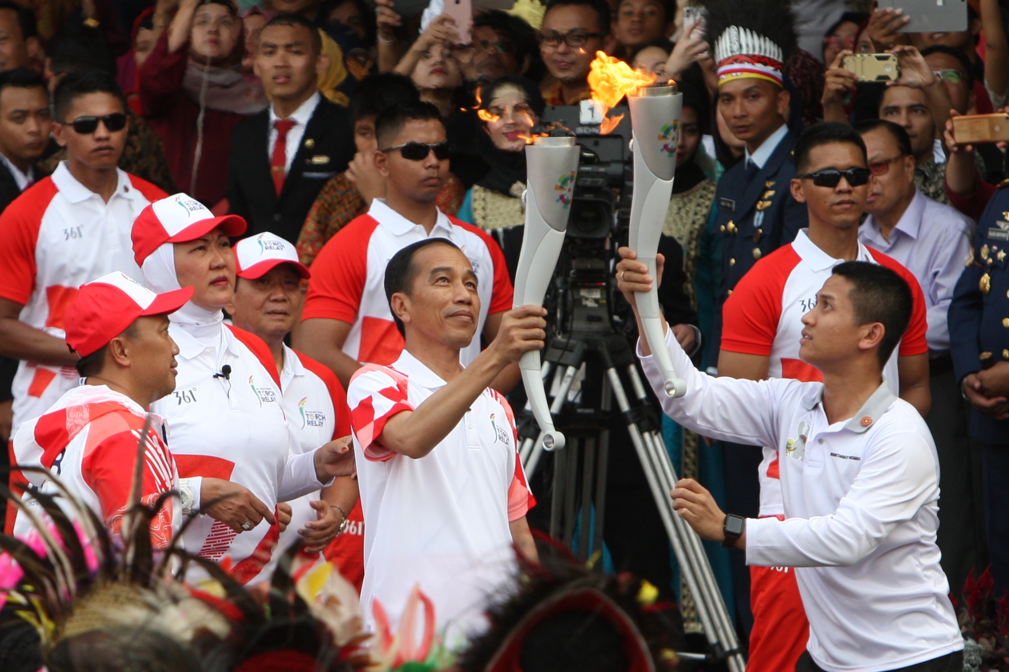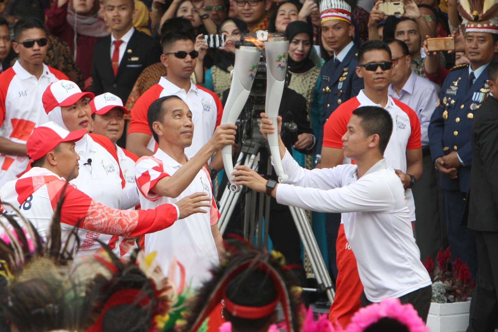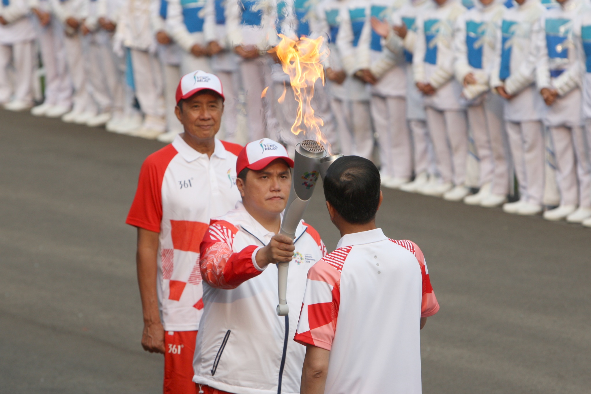 Api Obor Asian Games Sempat Mati Saat Dibawa Jokowi
