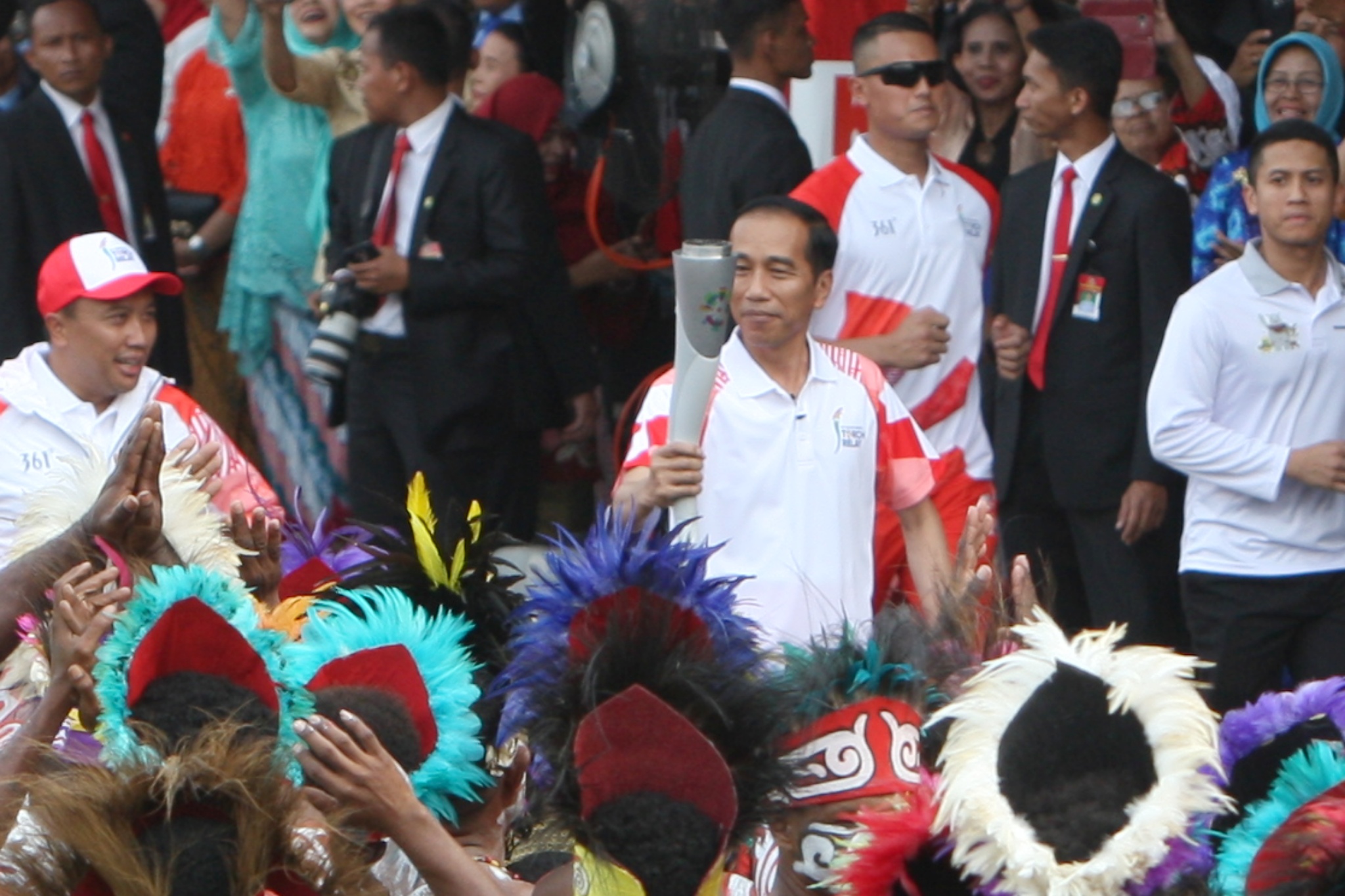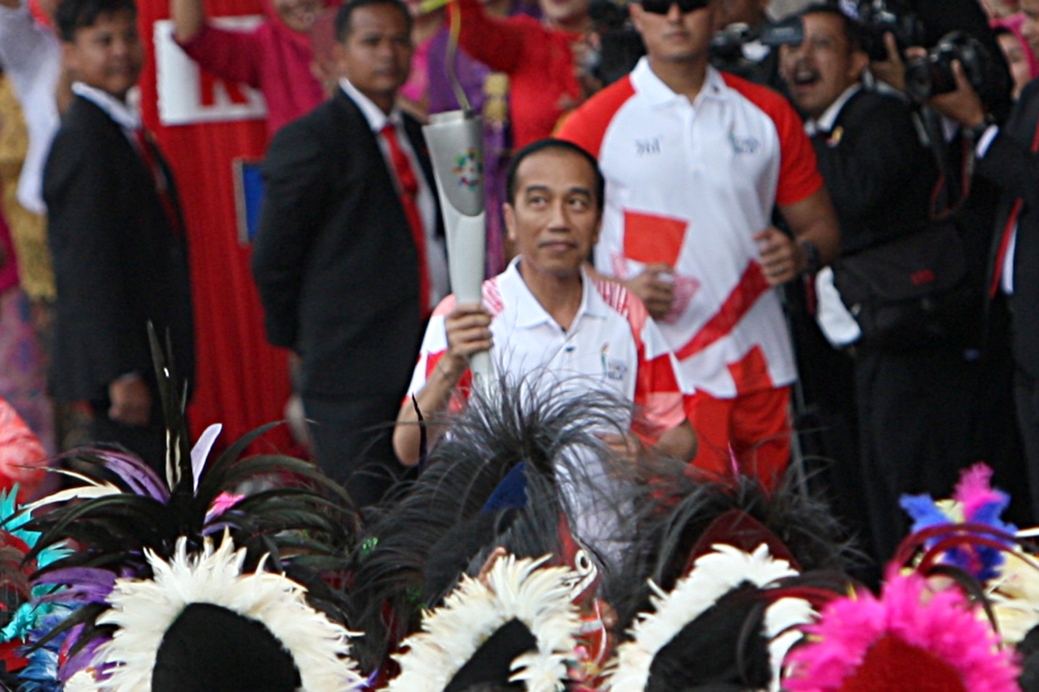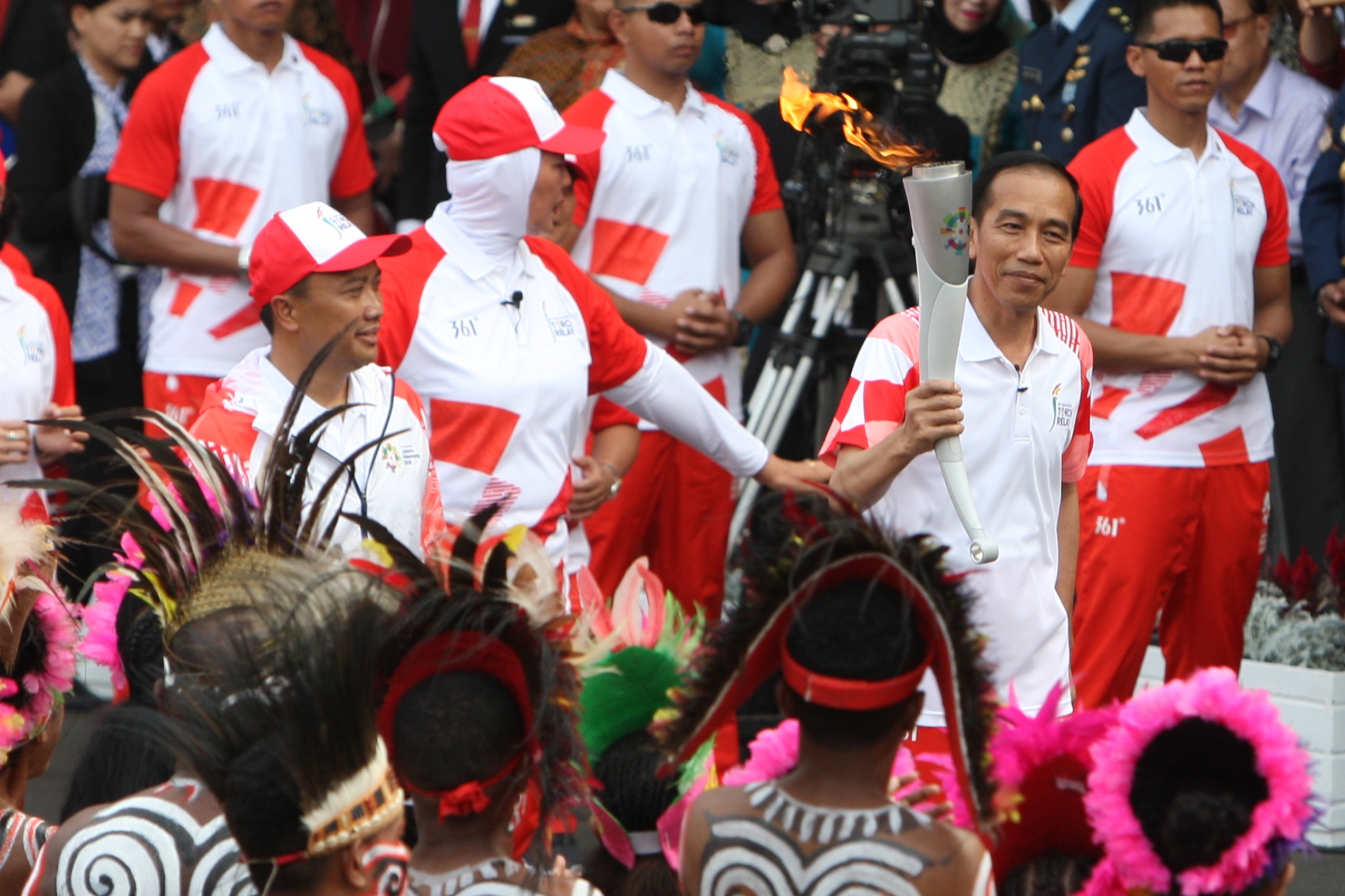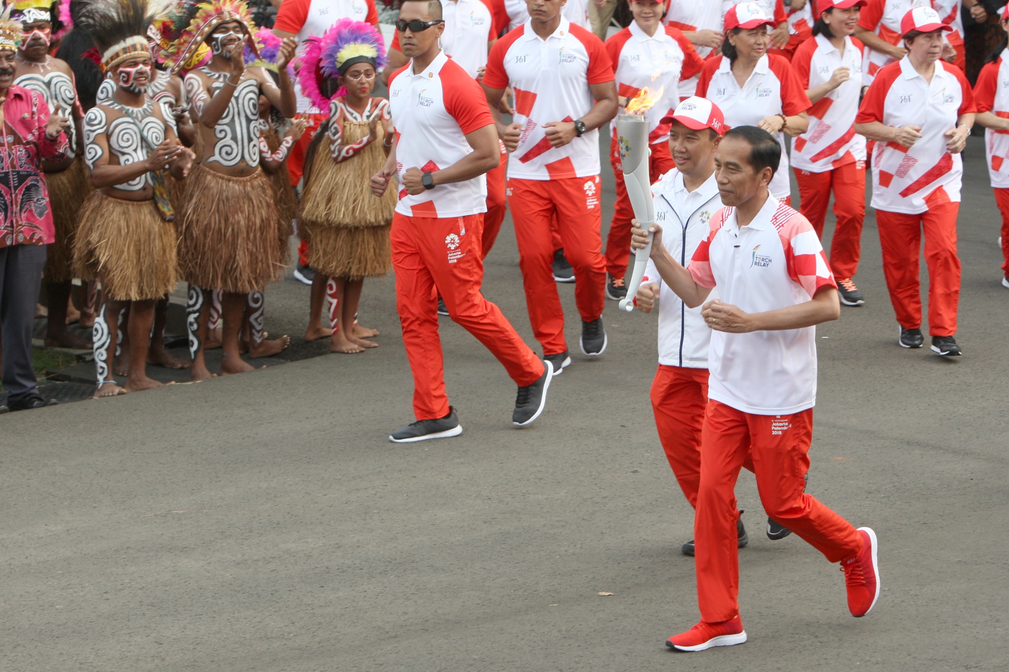 Api Obor Asian Games Sempat Mati Saat Dibawa Jokowi