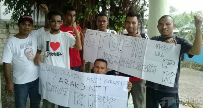 Kupang, Aktual.co — Aktivis anti korupsi di Nusa Tenggara Timur (NTT) yang tergabung dalam Aliansi Rakyat Antikorupsi Nusa Tenggara Timur (Arak NTT) menyerukan pencegahan terhadap upaya kriminalisasi terhadap KPK. Arak NTT yang dikoordinir Bedi Roma dan Mariones Langasa pembebasan juga meminta pembebasan Wakil Ketua Komisi Pemberantasan Korupsi (KPK), Bambang Widjojanto yang ditangkap dan ditahan oleh Mabes Polri, Jumat (24/1) kemarin.